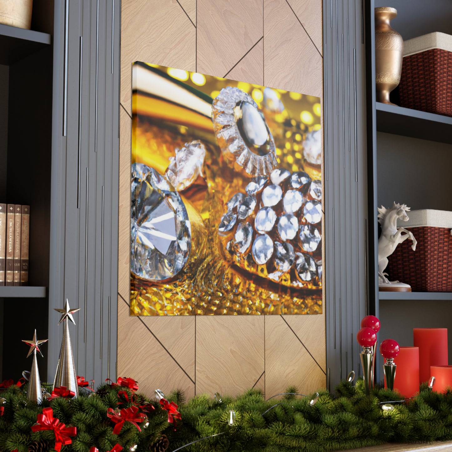 This canvas features shimmering Gold and Diamonds, sparkles of beauty and sophistication. Our luxurious canvas features a bold diamond pattern, adding a glamorous feature of grandeur in your living space. Crafted with both elegance and quality, the Gold and Diamonds canvas will make the ultimate style statement. #DiamondCanvas #GoldCanvas #Elegance #Luxury #Glamorous #HomeFashion #InteriorDesign #Decoration #StatementPiece #RefinedStyle #Sparkles