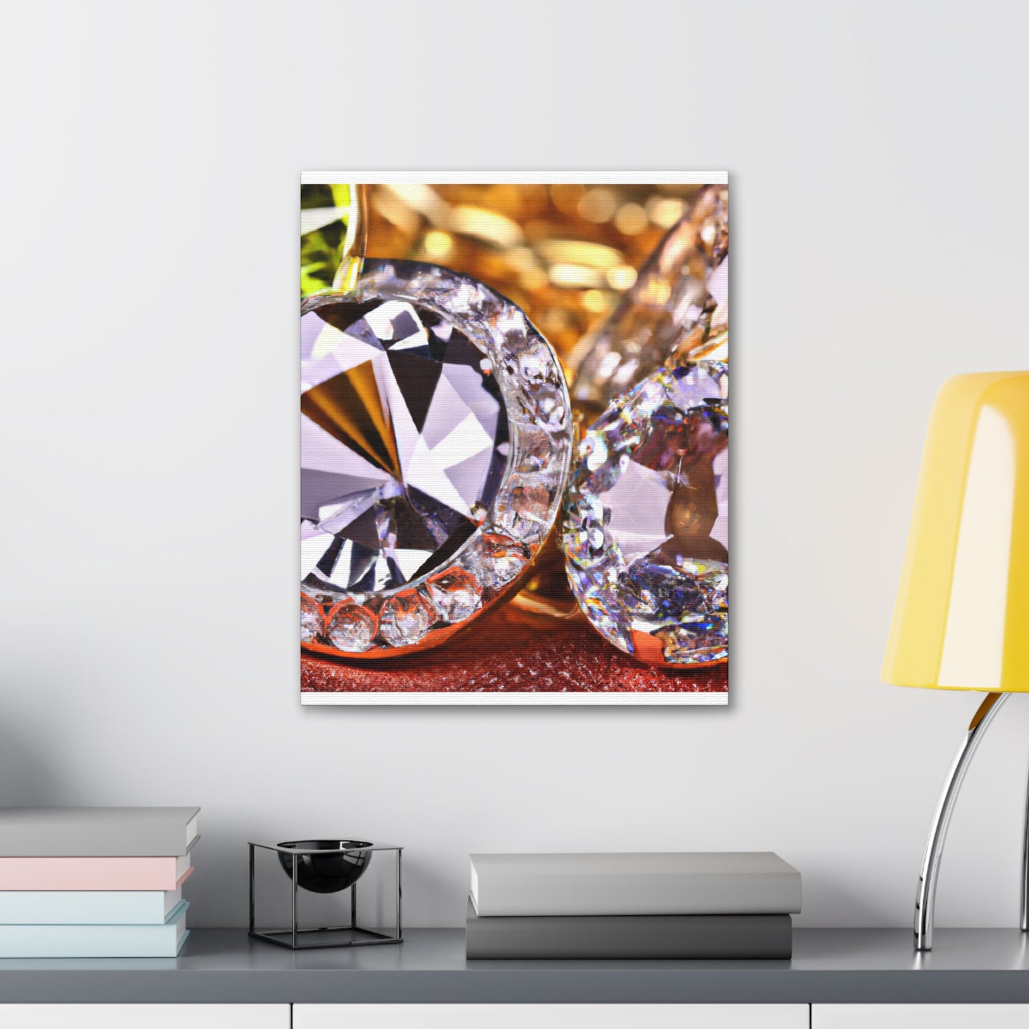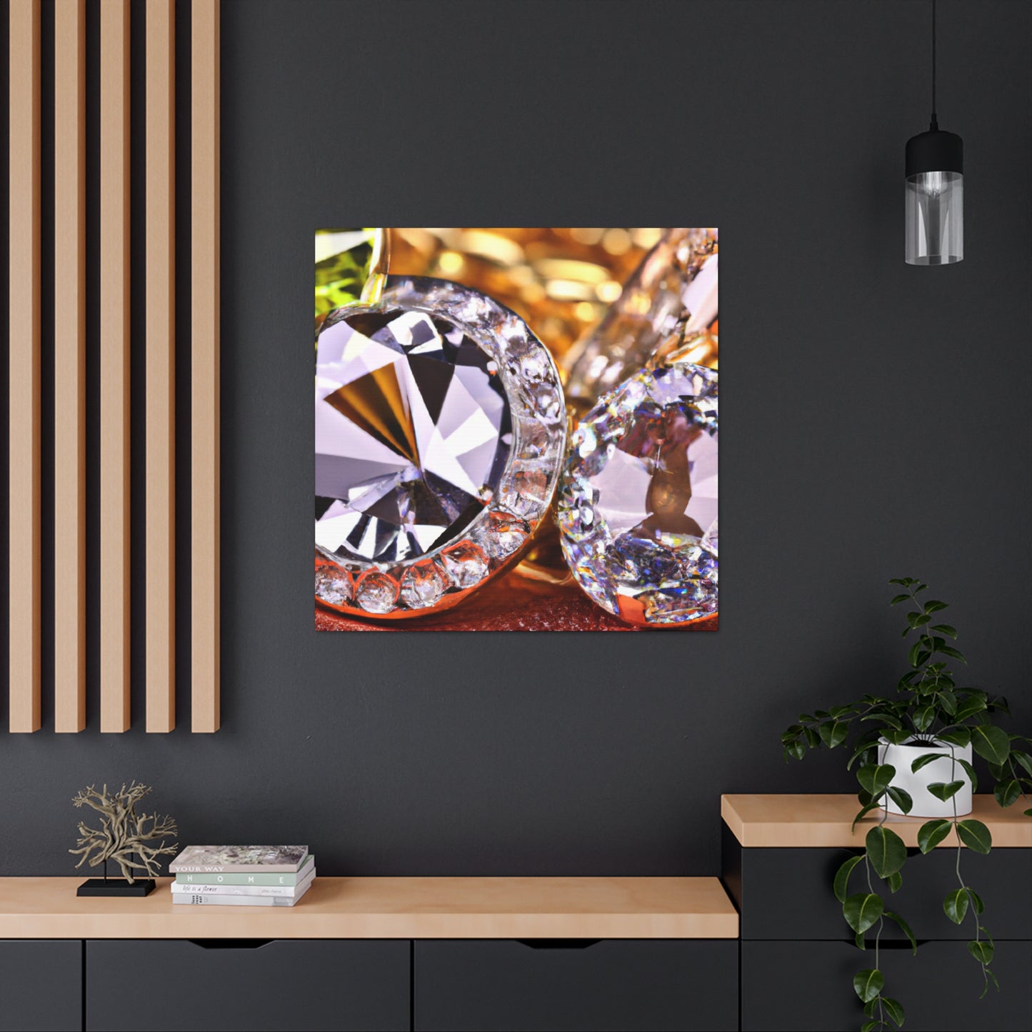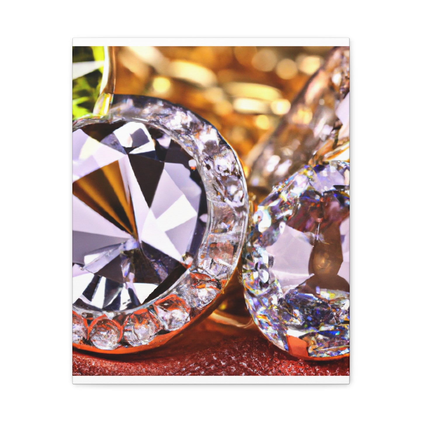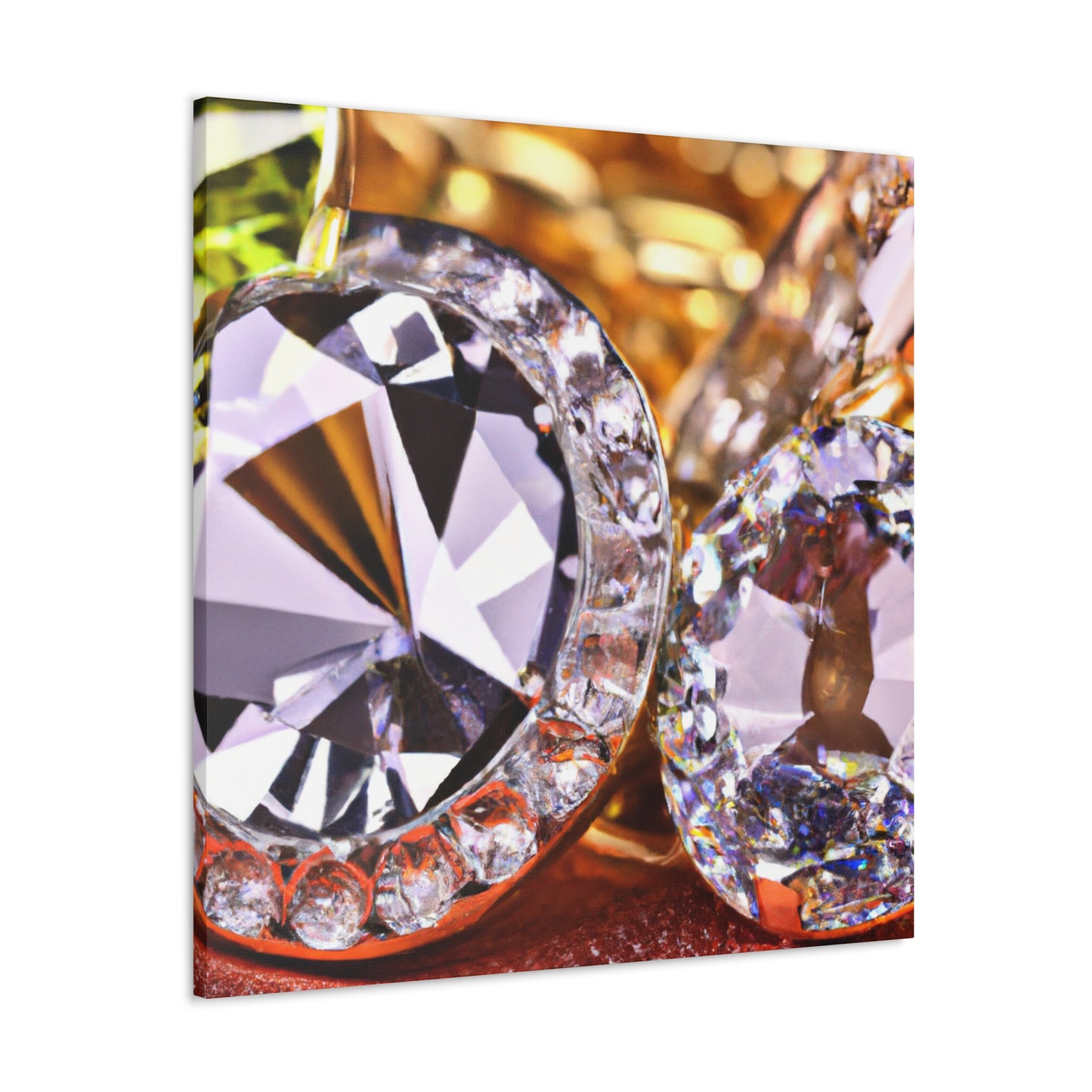 This artfully-crafted canvas is composed of gold and diamonds sure to turn heads and impress all who view it. The intricate details of each diamond sparkle with a radiant luster, while the gold radiates a comforting glow of luxury and elegance. Display this canvas in your living space, or give it to a special someone. #canvas #gold #diamonds #luxury #elegance #radiant #glow #intricate #unique #sparkle #gift