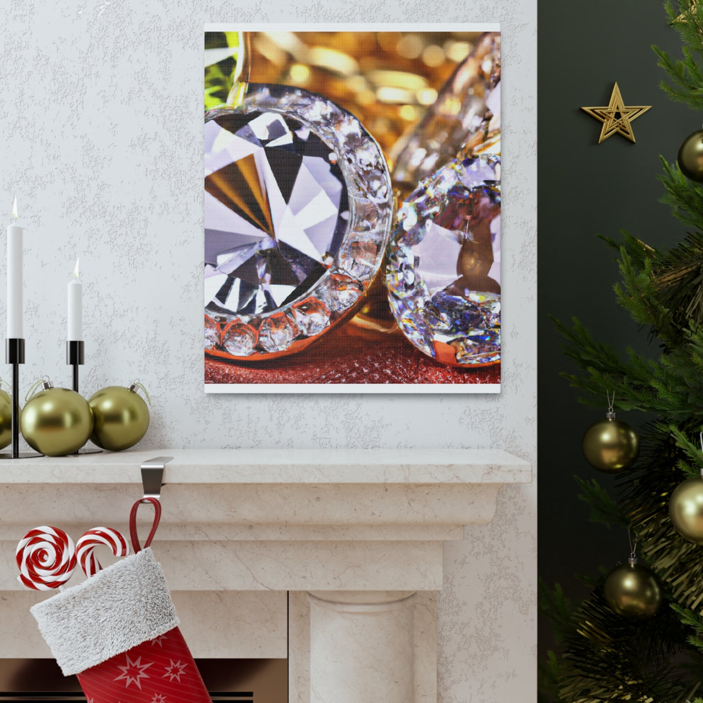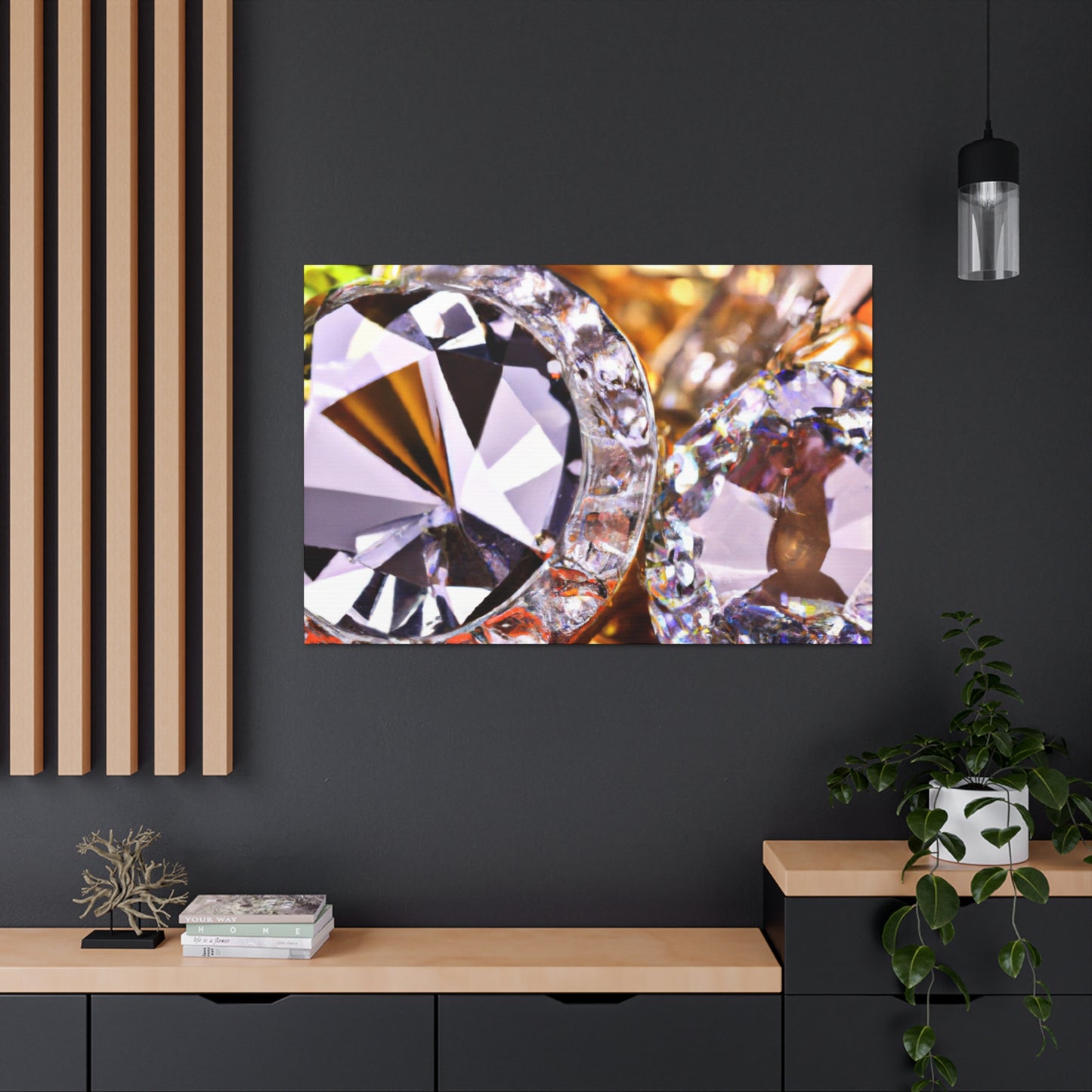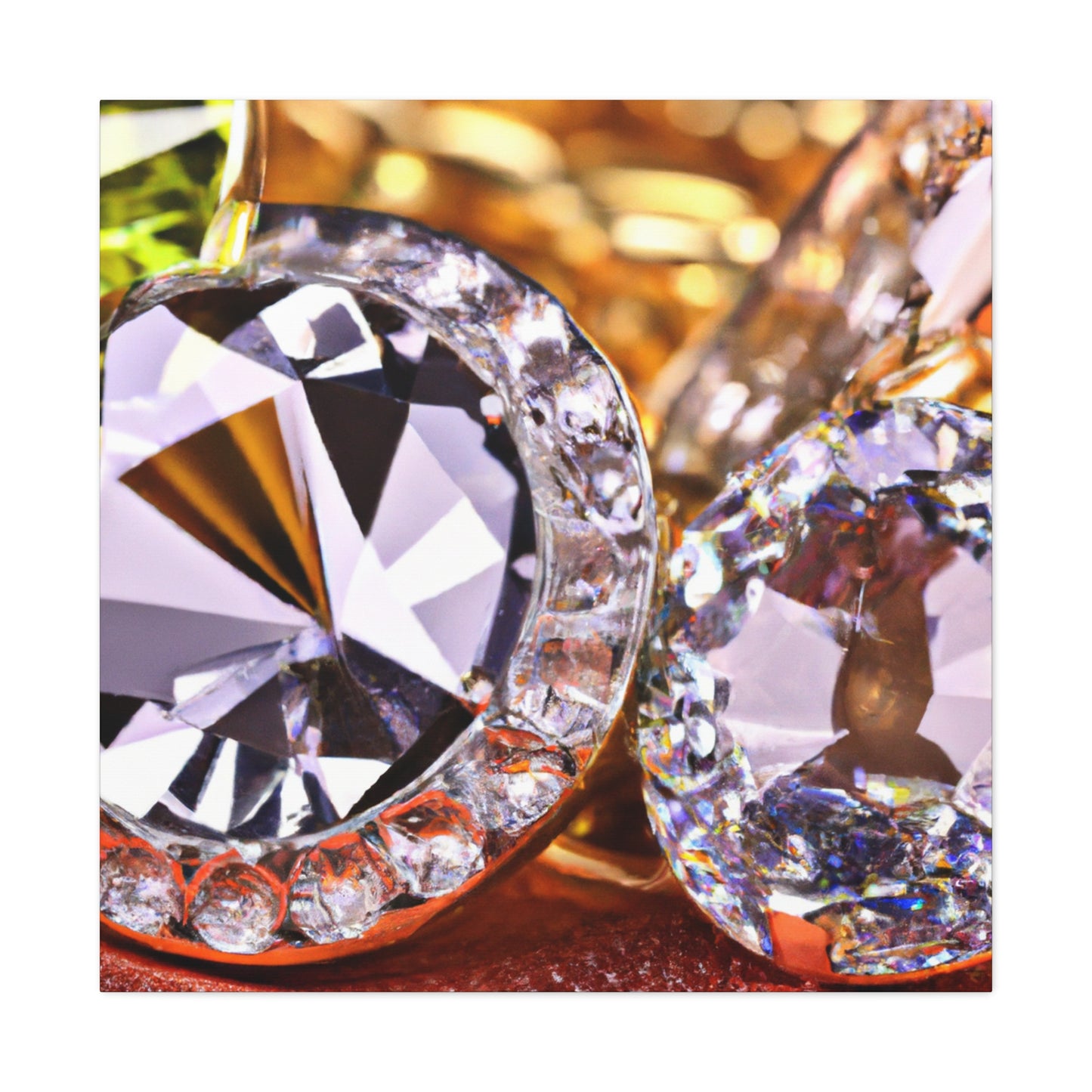 This artfully-crafted canvas is composed of gold and diamonds sure to turn heads and impress all who view it. The intricate details of each diamond sparkle with a radiant luster, while the gold radiates a comforting glow of luxury and elegance. Display this canvas in your living space, or give it to a special someone. #canvas #gold #diamonds #luxury #elegance #radiant #glow #intricate #unique #sparkle #gift