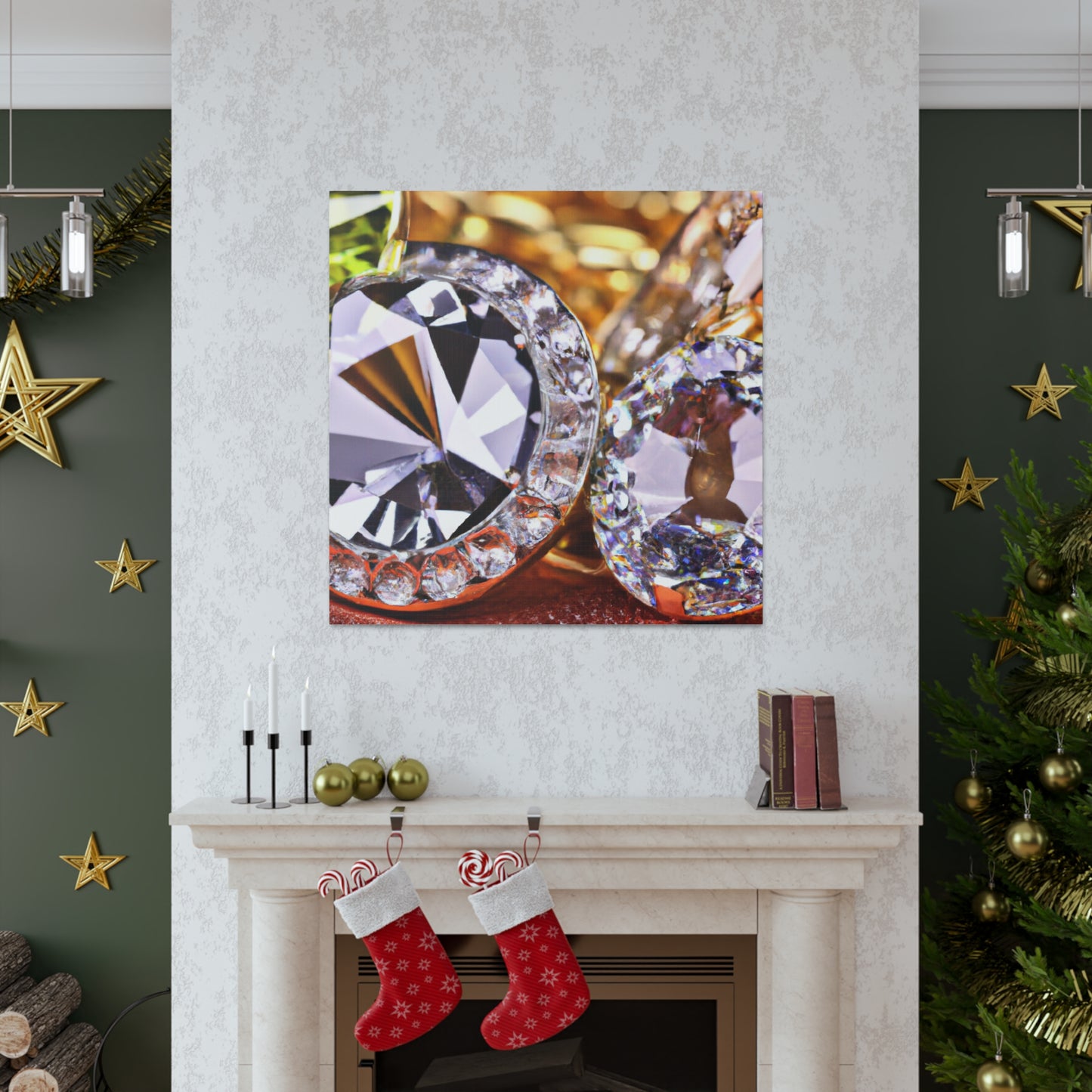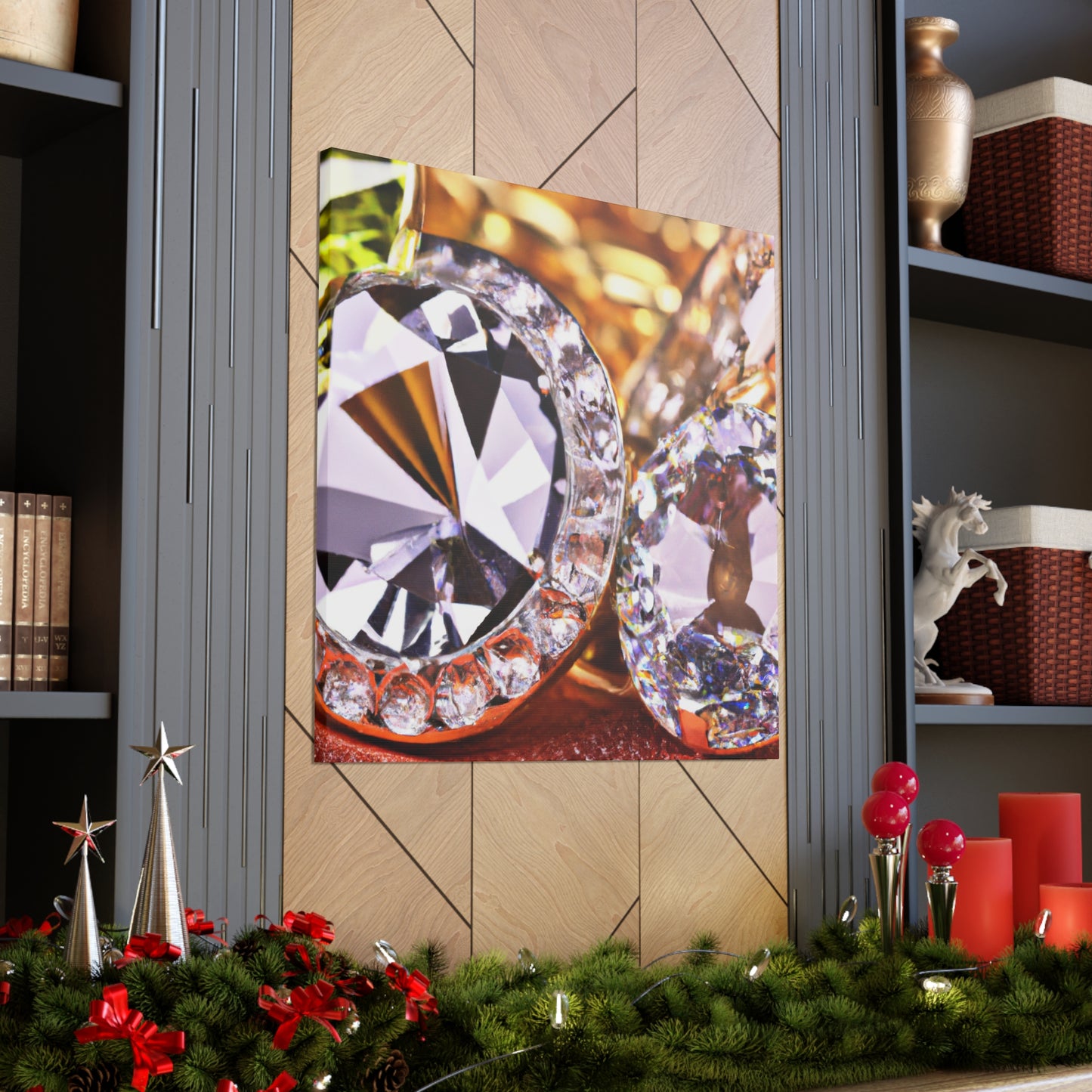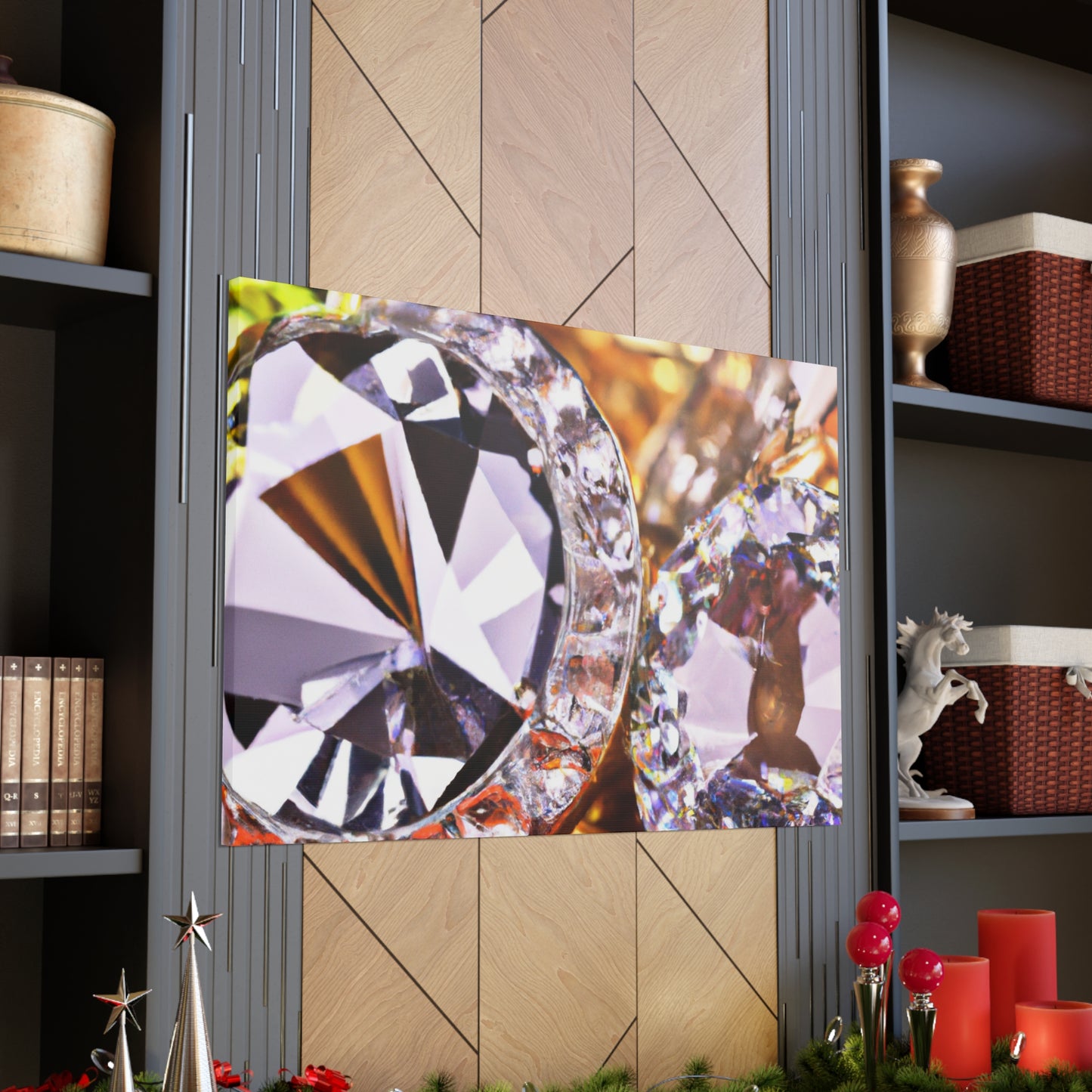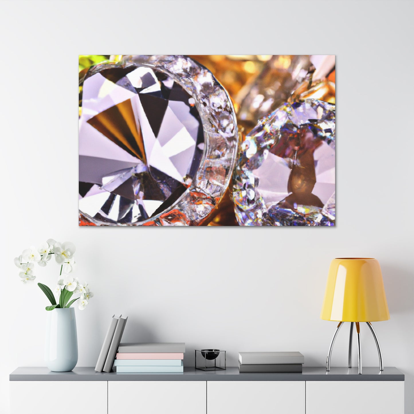 This artfully-crafted canvas is composed of gold and diamonds sure to turn heads and impress all who view it. The intricate details of each diamond sparkle with a radiant luster, while the gold radiates a comforting glow of luxury and elegance. Display this canvas in your living space, or give it to a special someone. #canvas #gold #diamonds #luxury #elegance #radiant #glow #intricate #unique #sparkle #gift