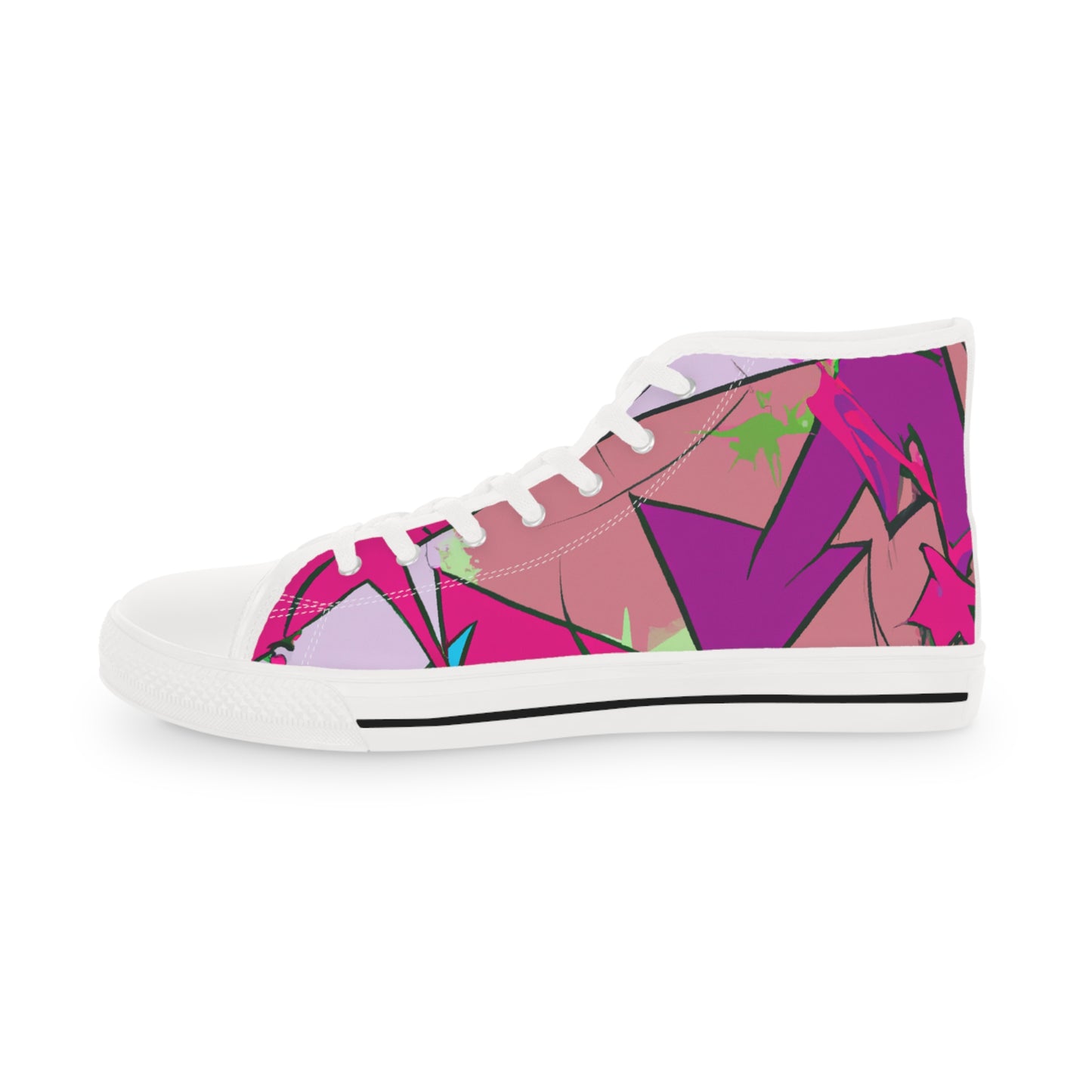 These Graffiti Art High Tops are eye-catching and ready to be seen! Featuring sleek lines and bold colors, these shoes are the perfect pop of style for any outfit. With detailed stitching and unique construction, these shoes make it easy to stand out. The textured, padded, and breathable interior provides lasting support and comfort so you can move with ease. Put the finishing touches on your look with these special shoes! #graffitiart #hightops #sneakerstyle #detailedstitching #standoutlook #boldsoles #paddedcomfort #uniqueconstruction #streetshoes #statementlook #boldcolors