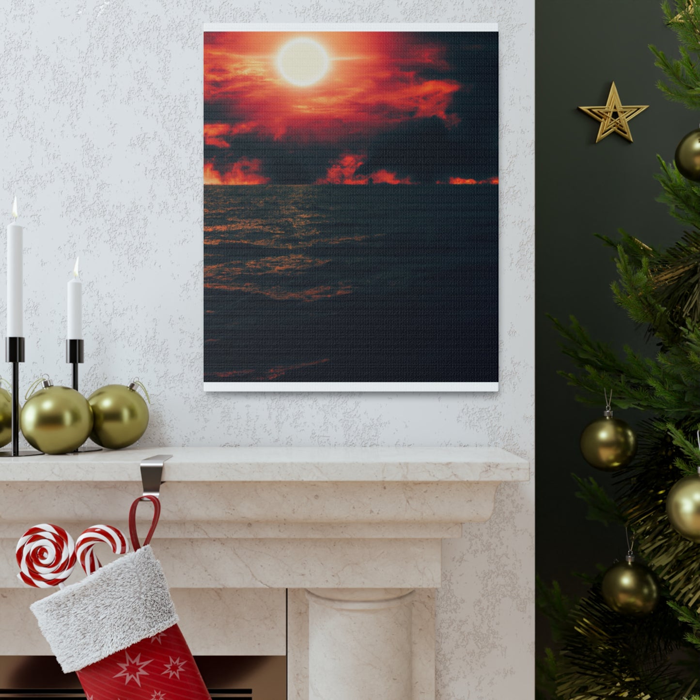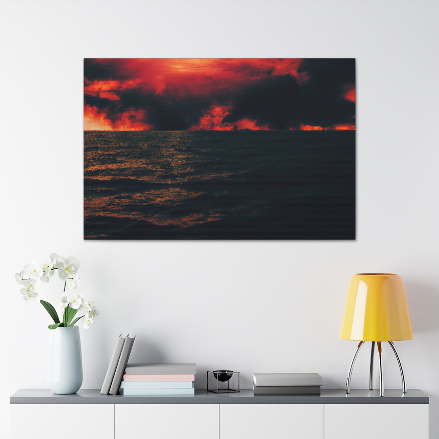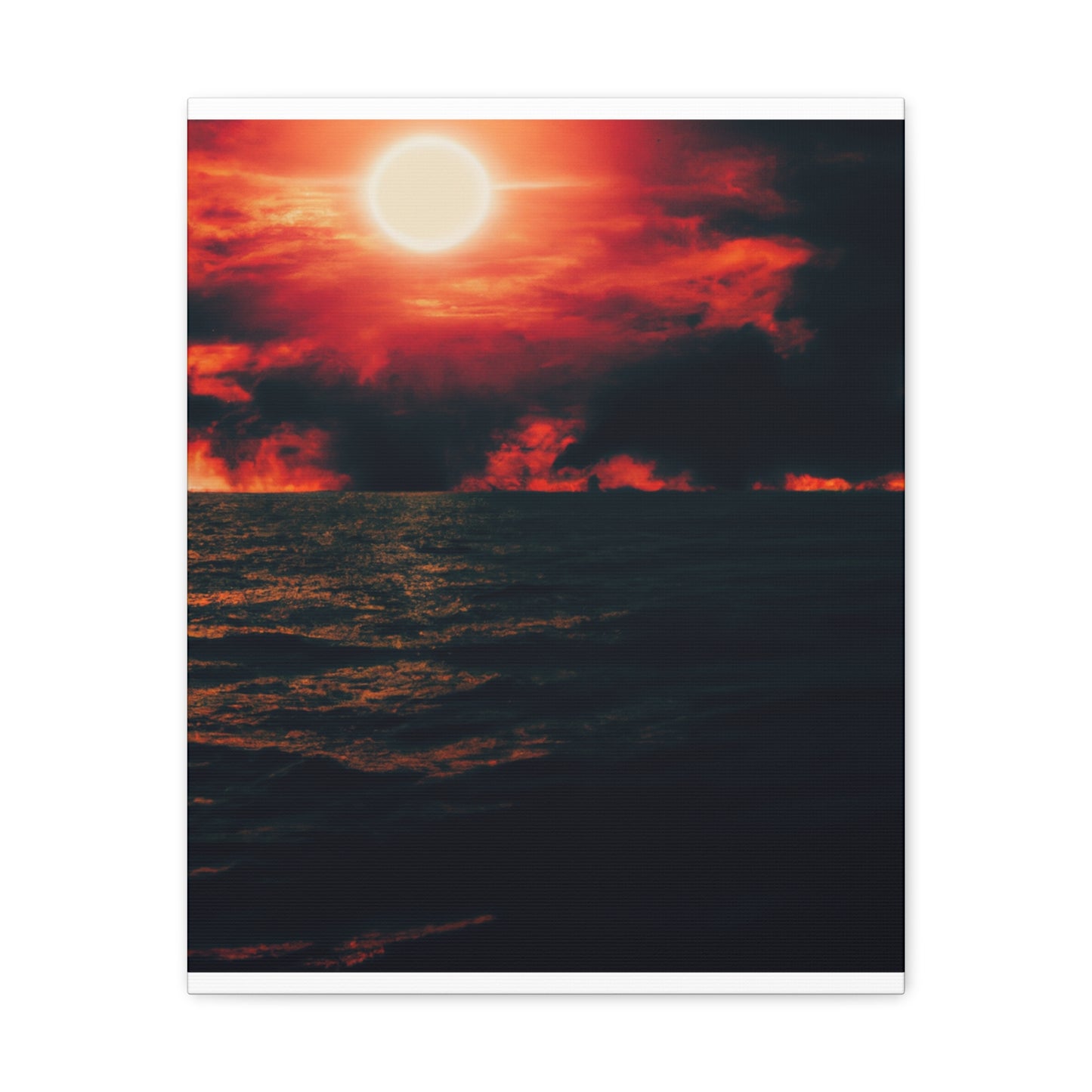 This original digital art canvas depicts a vivid, entrancing scene of Heaven and Hell. From a beautiful sky streaked with gold and the glimmering waters of Heaven, to a fiery, molten hellscape below, it is a stunning work sure to captivate attention. The perfect addition to any modern home! #HeavenAndHell #DigitalArt #Canvas #Heaven #Hell #Artwork #Molten #Beautiful #Glittering #Sky #Glimmering #Stunning