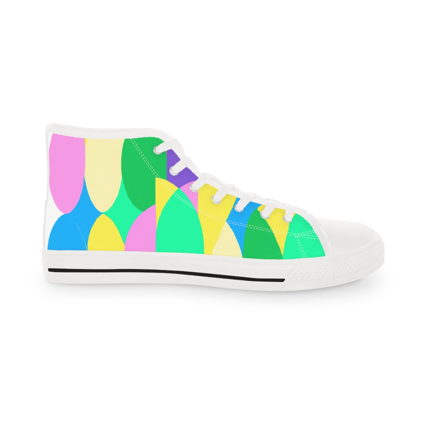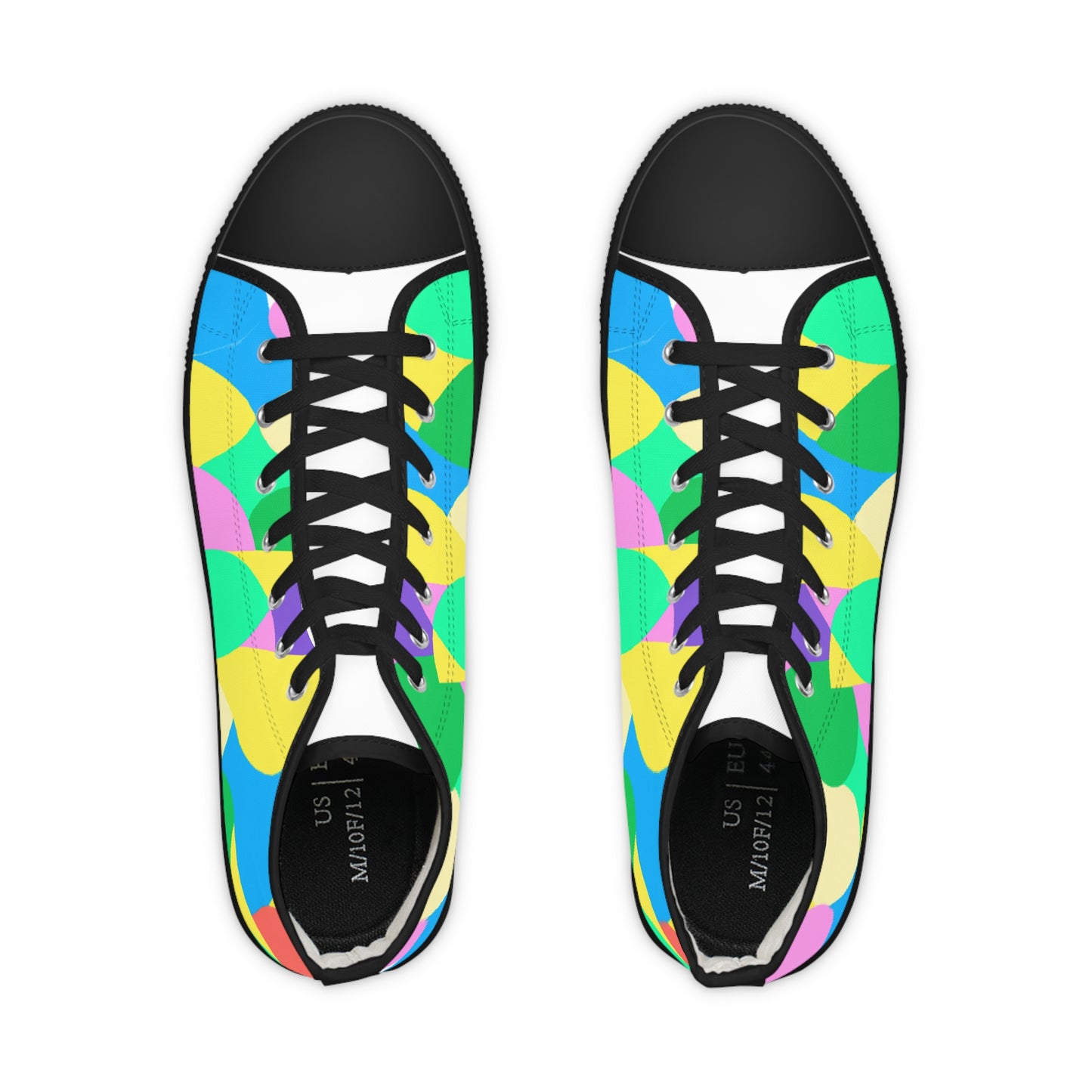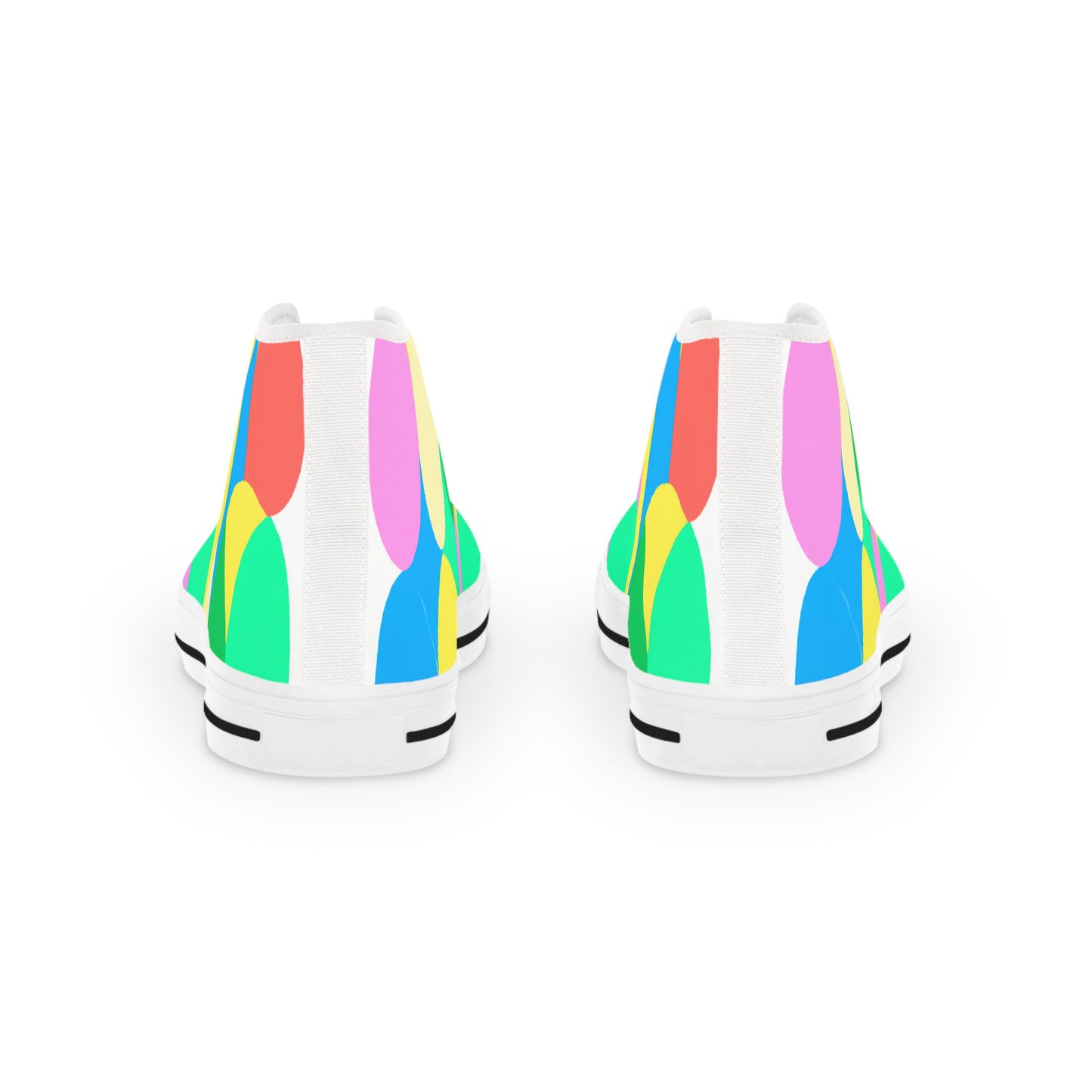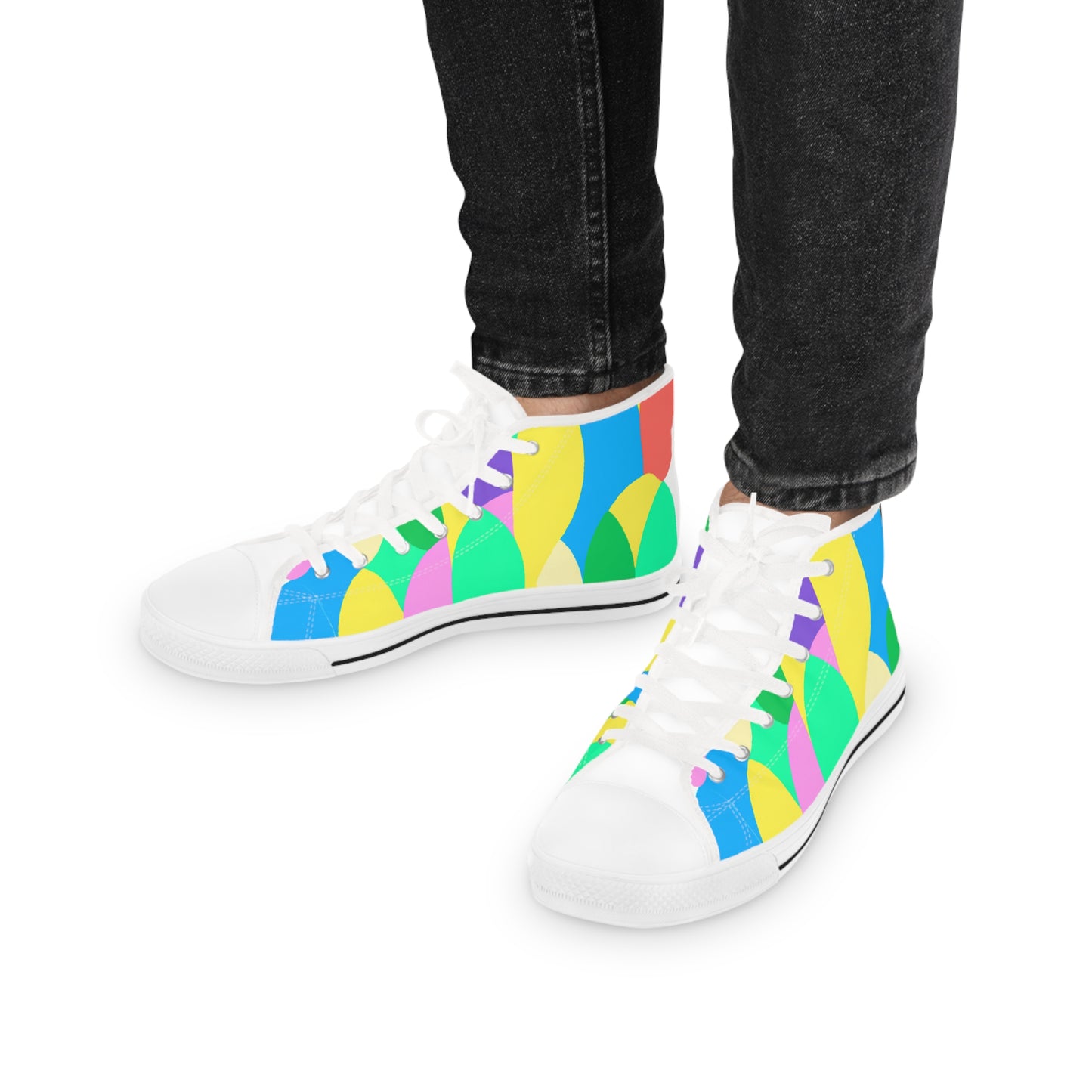 Be bold and adventurous with these geometric art high top shoes! With a unique and vibrant style, you won't find another pair like this. A mix of bright colors and bold designs create a shoe like no other. Get ready to stand out from the crowd and have a pair of shoes you will love wearing. #shoes #high top #geometric art #vibrant colors #unique #stand out #adventures #runway ready #styleitup #sneakerstylist #shoelovers