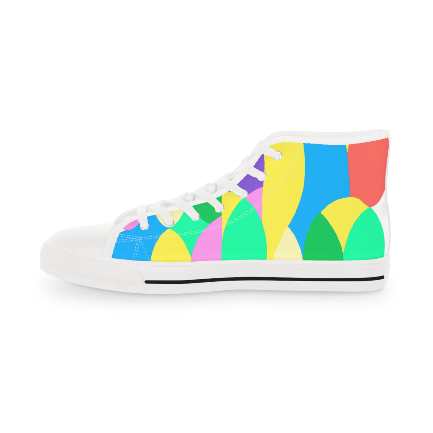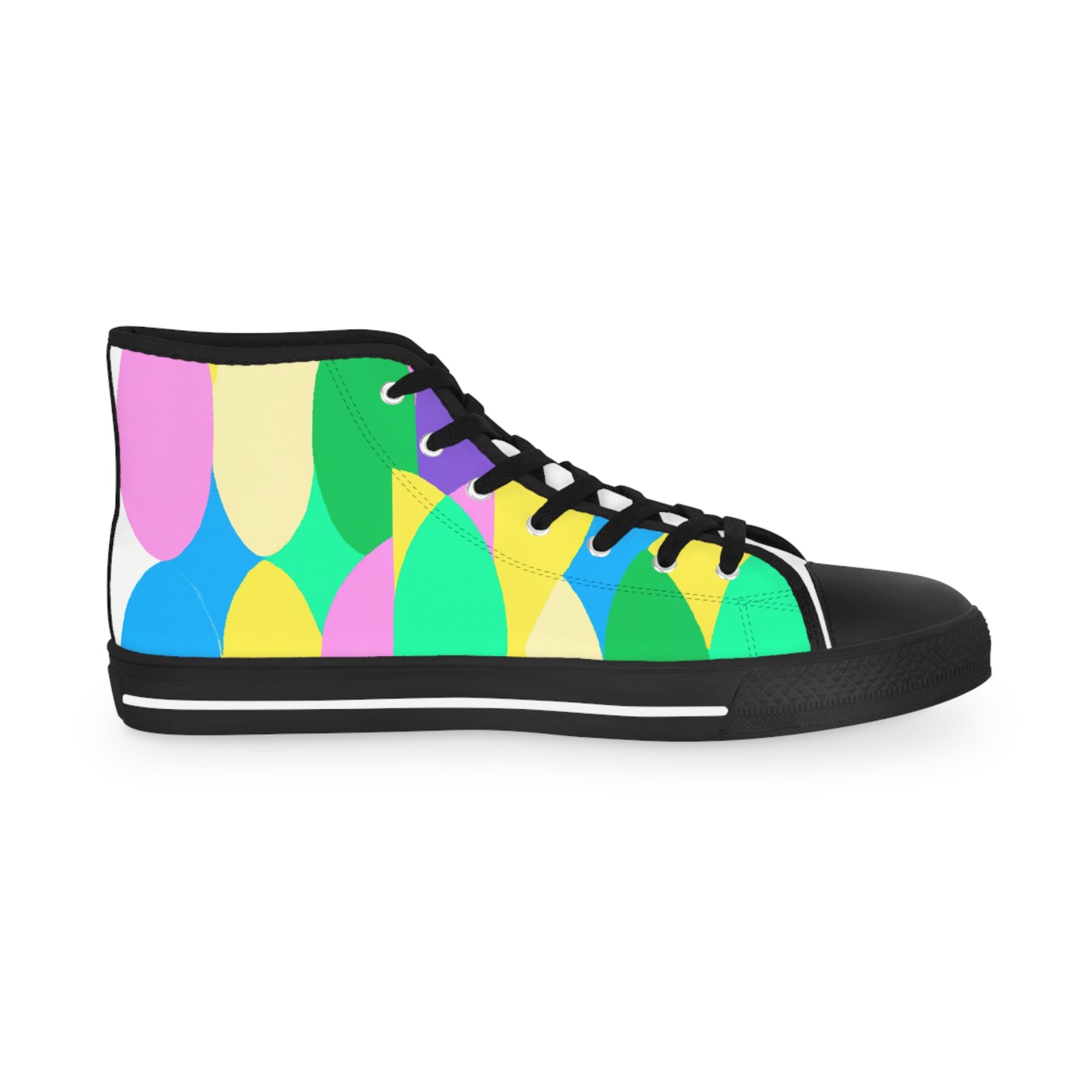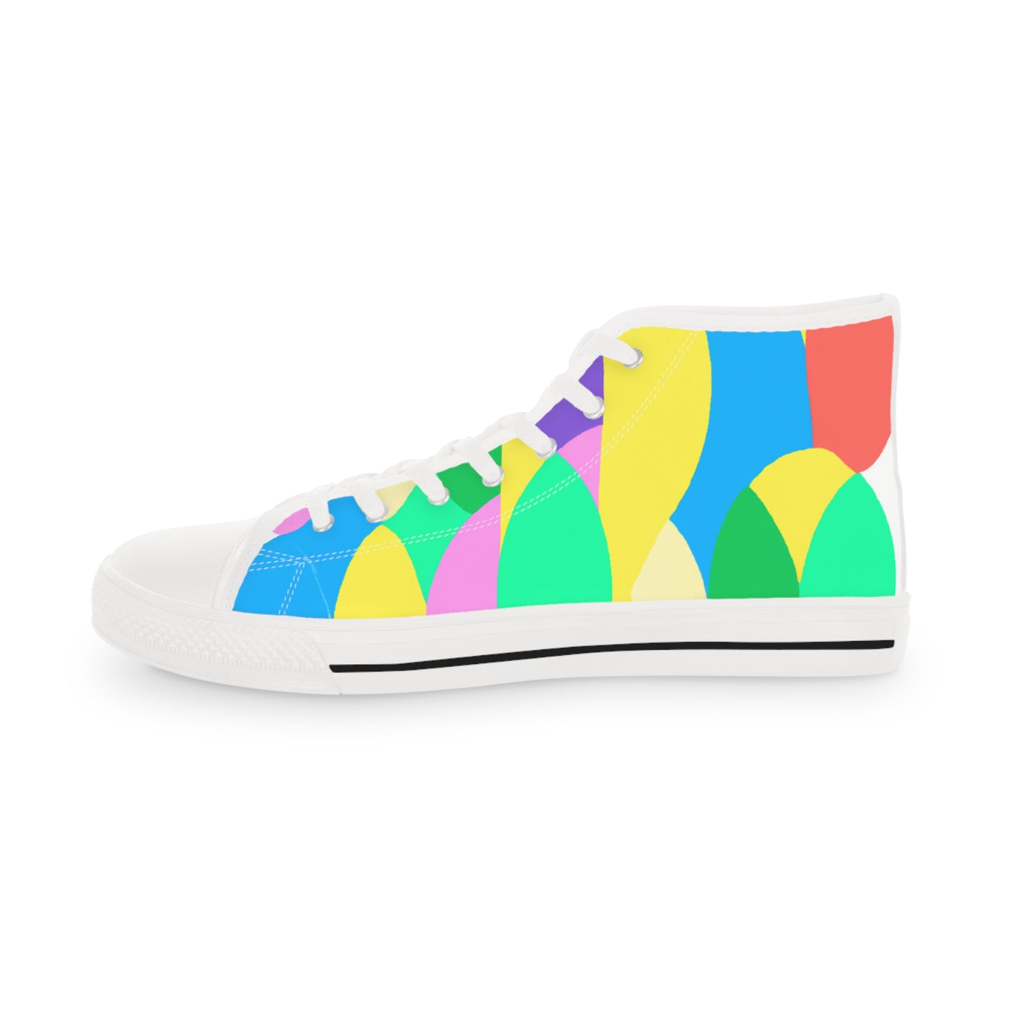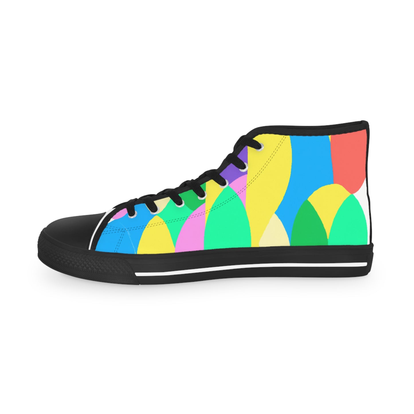 Be bold and adventurous with these geometric art high top shoes! With a unique and vibrant style, you won't find another pair like this. A mix of bright colors and bold designs create a shoe like no other. Get ready to stand out from the crowd and have a pair of shoes you will love wearing. #shoes #high top #geometric art #vibrant colors #unique #stand out #adventures #runway ready #styleitup #sneakerstylist #shoelovers