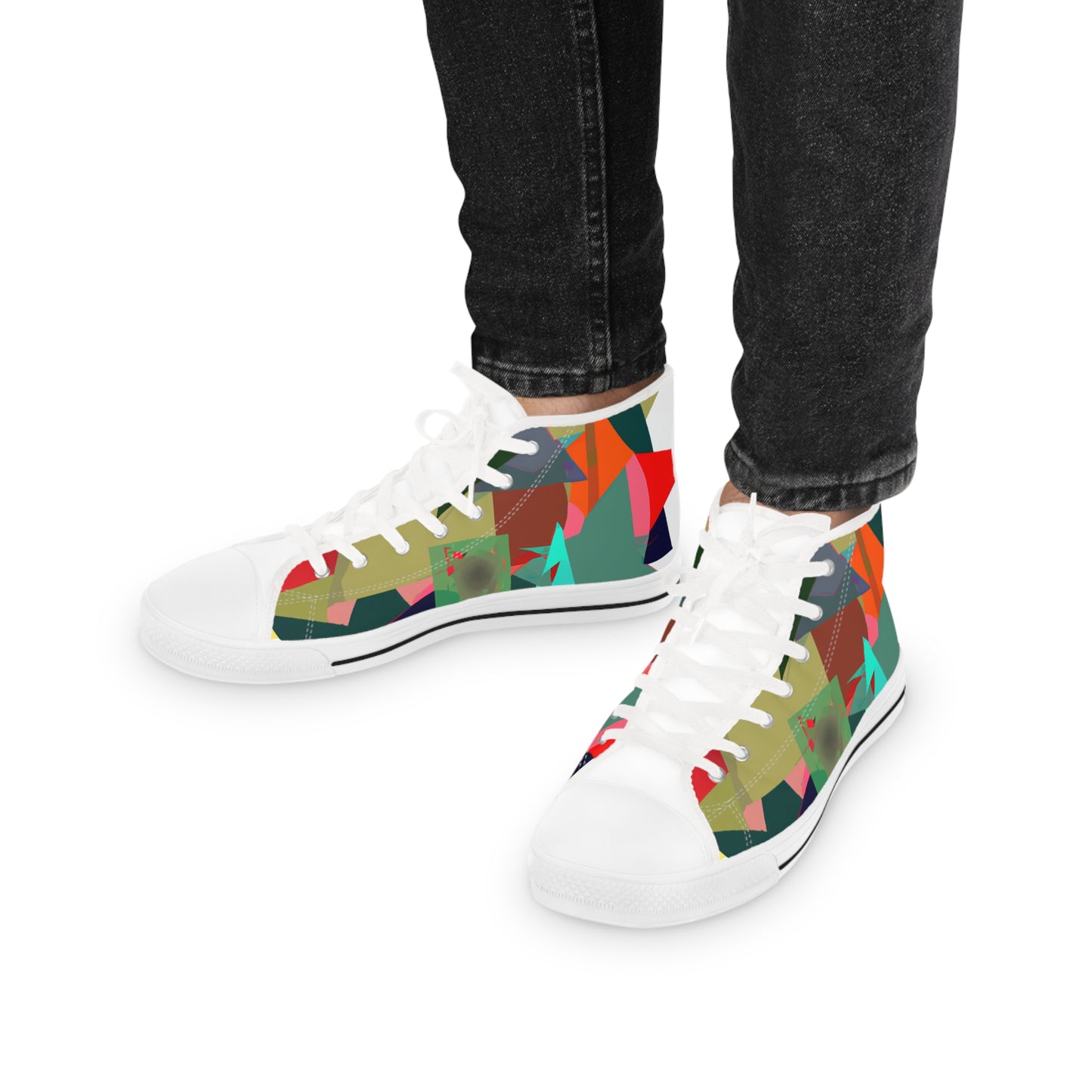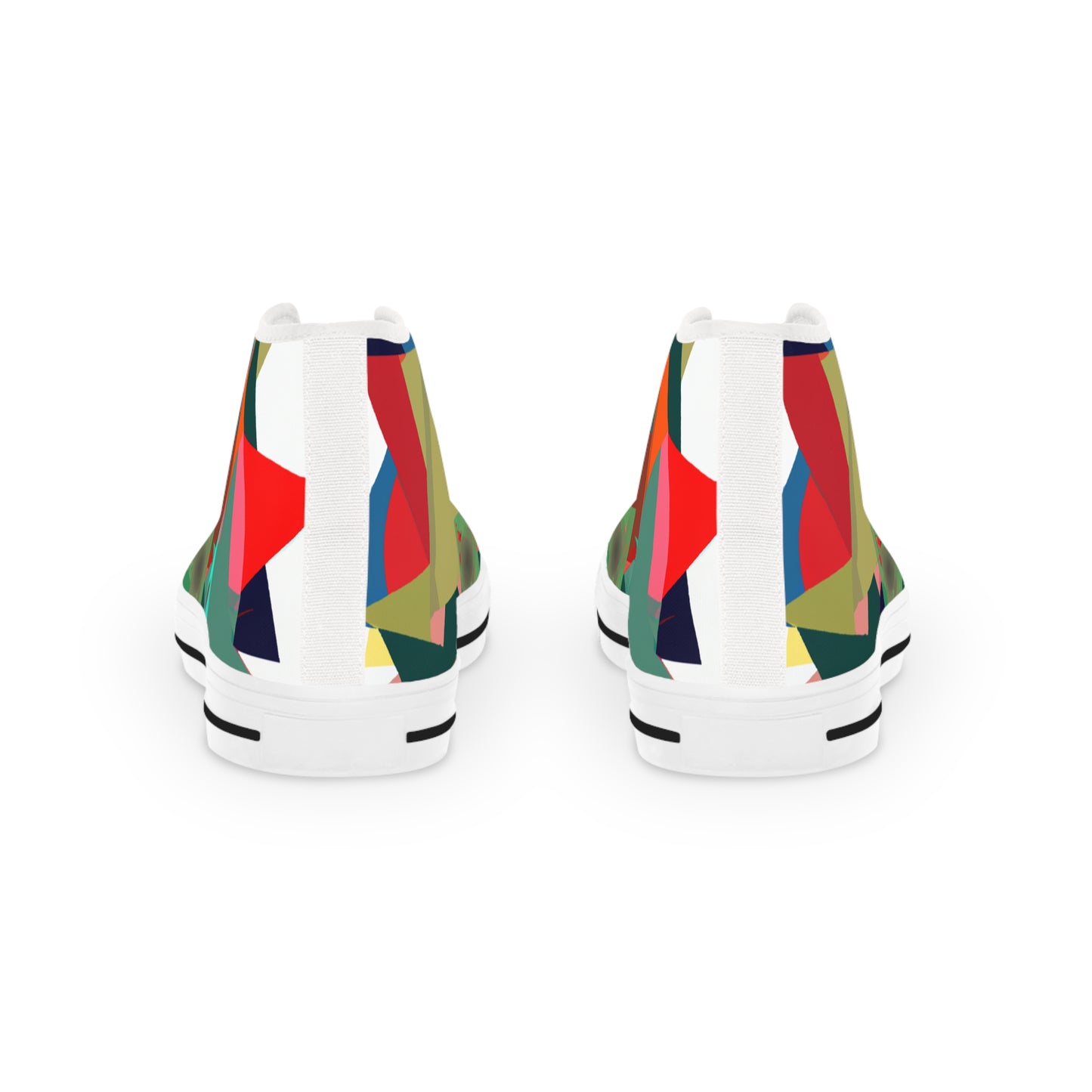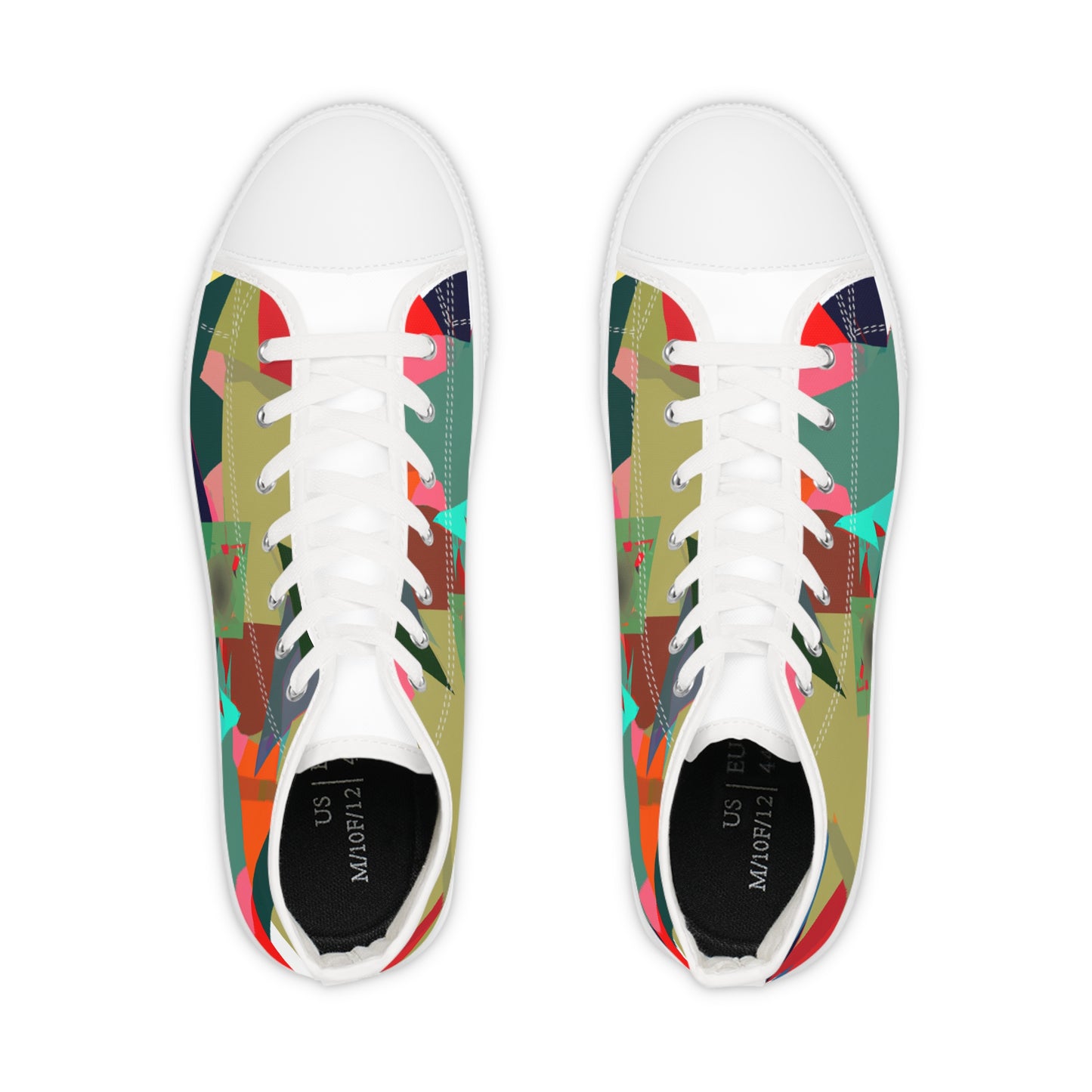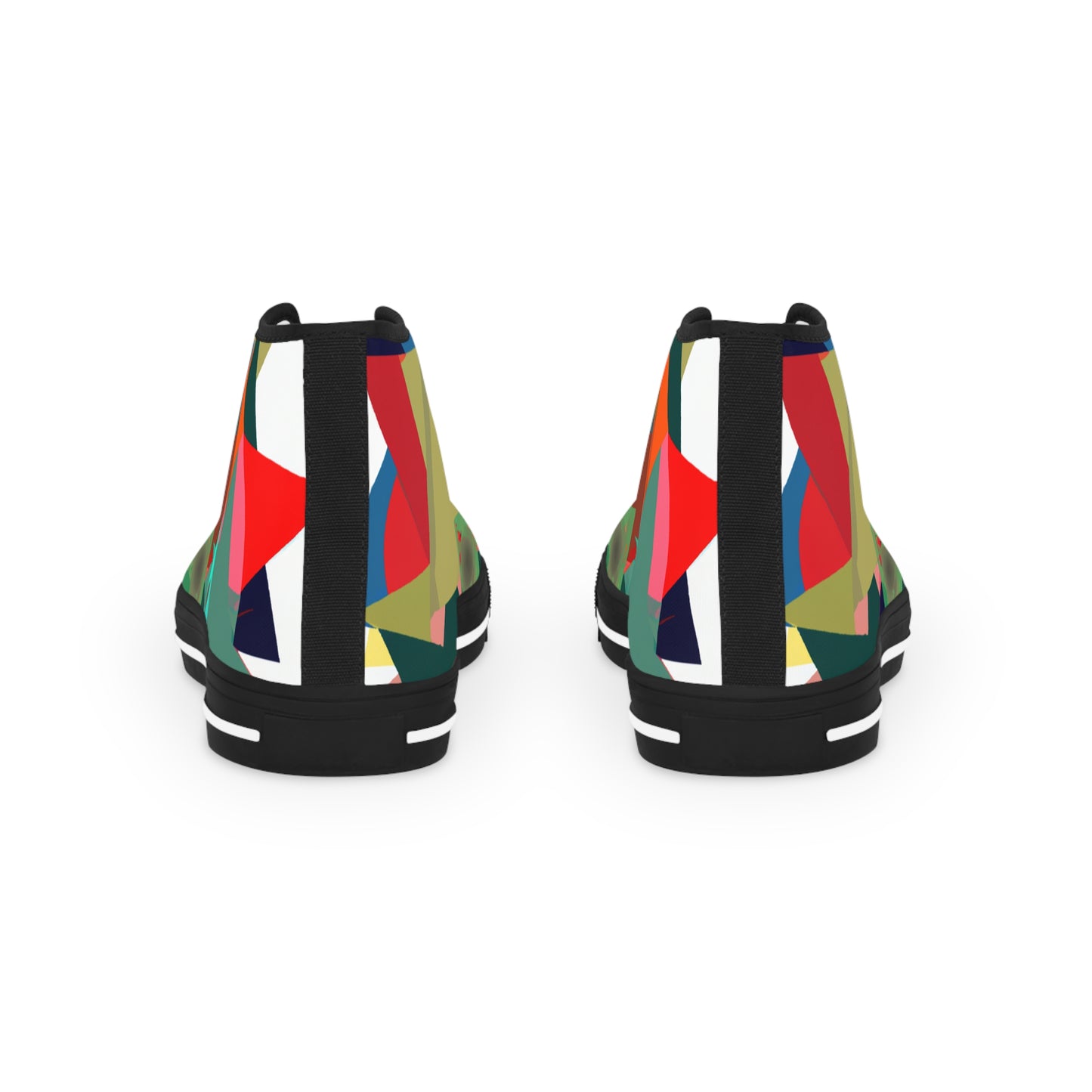 Walk in sleek style with these artistic high tops! These shoes feature vibrant colors for maximum visual impact, making them perfect for you to show off your creative spirit. The Geometric Art aesthetic makes for an eye-catching design that stands out above the rest. Whether you're running errands, hitting the gym, or out on the town, let these shoes take your look to the next level. #HighTops #GeometricArt #VibrantColors #Fashion #Style #ComfyAndCool #MakeASplash #StatementPiece #CompleteYourLook #ConfidenceBooster #ShowYourSpirit