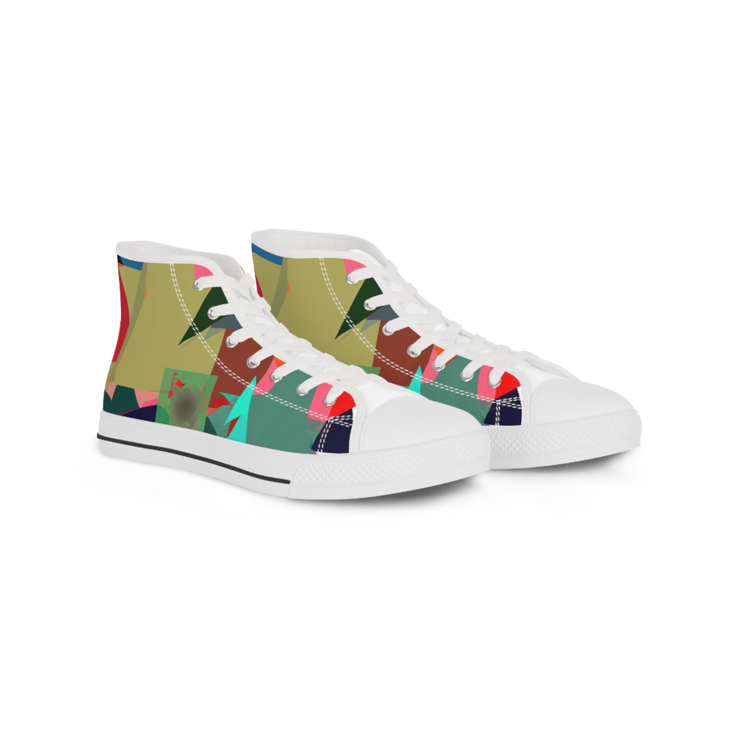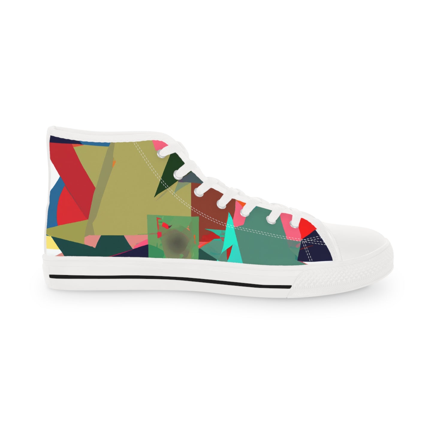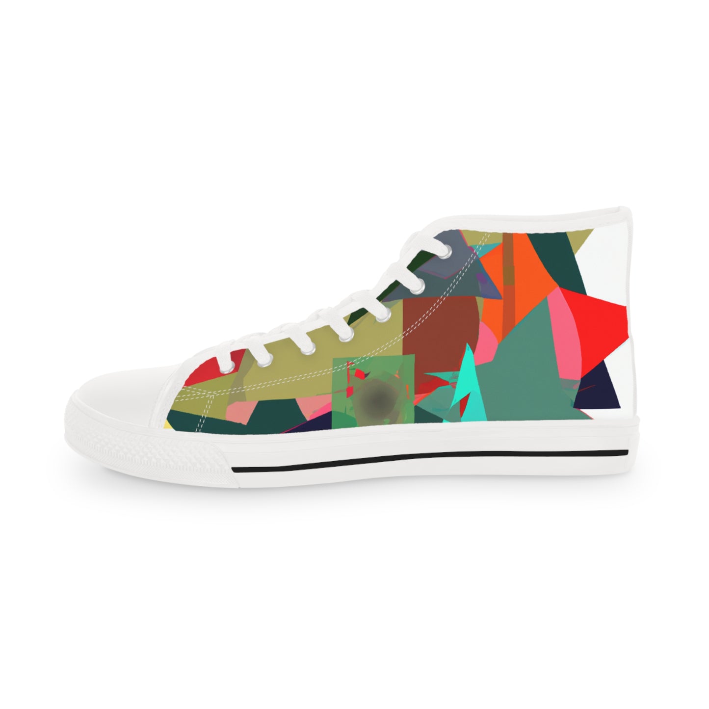 Walk in sleek style with these artistic high tops! These shoes feature vibrant colors for maximum visual impact, making them perfect for you to show off your creative spirit. The Geometric Art aesthetic makes for an eye-catching design that stands out above the rest. Whether you're running errands, hitting the gym, or out on the town, let these shoes take your look to the next level. #HighTops #GeometricArt #VibrantColors #Fashion #Style #ComfyAndCool #MakeASplash #StatementPiece #CompleteYourLook #ConfidenceBooster #ShowYourSpirit