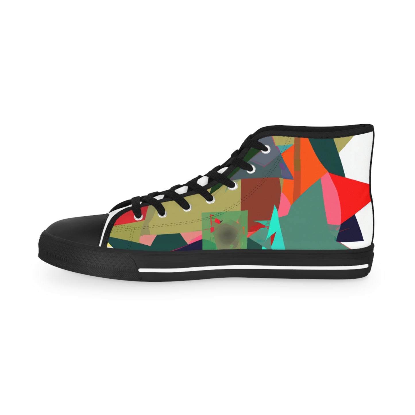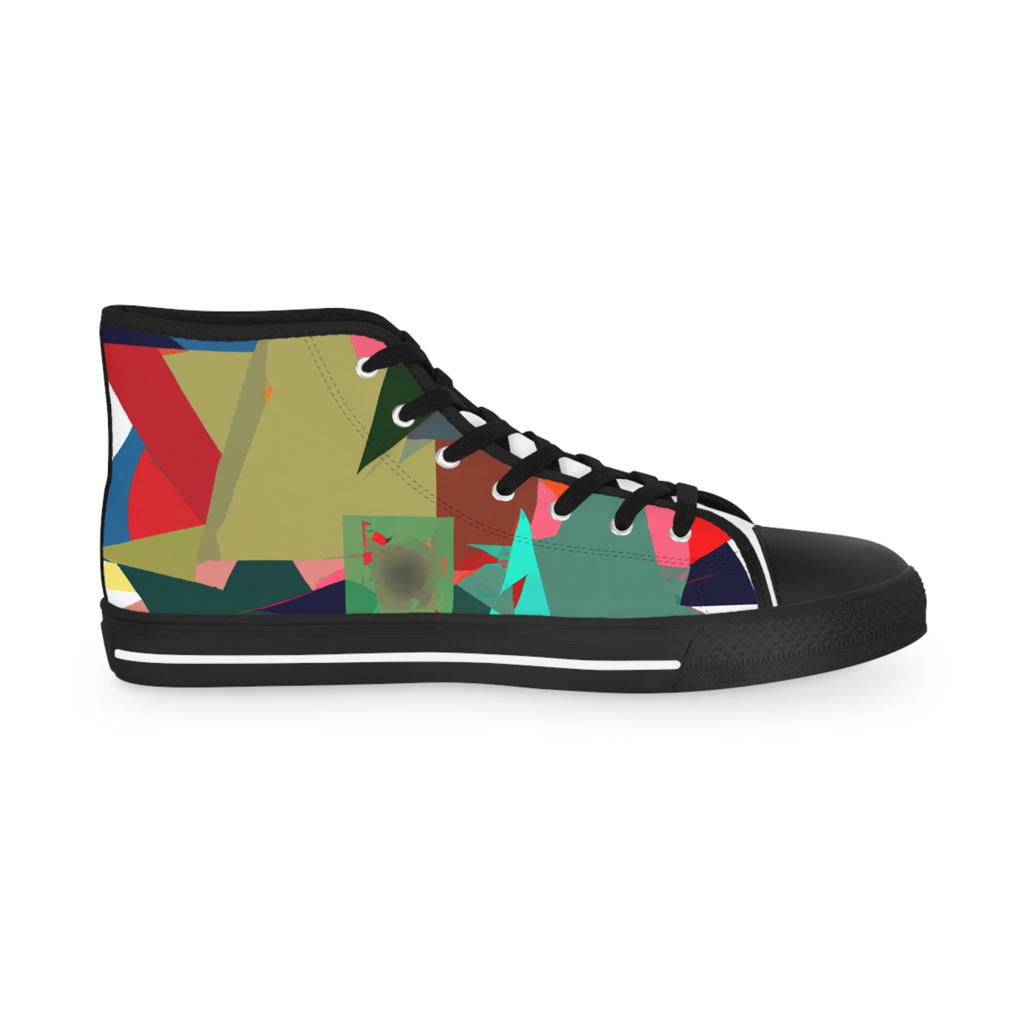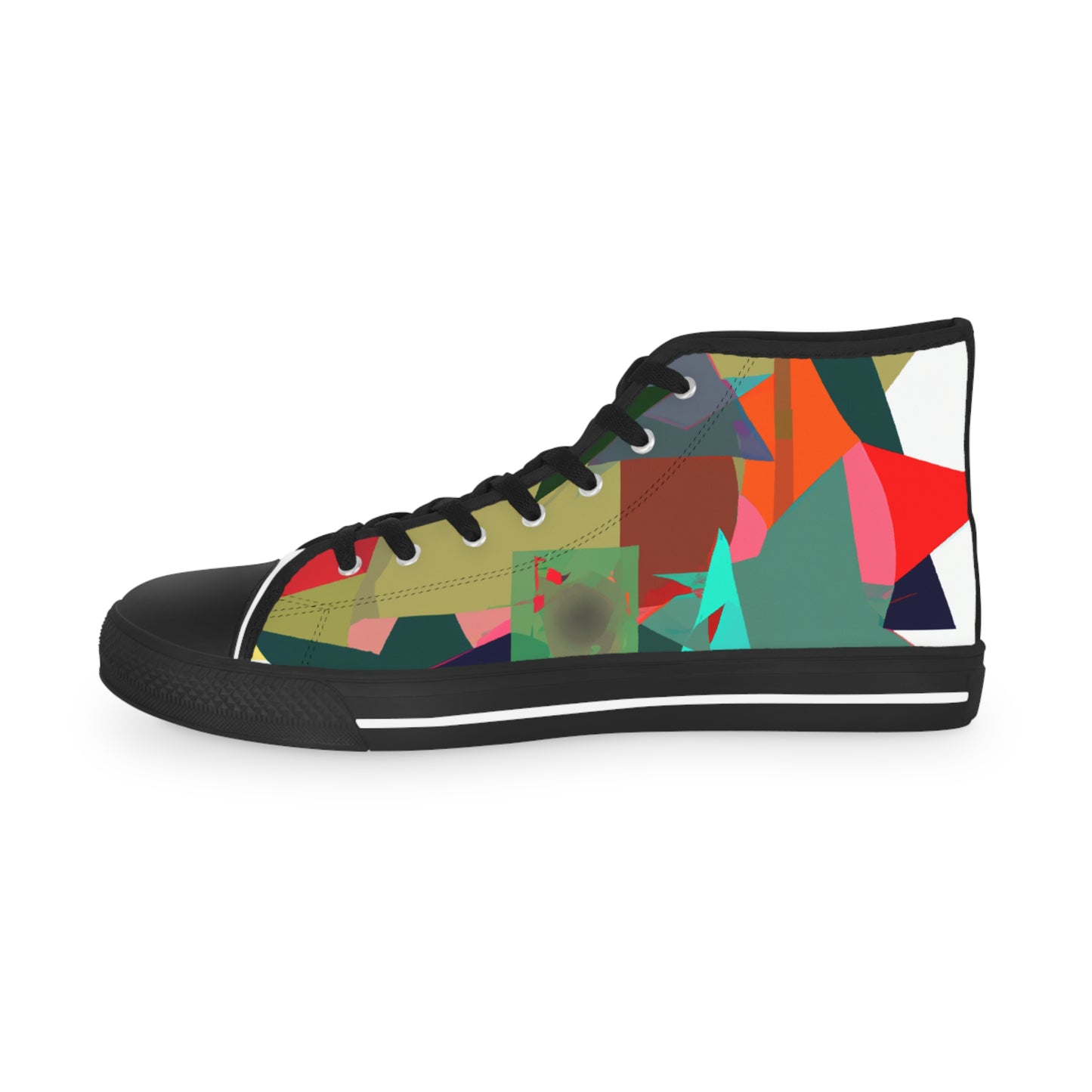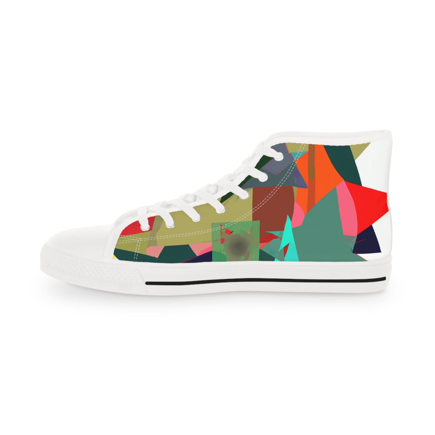 Walk in sleek style with these artistic high tops! These shoes feature vibrant colors for maximum visual impact, making them perfect for you to show off your creative spirit. The Geometric Art aesthetic makes for an eye-catching design that stands out above the rest. Whether you're running errands, hitting the gym, or out on the town, let these shoes take your look to the next level. #HighTops #GeometricArt #VibrantColors #Fashion #Style #ComfyAndCool #MakeASplash #StatementPiece #CompleteYourLook #ConfidenceBooster #ShowYourSpirit