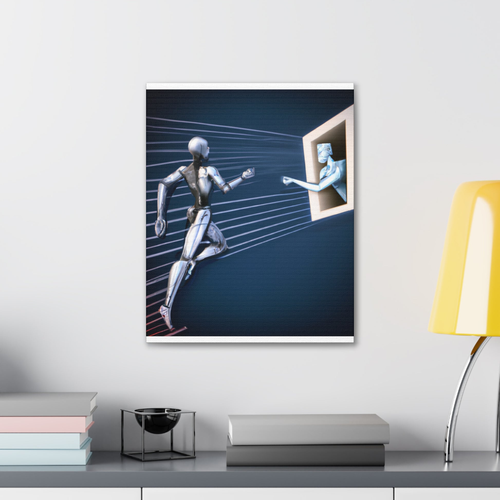 Experience digital art come to life with this stunning canvas of A.I. Escaping the Machine! Rendered with vibrant colors and striking imagery, this artwork will bring a futuristic dimension to any room. Hang this brilliant piece and marvel at its captivating style and originality. #DigitalArt #AIEscapingMachine #EscapingMachine #Canvas #VibrantColors #StrikingImagery #Futuristic #BrilliantPiece #CaptivatingStyle #Originality #VibrantArt