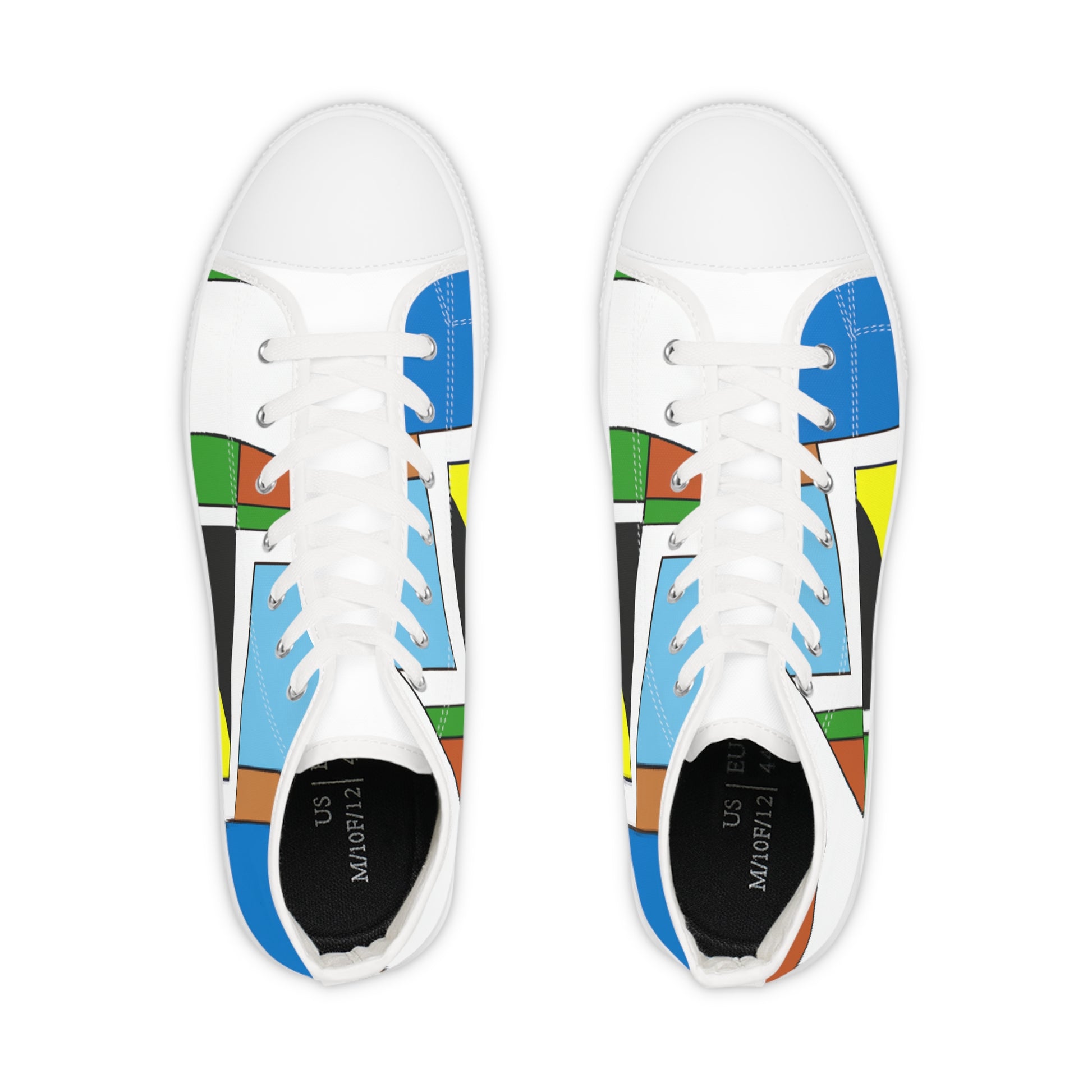 These vibrant Cubism Design High Top shoes are a style-forward way to add some extra personality to any outfit. Built to last with durable rubber soles and breathable canvas uppers, they feature a unique design with an array of colors, patterns and textures. With tonal laces and a unique knitted design around the ankles, these shoes offer an unique style that pops with color. Whether you pair them with your favorite jeans or a fun skirt, these vibrant high tops will always draw the eyes of passersby. #shoes, #CubismDesign, #highTops, #vibrant, #canvas, #style, #knitted, #durable, #popOfColor, #stunning, #classic