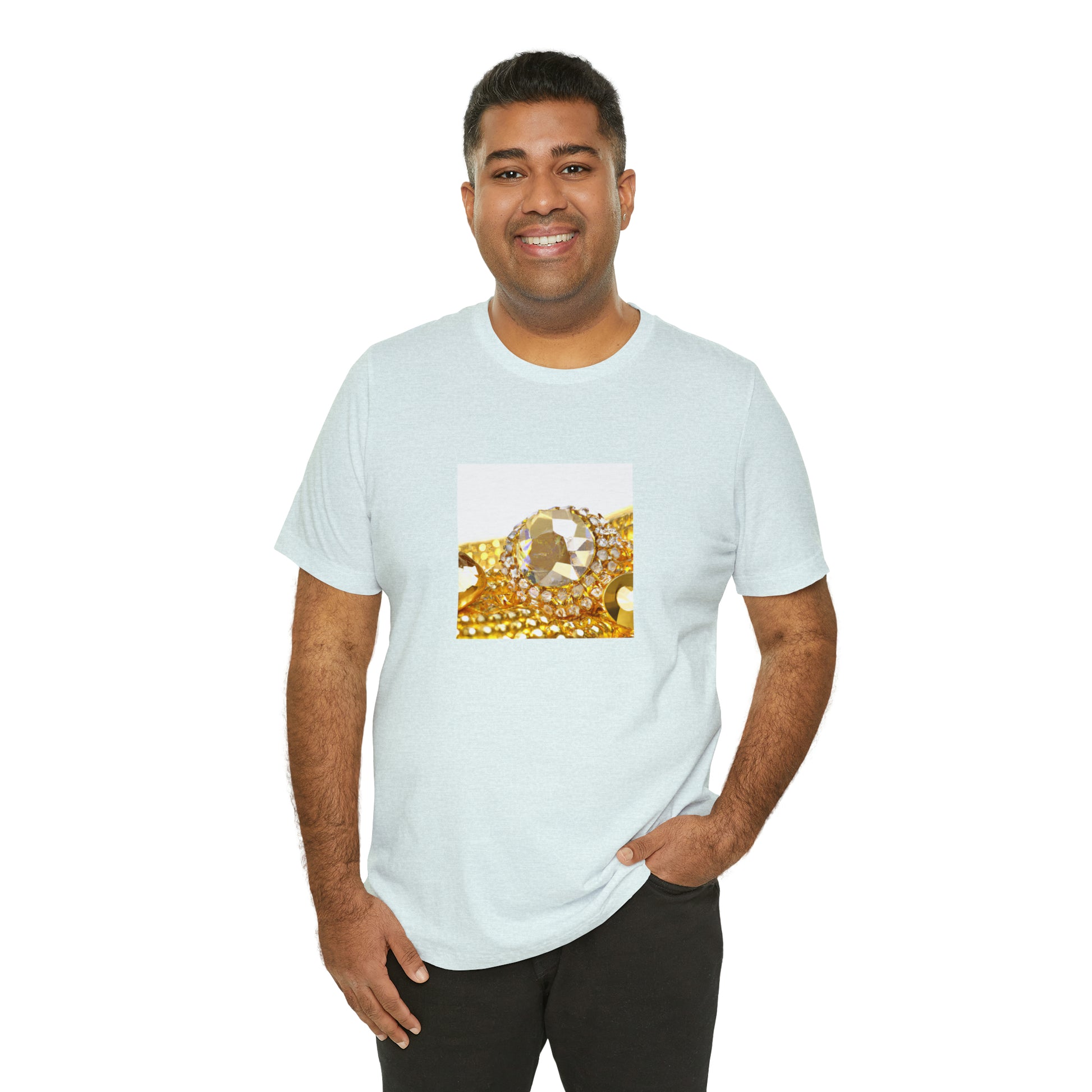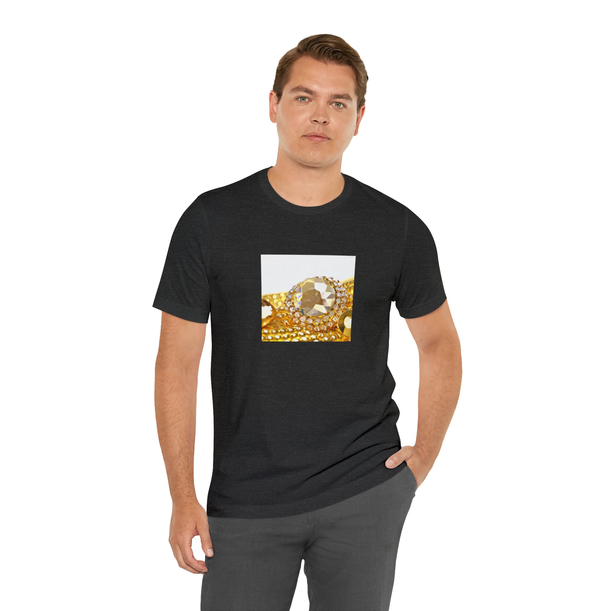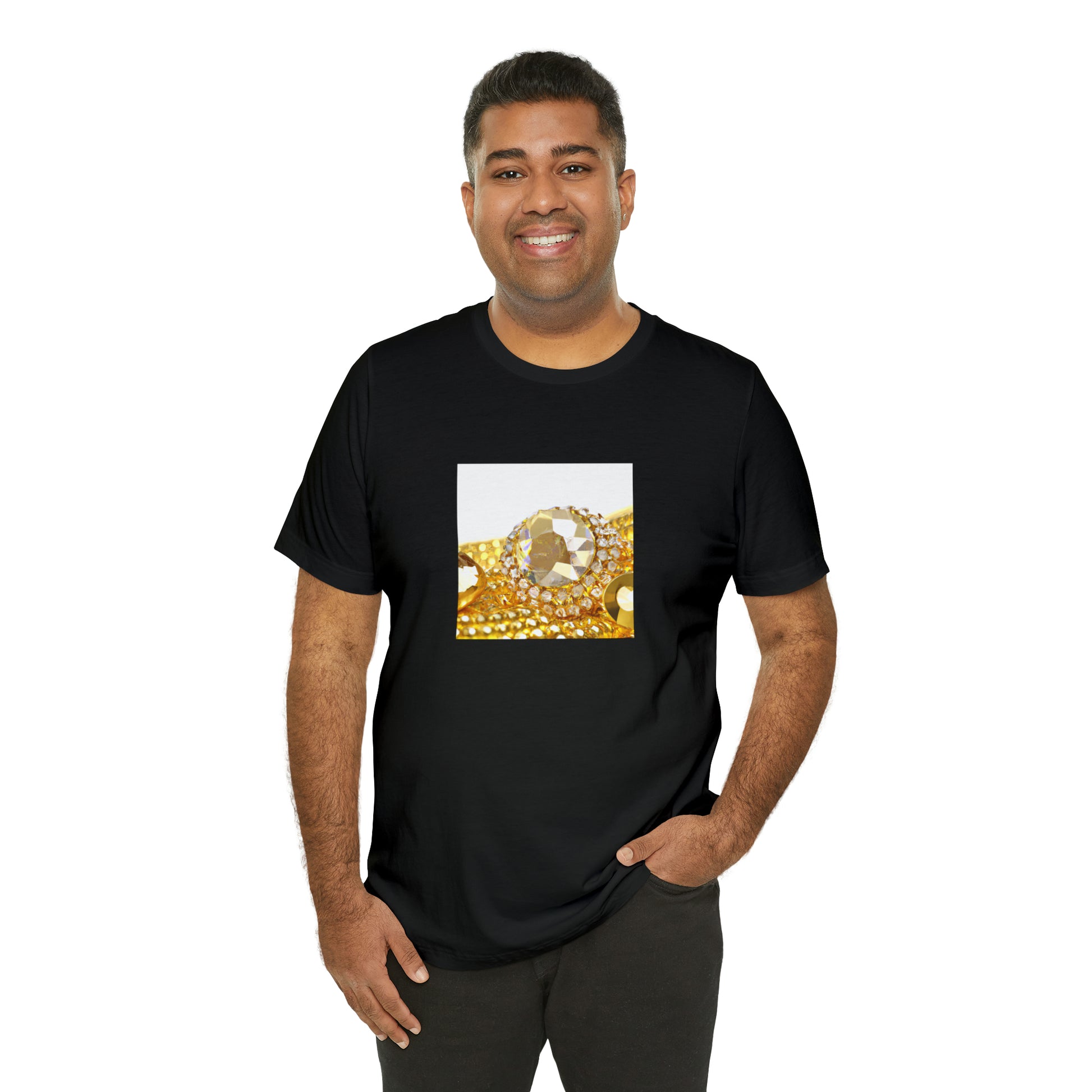 This streetwear t-shirt features a color clash of gold and diamonds for a bold, eye-catching look. Constructed from soft, lightweight fabric that provides all-day comfort. The tee also features our signature logo detailing for an iconic finish. Signature prints and details refine the contemporary design creating a fashionable everyday staple. #Streetwear #goldanddiamonds #menswear #goldtee #diamondtee #teeshirt #fashion #trendystyle #hiphopstyle #mensfashion #style