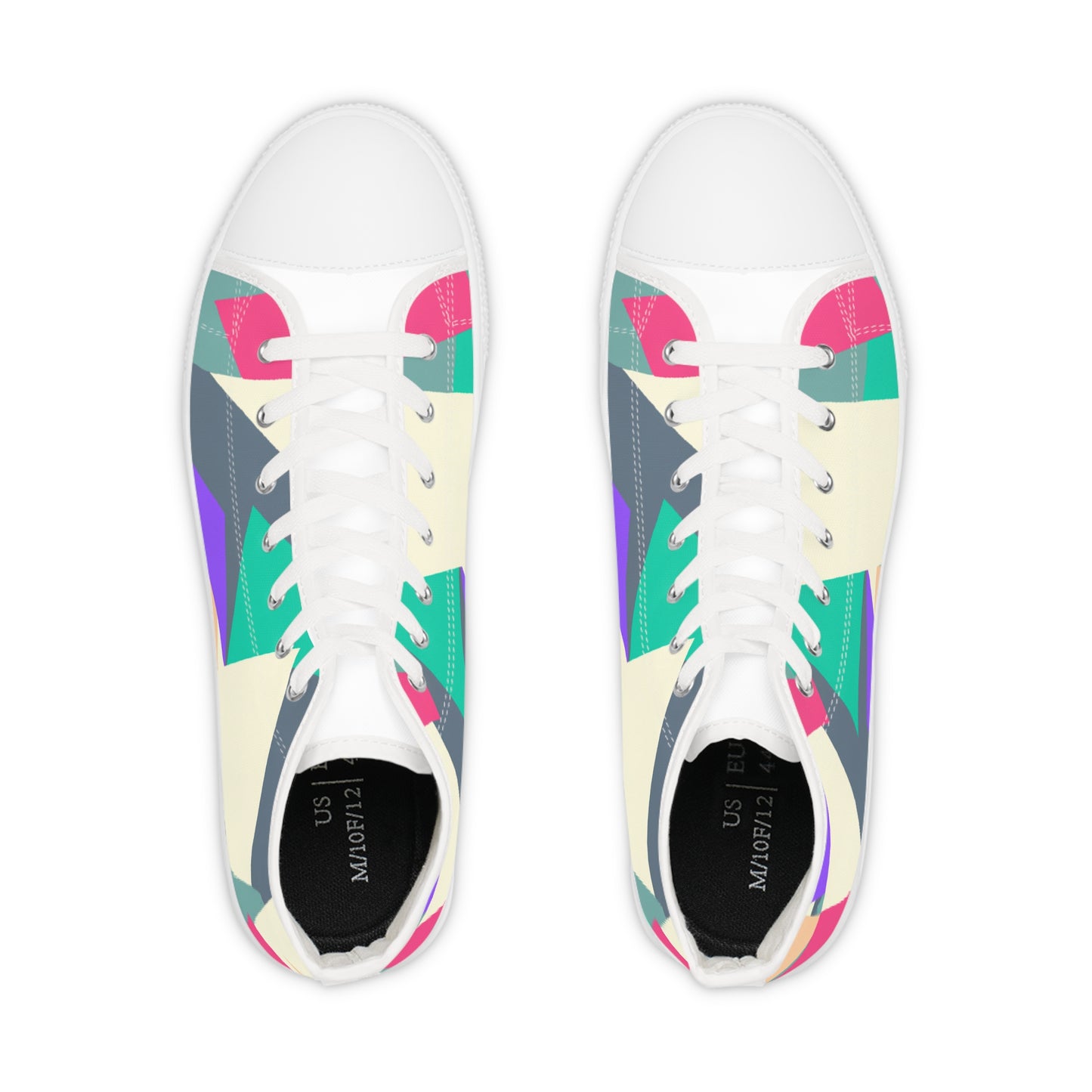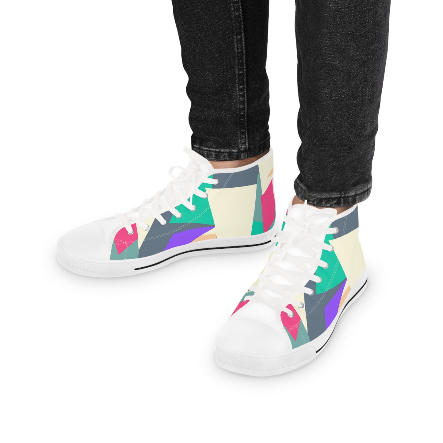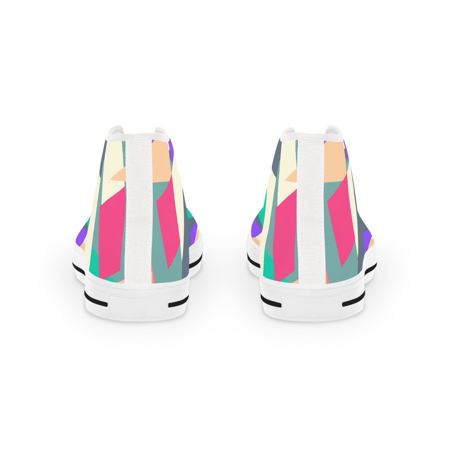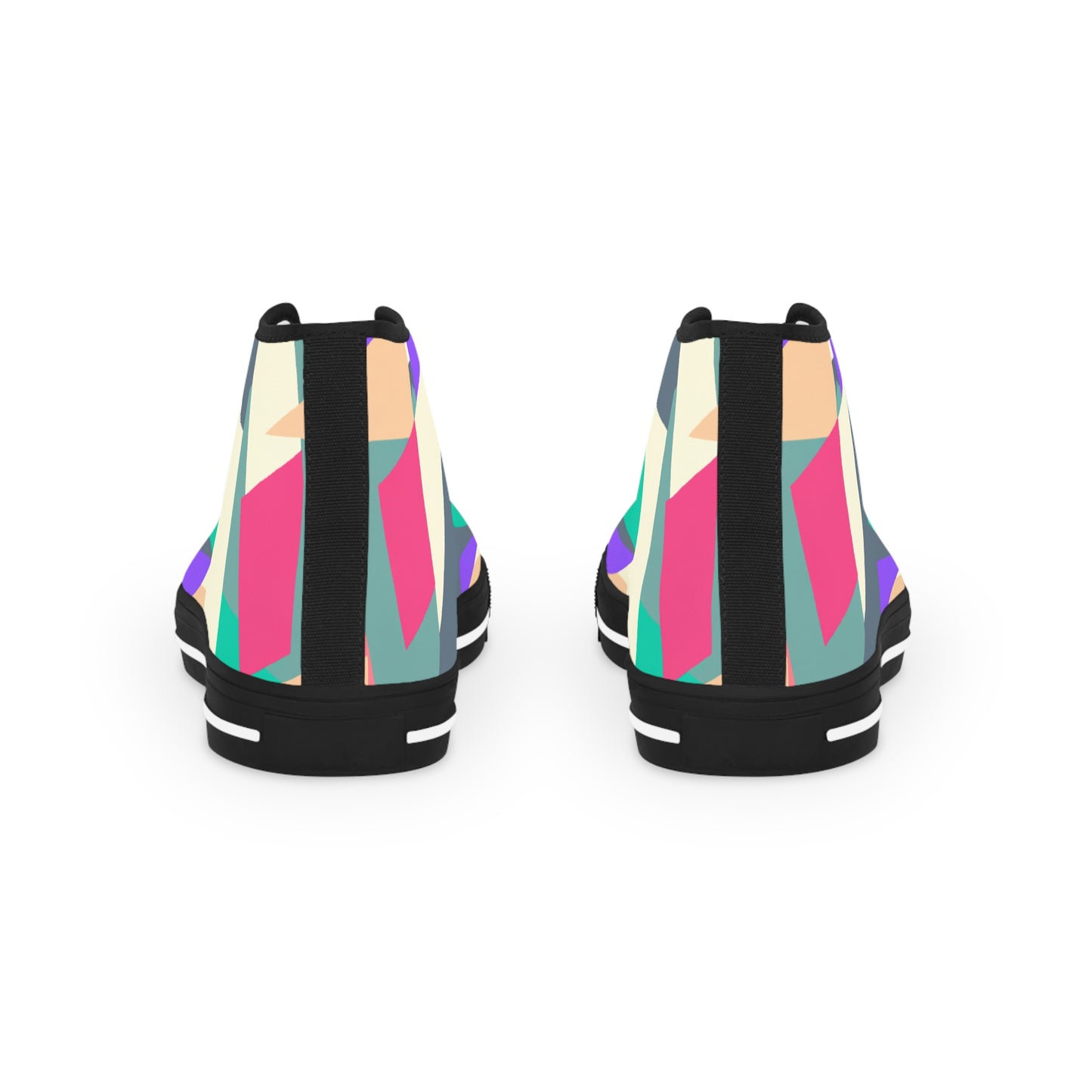 This vibrant and geometric high top will have heads turning. With an eye-catching design, these shoes are sure to be a conversation starter. They also feature a soft, comfortable interior with a breathable upper to keep your feet supported all day and night. Match these with any outfit for a unique and stylish look! #Geometric #Colorful #HighTop #Vibrant #Unique #Style #Fashion #Statement #Comfortable #Breathable #Supportive