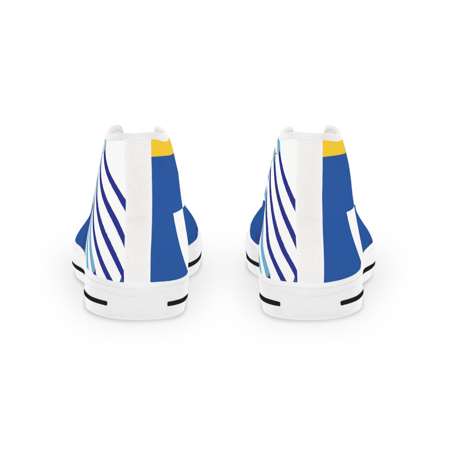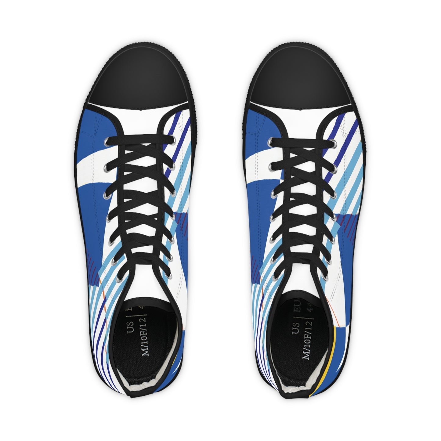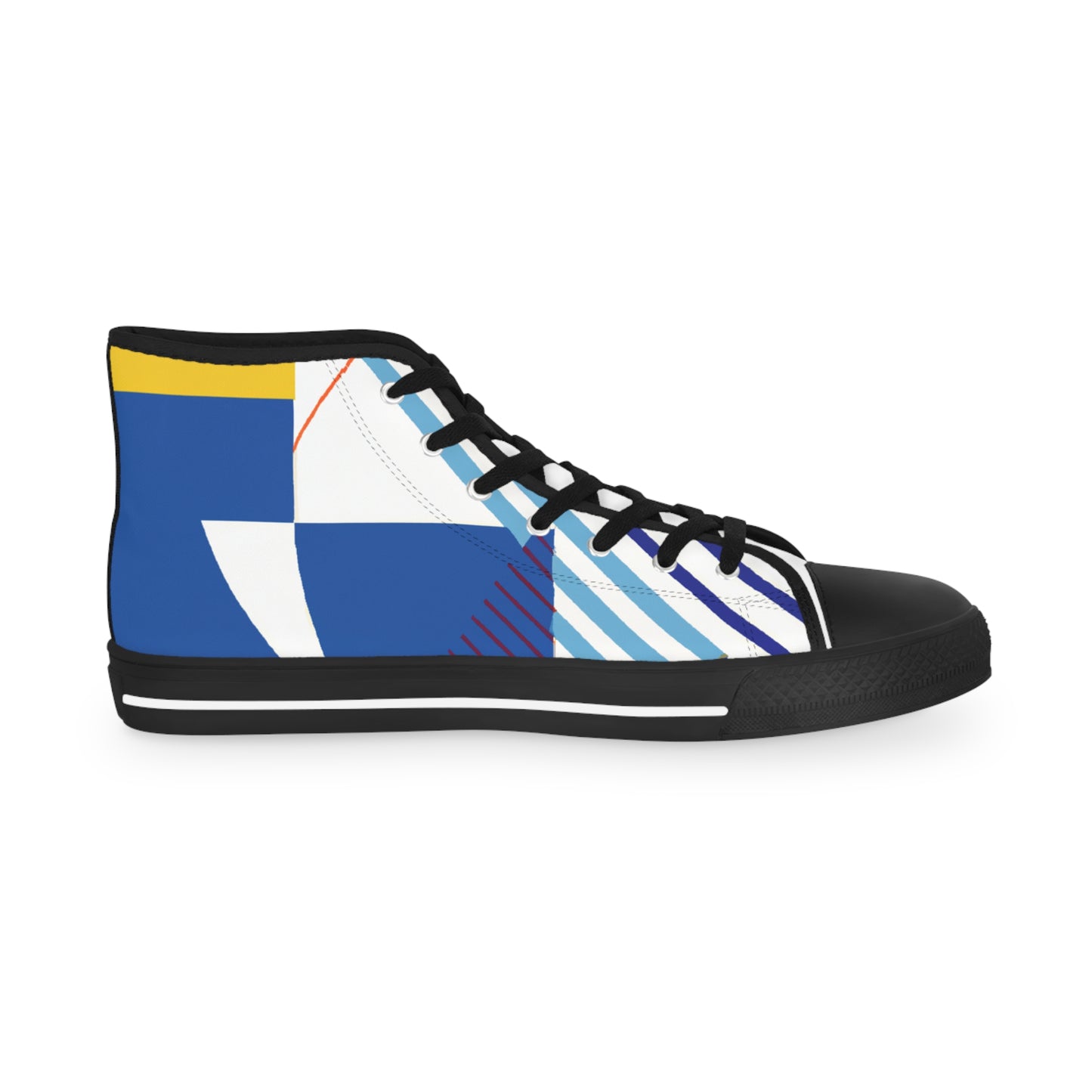 These Geometric Art high top shoes feature vibrant colors to give you unique statement style. Crafted with a combination of synthetic leather, durable felt and light canvas - they're perfect for any occasion. The sleek design, rubber sole and high ankle support will give you superior comfort. And the breathable lining will keep your feet fresh all day. #highTop #streetStyle #vibrantColors #uniqueAesthetics #statementStyle #syntheticLeather #durableFelt #lightCanvas #sneakersFashion #tennisShoes #geometricArt