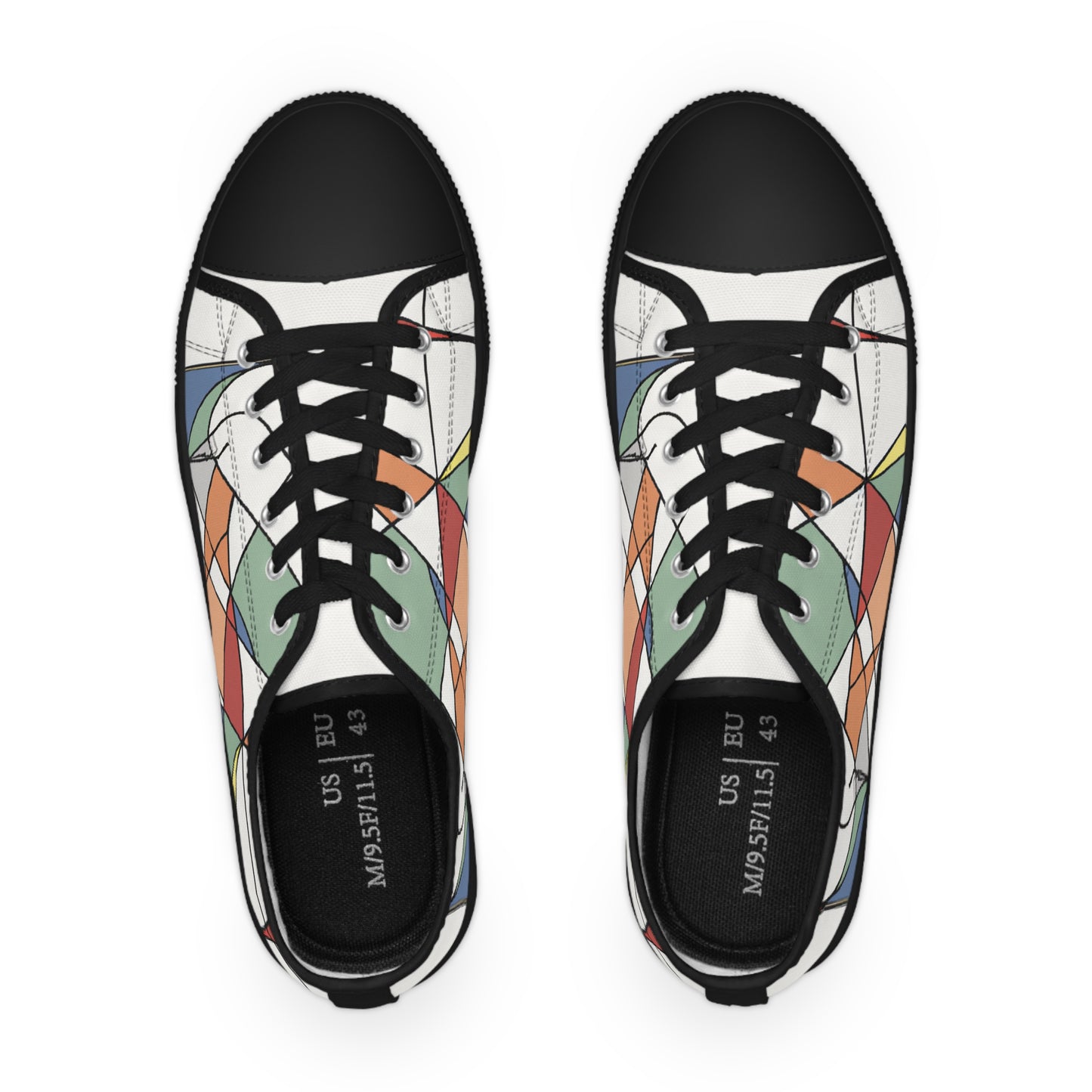 This classic sneaker with vibrant colors and geometric artwork will dress up any look! It features lightweight, cushiony fabric in a retro silhouette that will add character to your wardrobe. The contrast colors and artistic design give a dynamic look- and don't skimp on the comfort - it ensures cushioning and impact absorption with every step. Make a stand out with this eye-catching classic sneaker! #vibrantcolors #geometricart #retrosilhouette #lightweightfabric #classicstyle #cushionycomfort #dynamiclook #contrastcolors #everystep #standout #eyecatching