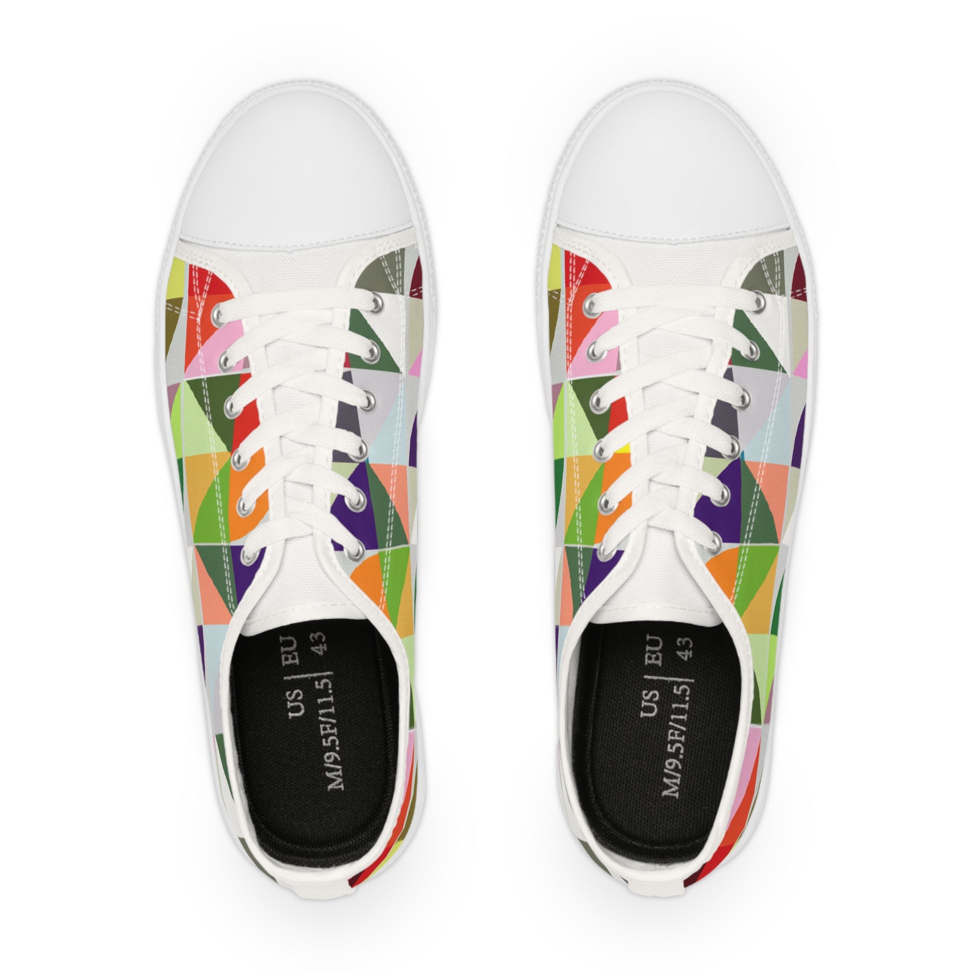 These classic sneakers are perfect for those going for an artful look. With a geometric design featuring vibrant colors, you'll be sure to stand out from the crowd! Have a comfy and secure fit with the adjustable lacing and rubber sole. Plus, look stylish wherever you go with the stylish design. #sneakers #classic #geometricdesign #vibrantcolours #style #comfort #shoes #footwear #adjustablelacing #rubbersole #securefit #artful