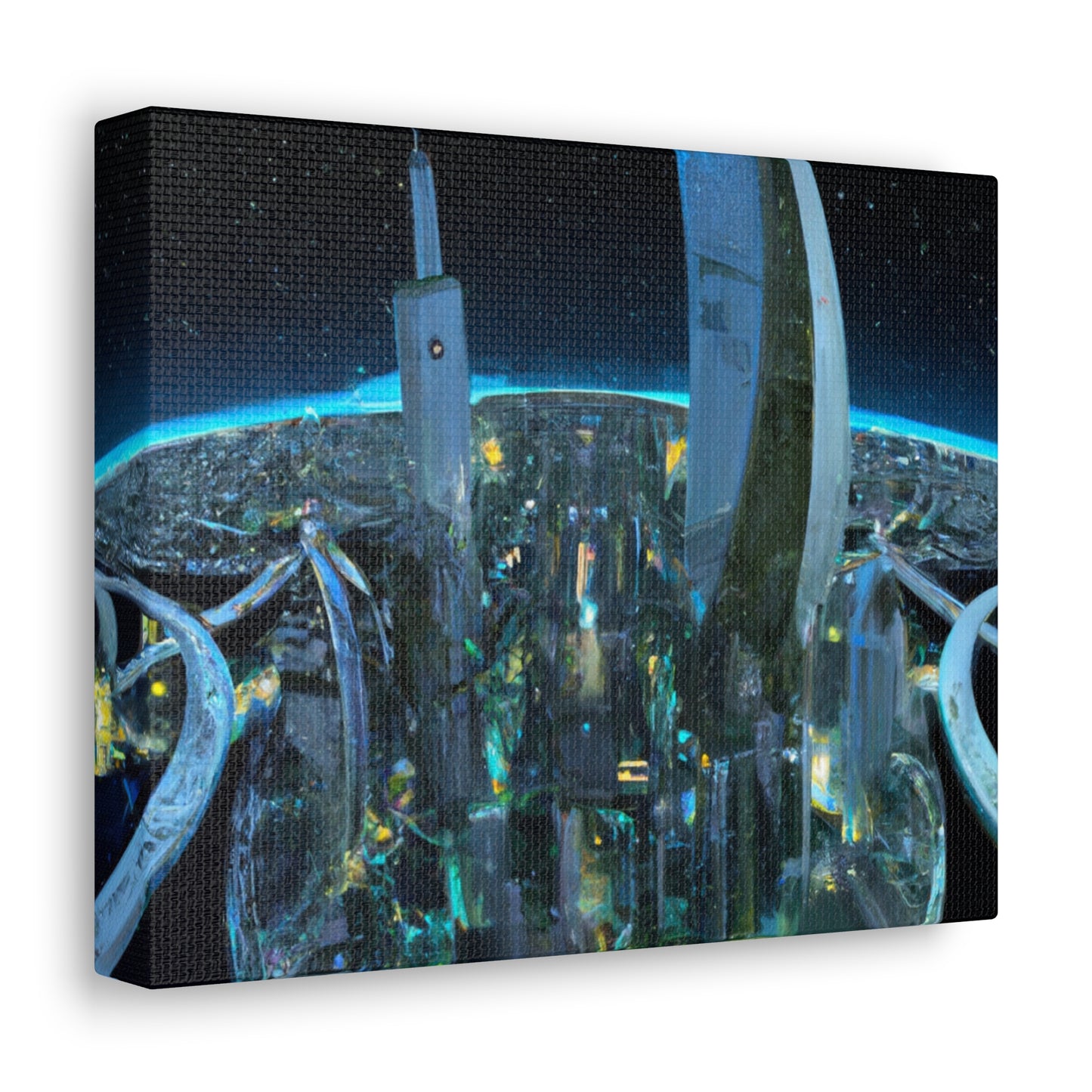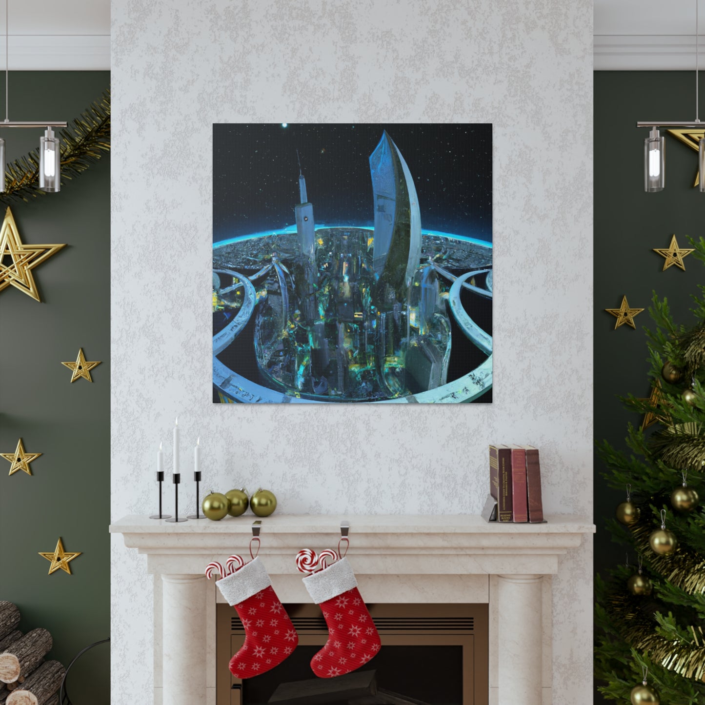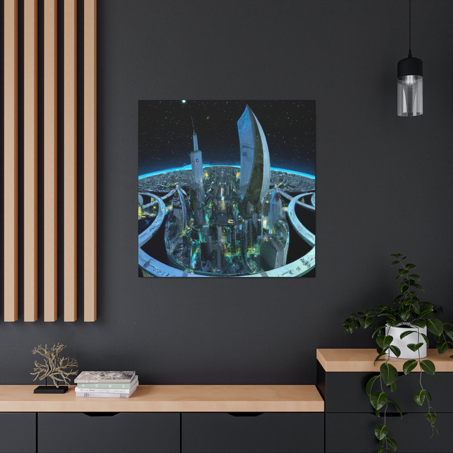 This one-of-a-kind canvas showcases vivid Futuristic City Photorealism. It features glowing structures, massive skyscrapers, and a sleek modern cityscape. With its bright colors, detailed patterns, and detailed lines, this stunning canvas is sure to be a conversation starter and a must-have in any modern stylish home or office. #canvas #painting #cityscape #futuristic #photorealism #modern #art #interiordesign #wallart #homedecor #interiors