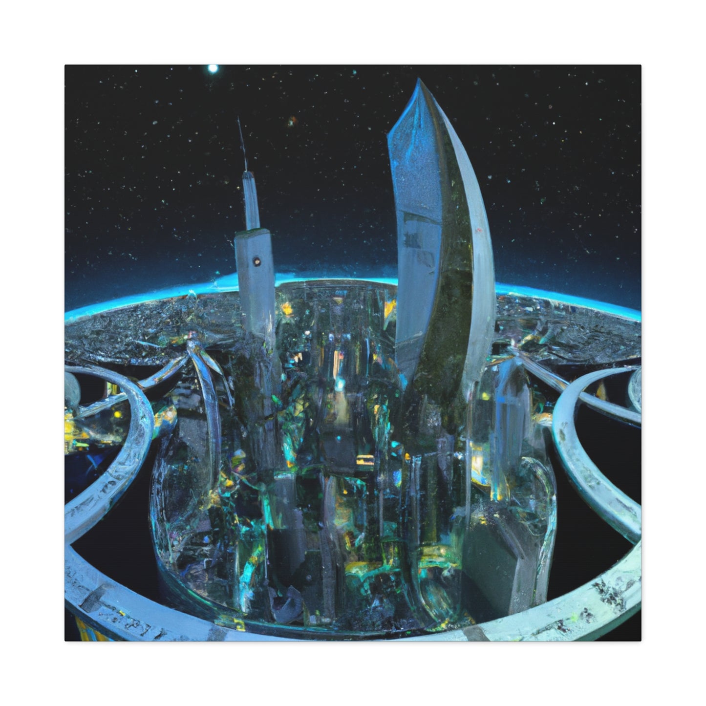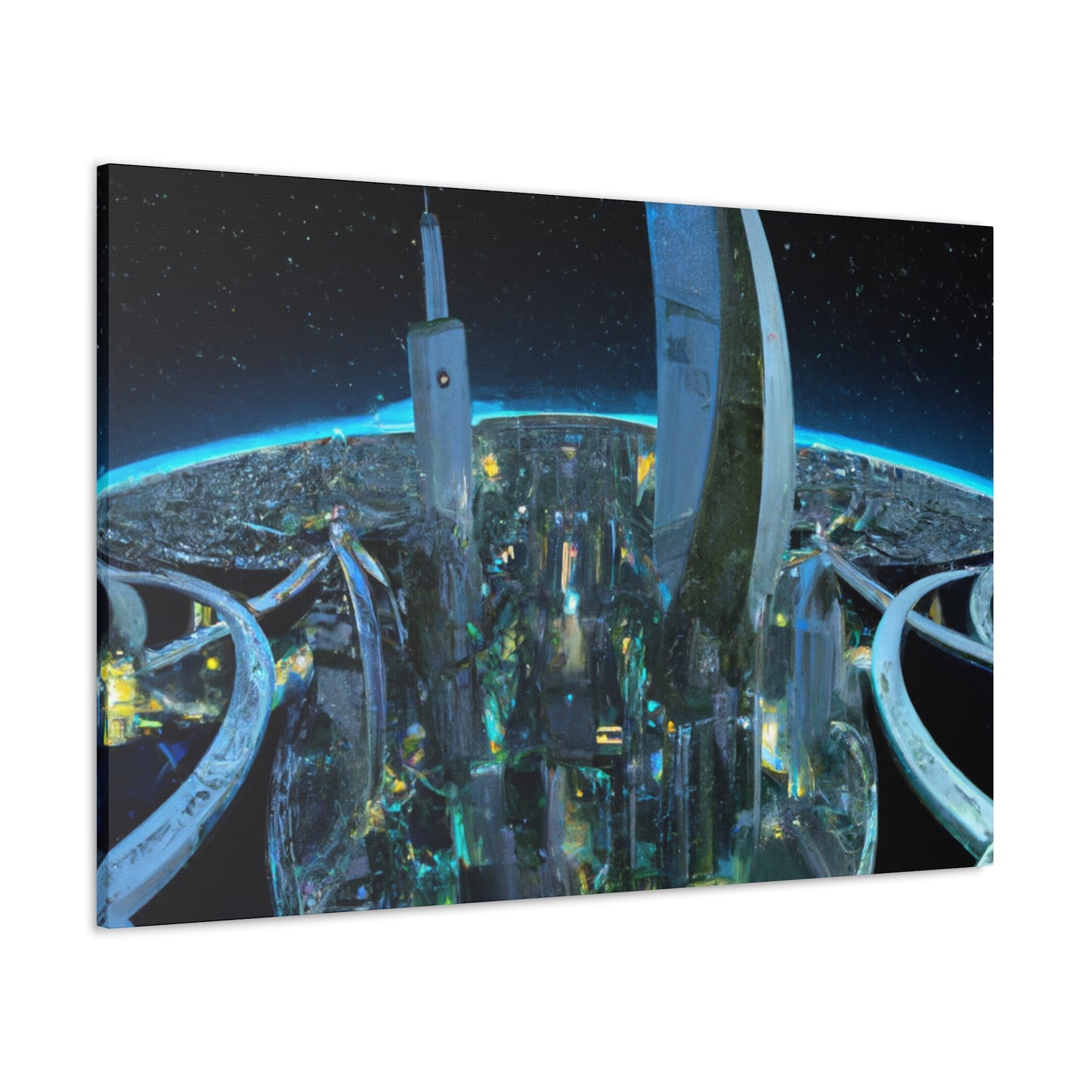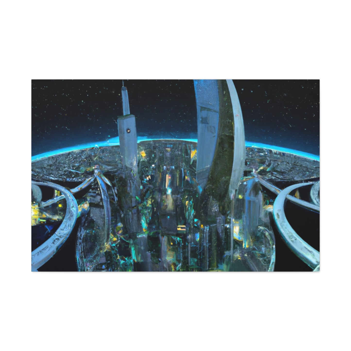 This one-of-a-kind canvas showcases vivid Futuristic City Photorealism. It features glowing structures, massive skyscrapers, and a sleek modern cityscape. With its bright colors, detailed patterns, and detailed lines, this stunning canvas is sure to be a conversation starter and a must-have in any modern stylish home or office. #canvas #painting #cityscape #futuristic #photorealism #modern #art #interiordesign #wallart #homedecor #interiors