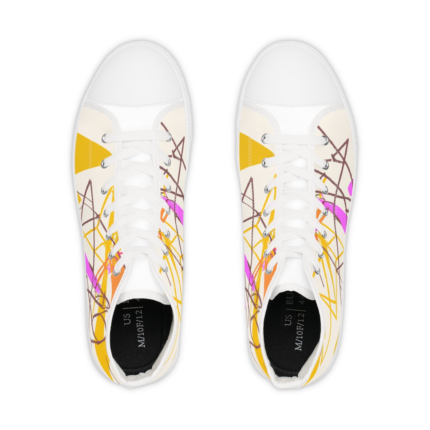 Look amazing wherever you go with these bright and colorful high-top shoes! The perfect combination of geometric art and wearable art – these shoes offer uncompromising comfort and timeless styling. These kicks feature a unique aesthetic based on vibrant colors and shapes, blended together into a unique timeless design. Make a bold statement and show off your unique style and flair! #highTopShoes #streetwear #GeometricArt #vibrantColors #colorfulKicks #styleAesthetic #comfortFootwear #Aesthetics #IndividualStyle #Fashionista #StatementKicks