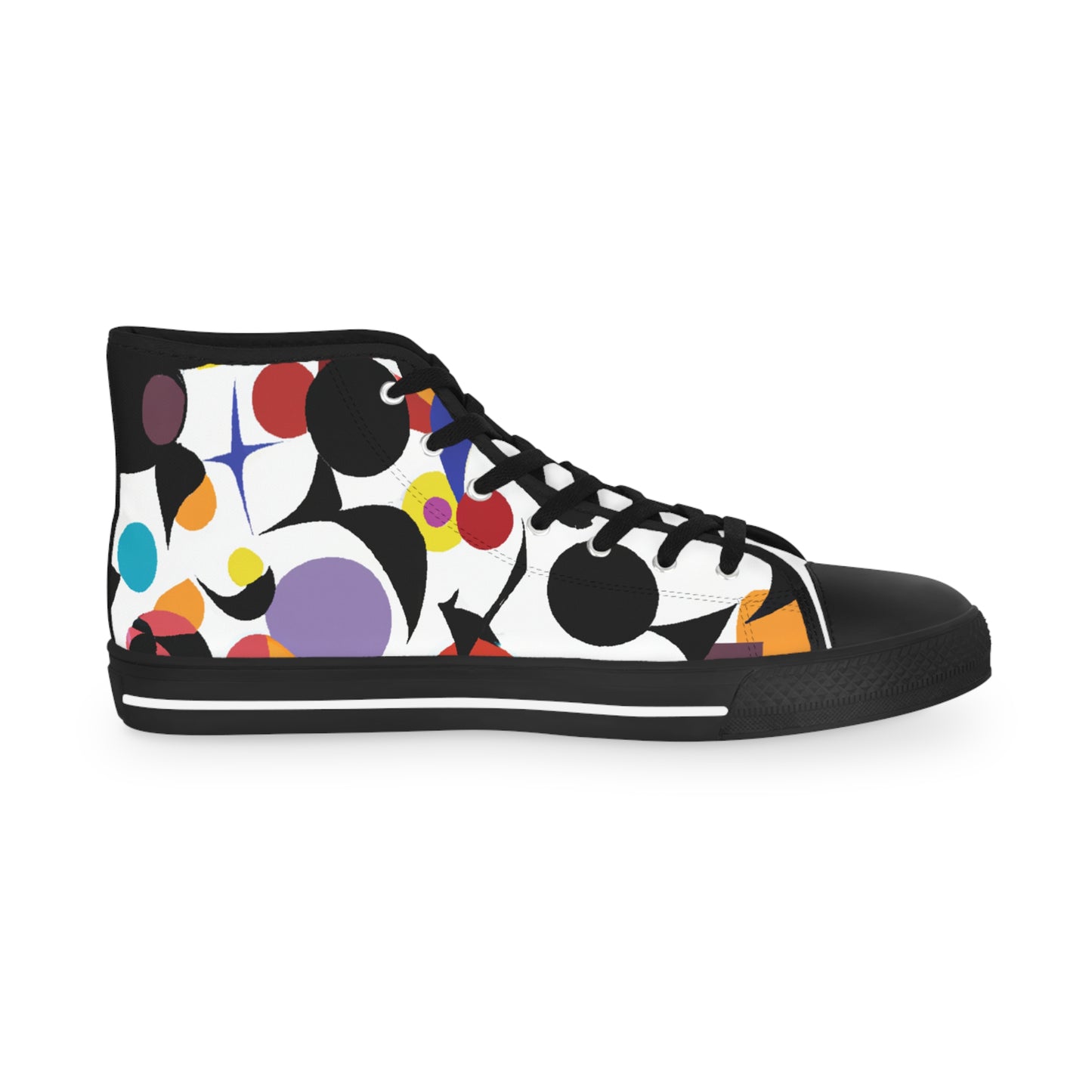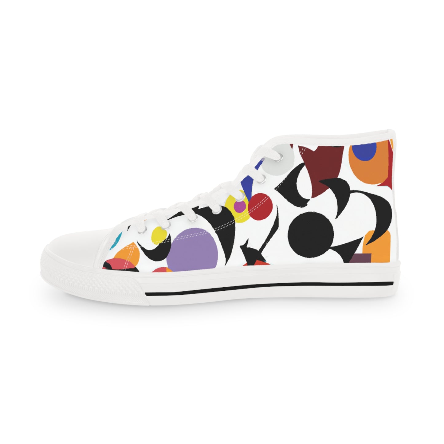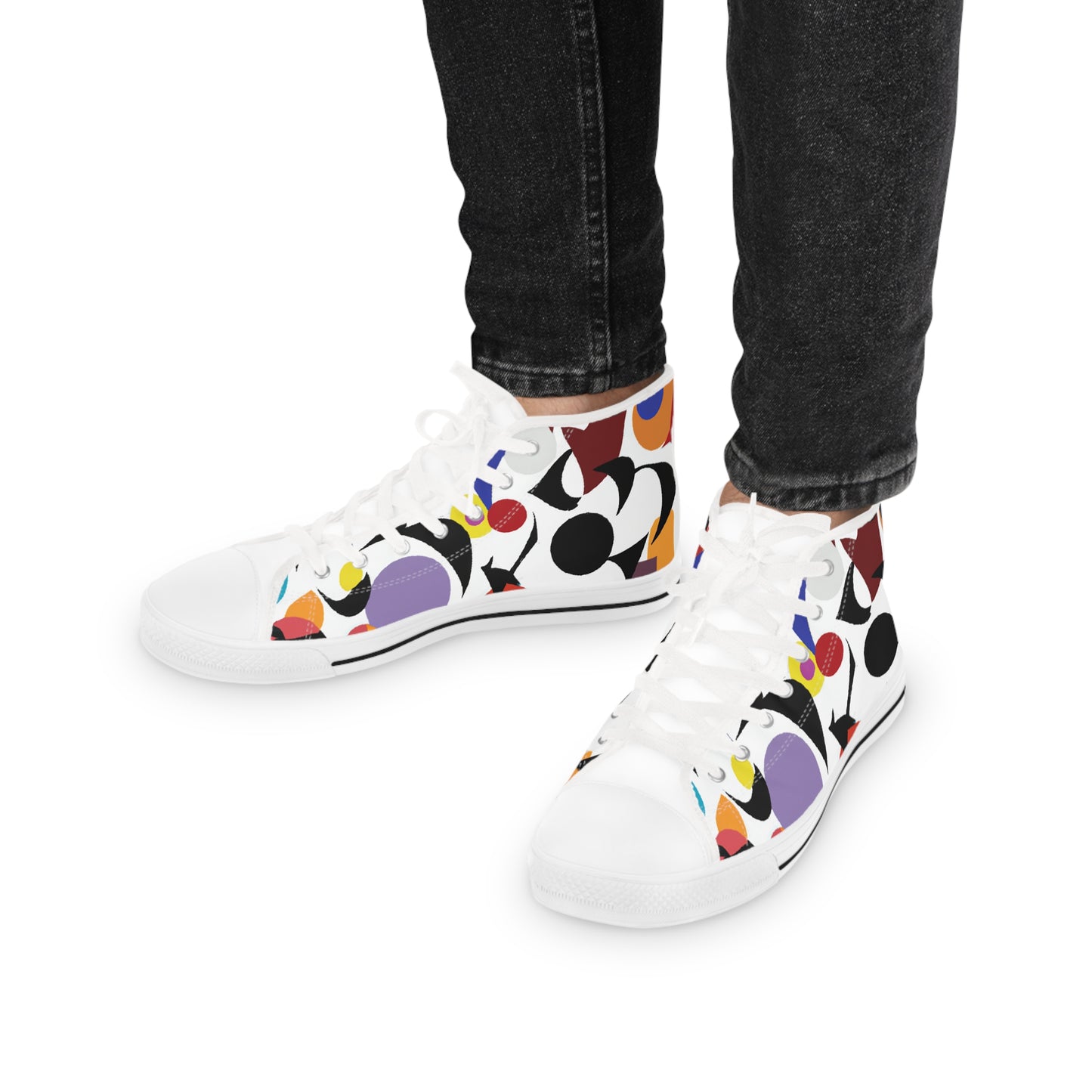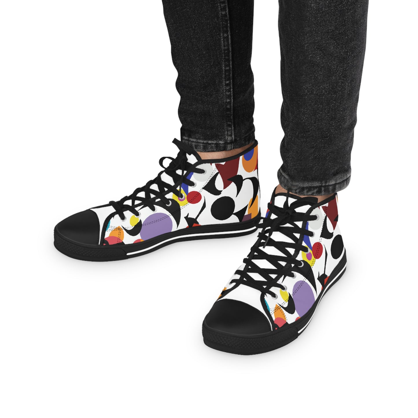 These vibrant and unique high top shoes feature a geometric art print like no other! Every day is a new adventure when you step out in these stunningly bold shoes. With a breathable canvas upper and durable rubber sole, you are guaranteed to turn heads no matter where you go! Perfect to make your outfit look totally unique! #vibrantstyle #geometricart #statementlook #boldstyle #highshoes #canvasfootwear #vibrantcolors #uniqueshoes #textileshoes #rubbersoles #colorfulfashion