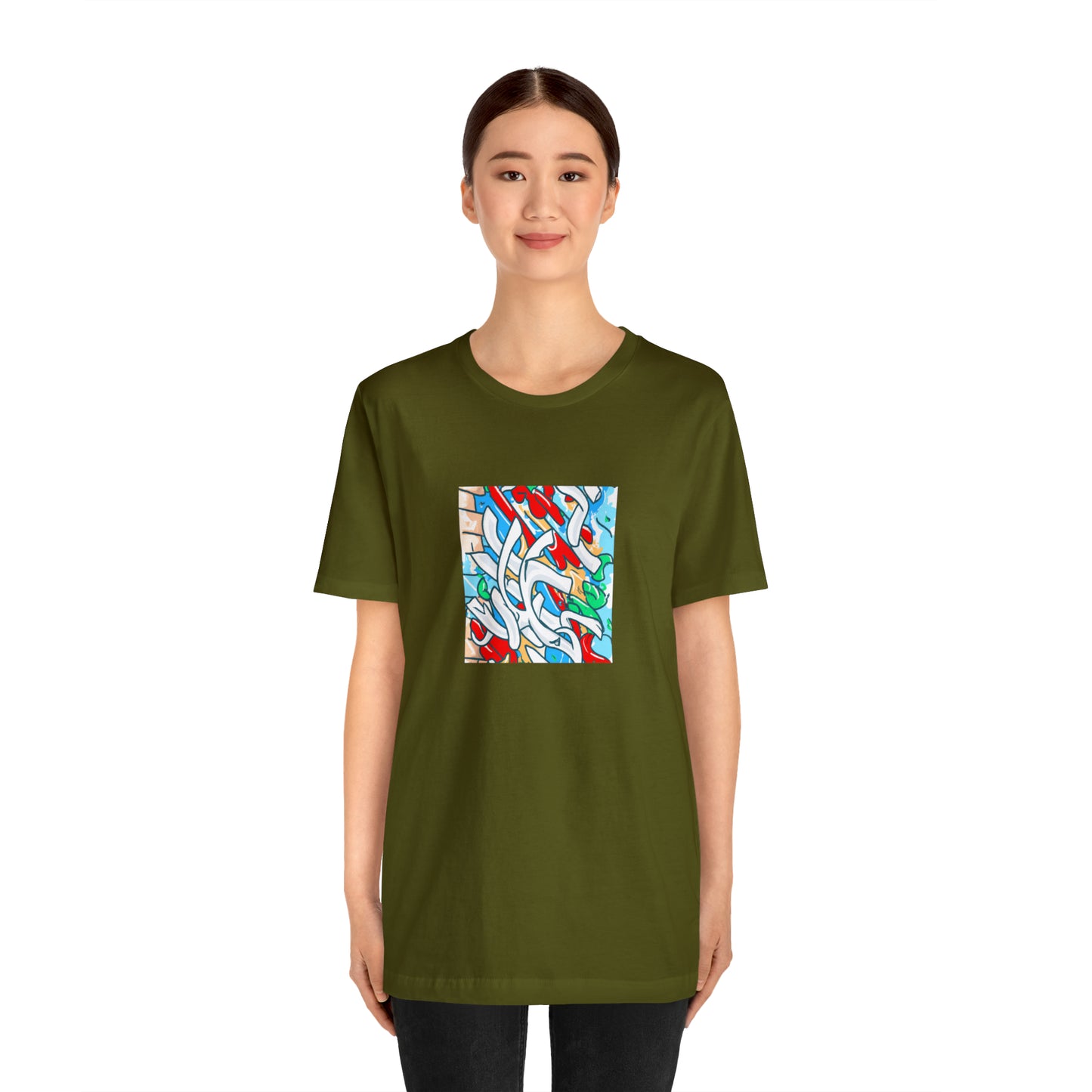 This streetwear t-shirt is perfect for street style lovers! It features bold, colorful graffiti art on a comfortable cotton tee, for a modern and urban vibe. The sharp lines of the artwork stand out against any outfit, and the attention to detail make it a conversation starter. Whether you have your own style, or looking for something to express yourself, this t-shirt is a great way to show off your personality. #streetstyle #streetfashion #graffitiart #tshirt #urbanvibe #boldcolors #statementtee #streetwearlove #modernlook #edgystyle #expressyourself