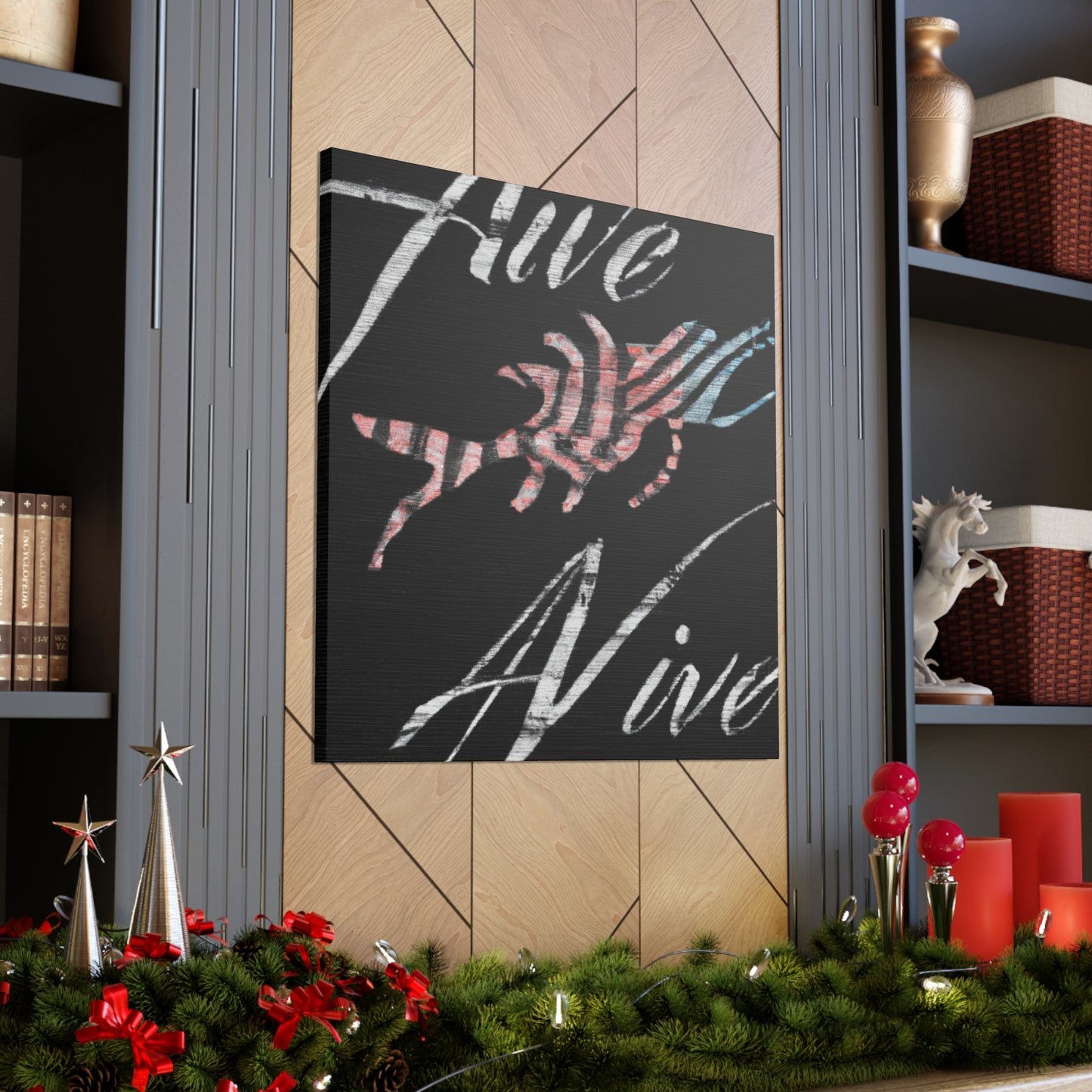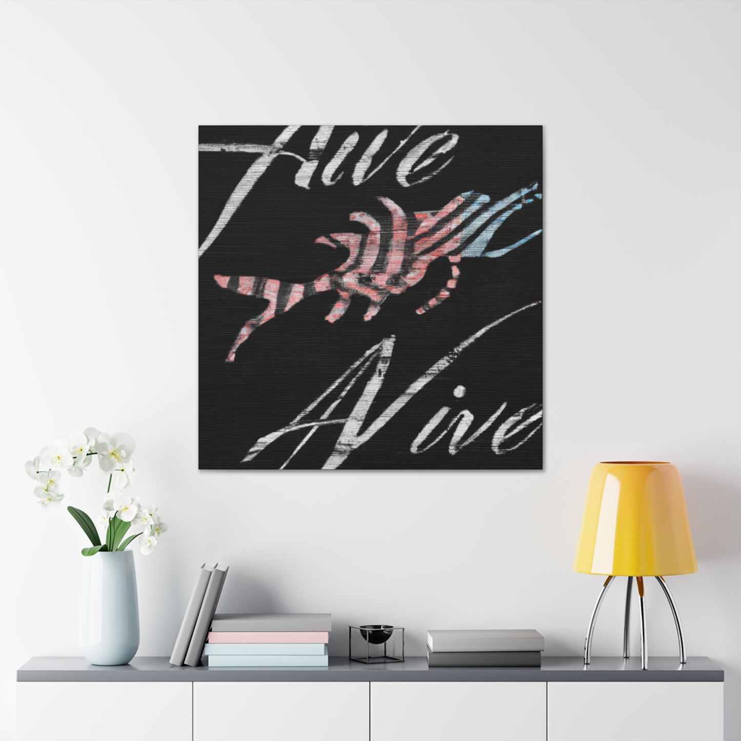 This is an impressive and bold digital art piece! The colors are vibrant and eye-catching, capturing the message "Never Taken Alive". The strong, black lettering pops out against the lighter background. This canvas is sure to turn heads and make a statement in your home! #nevertakenalive #digiatlart #canvas #statementpiece #homeinterior #décor #vibrant #bold #blacklettering #eye-catching #uniquepiece