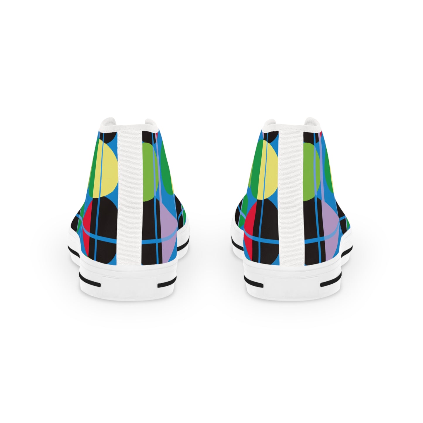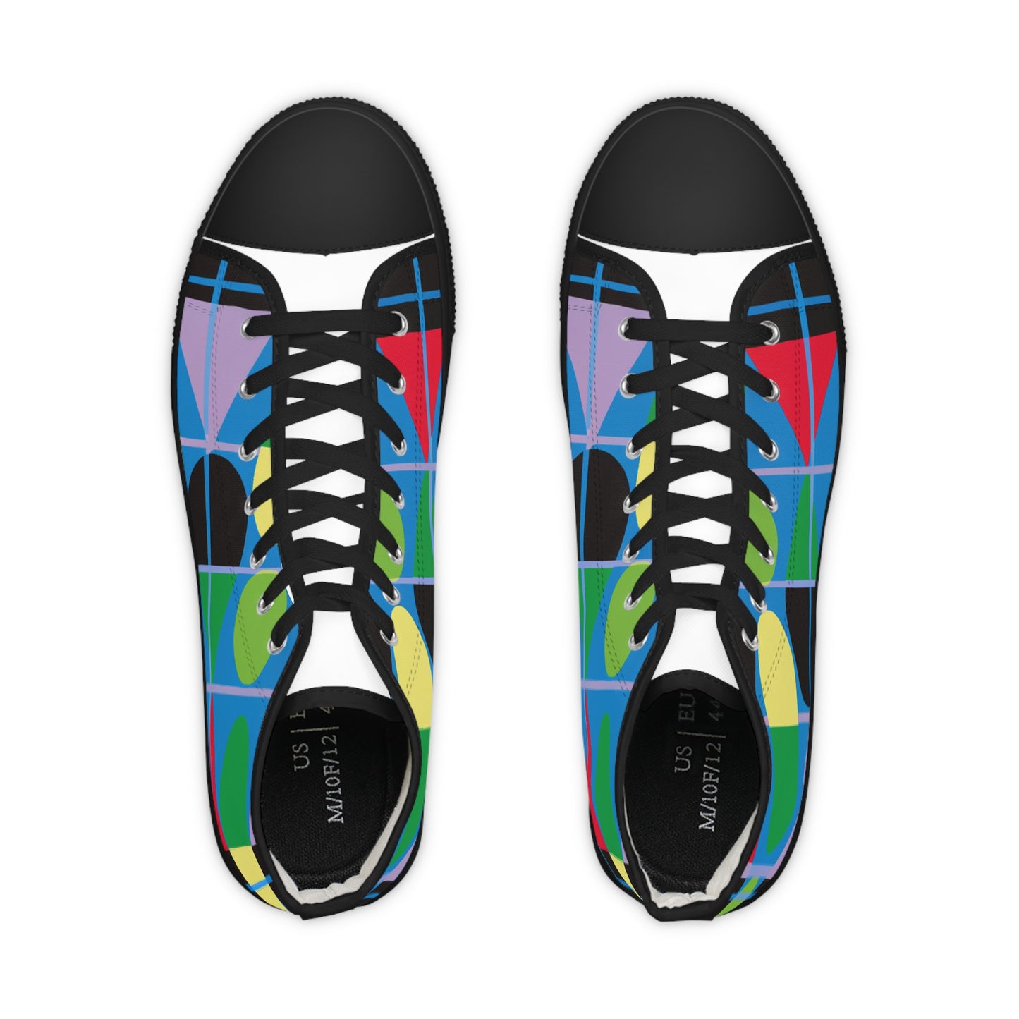 These creative Geometric Art High Tops feature vibrant colors that pop! The shock-absorbent material is designed to reduce fatigue and provide enhanced support. With a unique design and chic colors, these shoes will make you stand out from the crowd. They are perfect for adding a little life and personality to any outfit! #hightops #geometricart #vibrantcolors #creative #style #fashion #trendy #shoe #uniquedesign #enhancedsupport #reducingfatigue #shockabsorbent