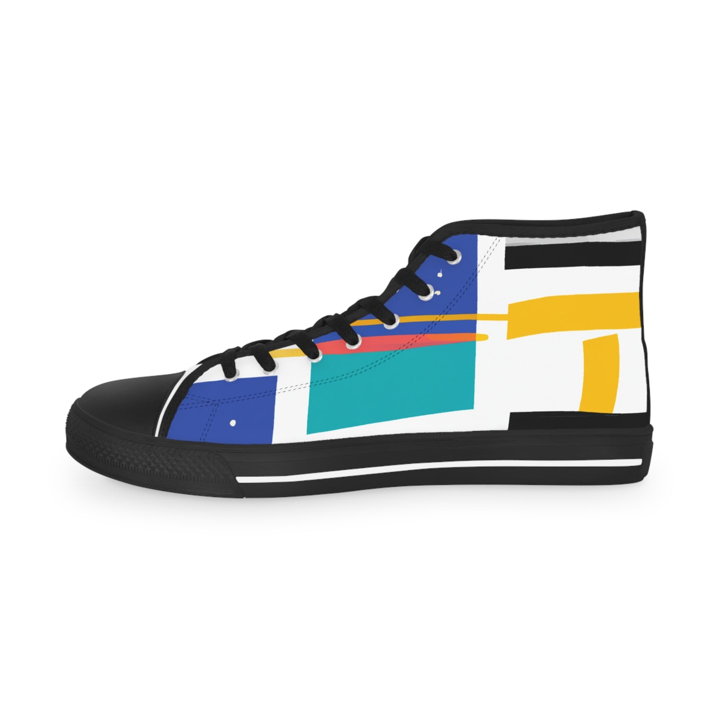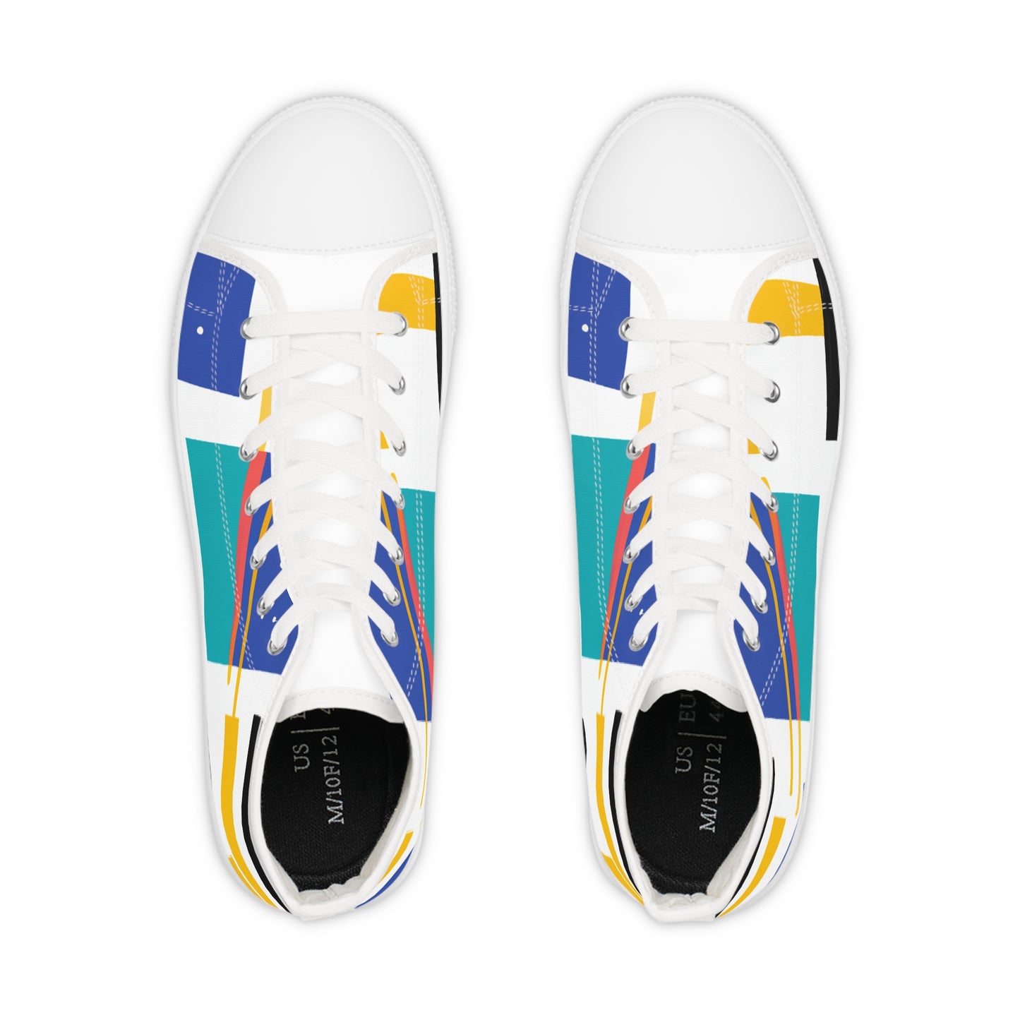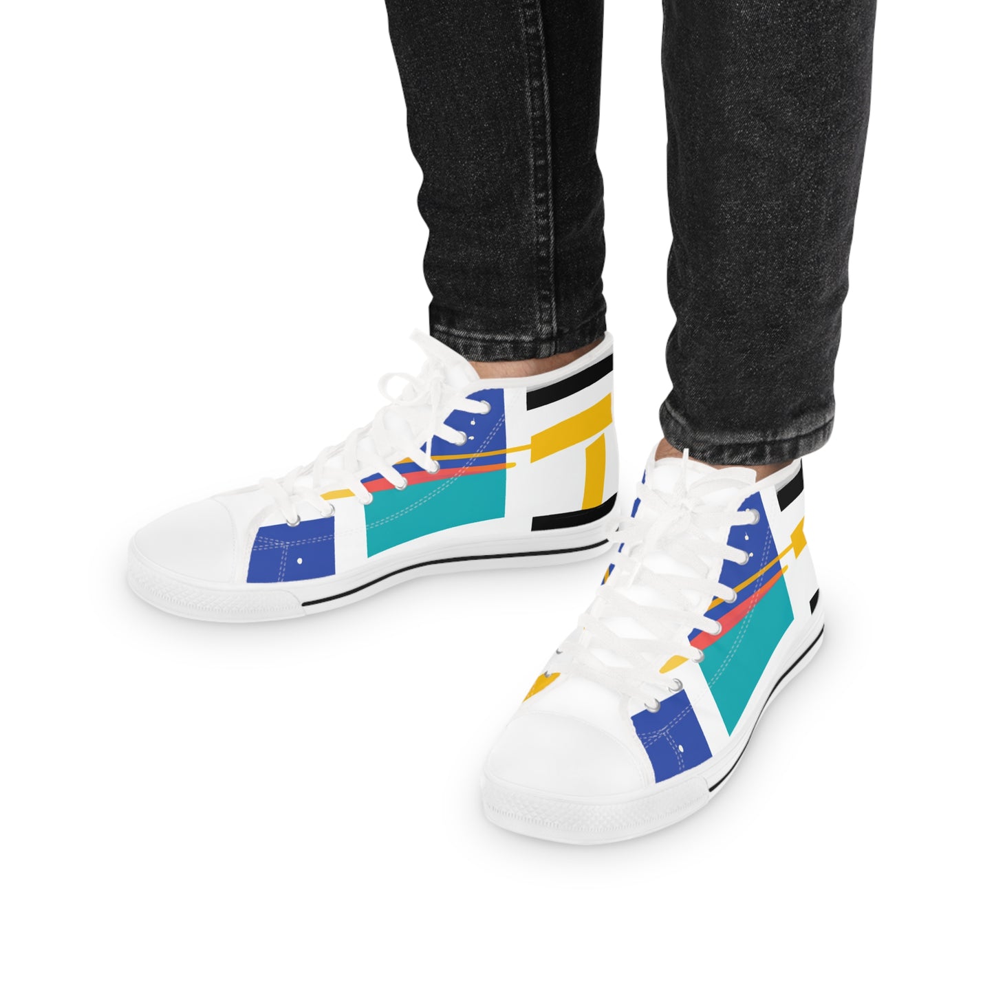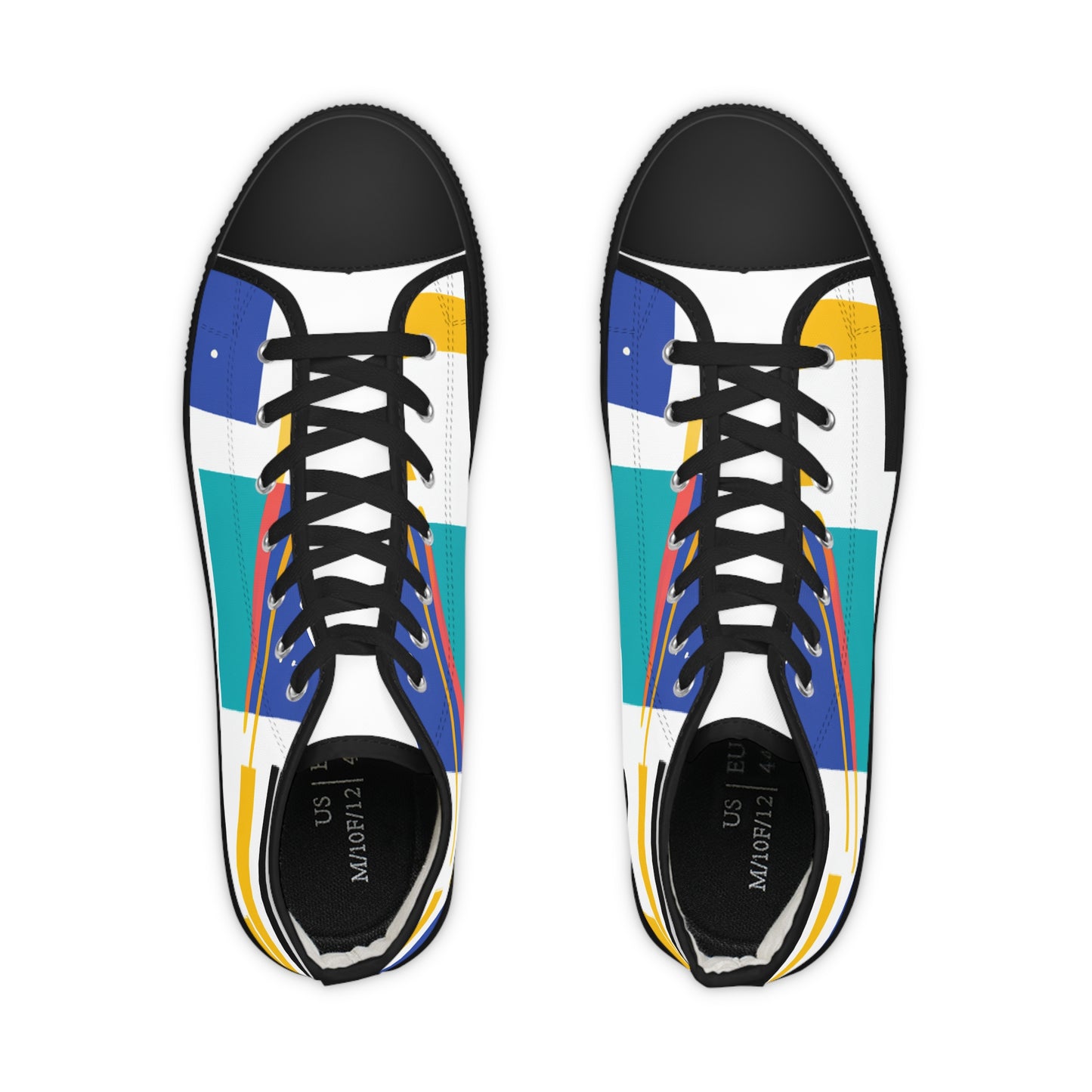 These vibrant high top shoes are truly a work of art! The geometric design with contrasting colors make a bold statement and will bring life to any outfit. The durable materials ensure long term wear-ability and the cushioned footbed makes them comfortable to wear. Step out in style and be the talk of the town! #geometricart #vibrantcolors #hightopshoes #fashionstatement #streetstyle #shoefashion #statementmaking #boldlooks #durablematerials #cushionedfootbed #longtermwearability