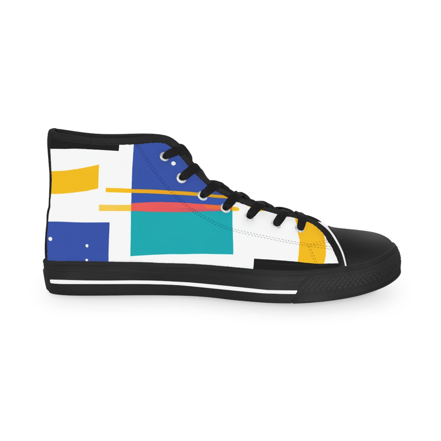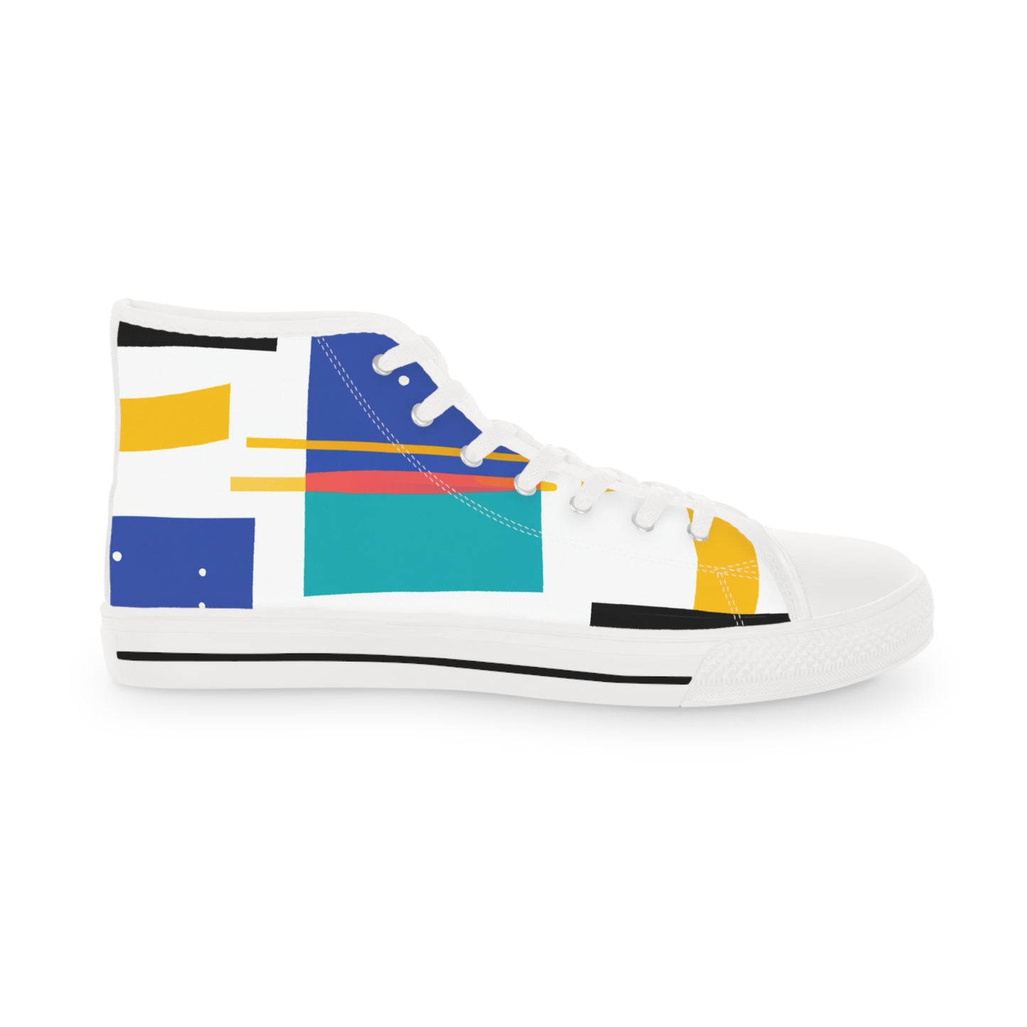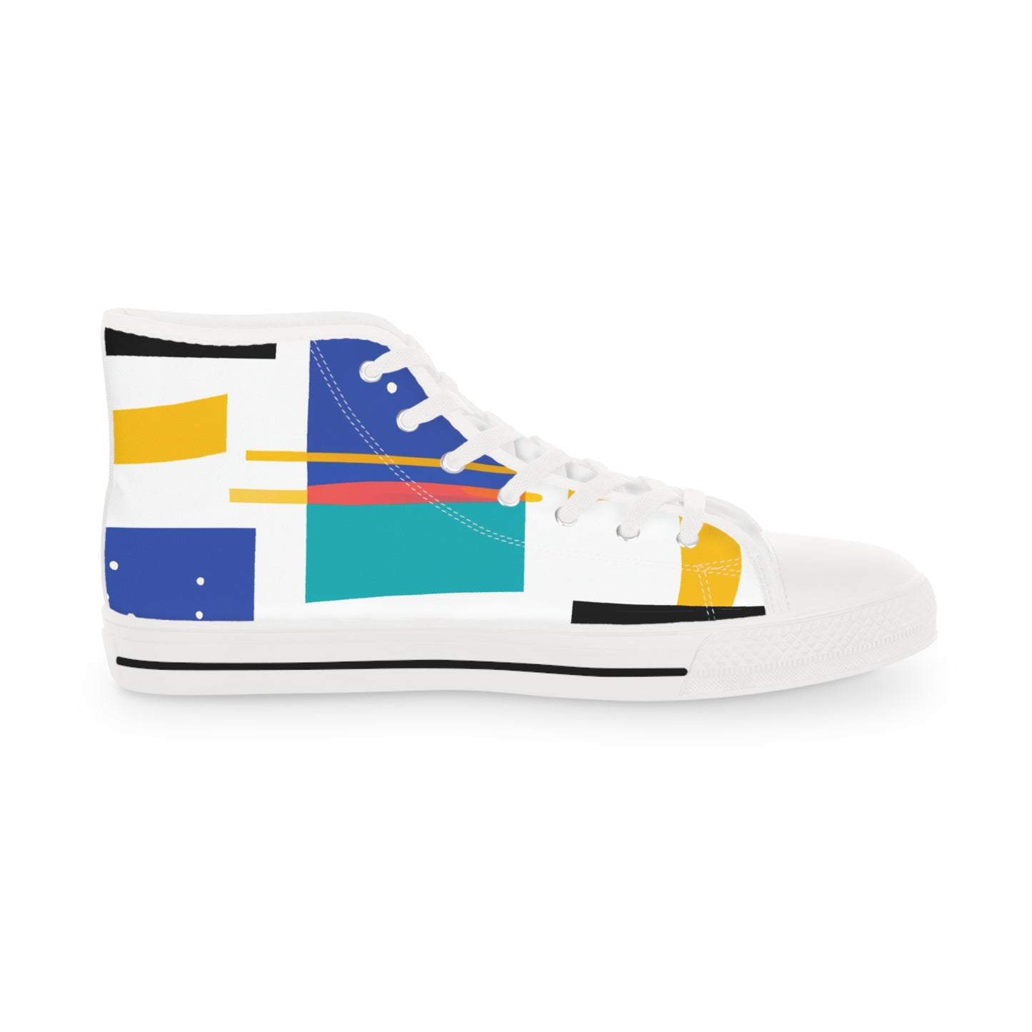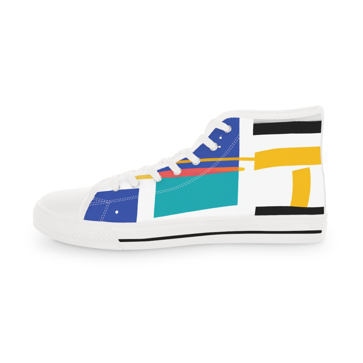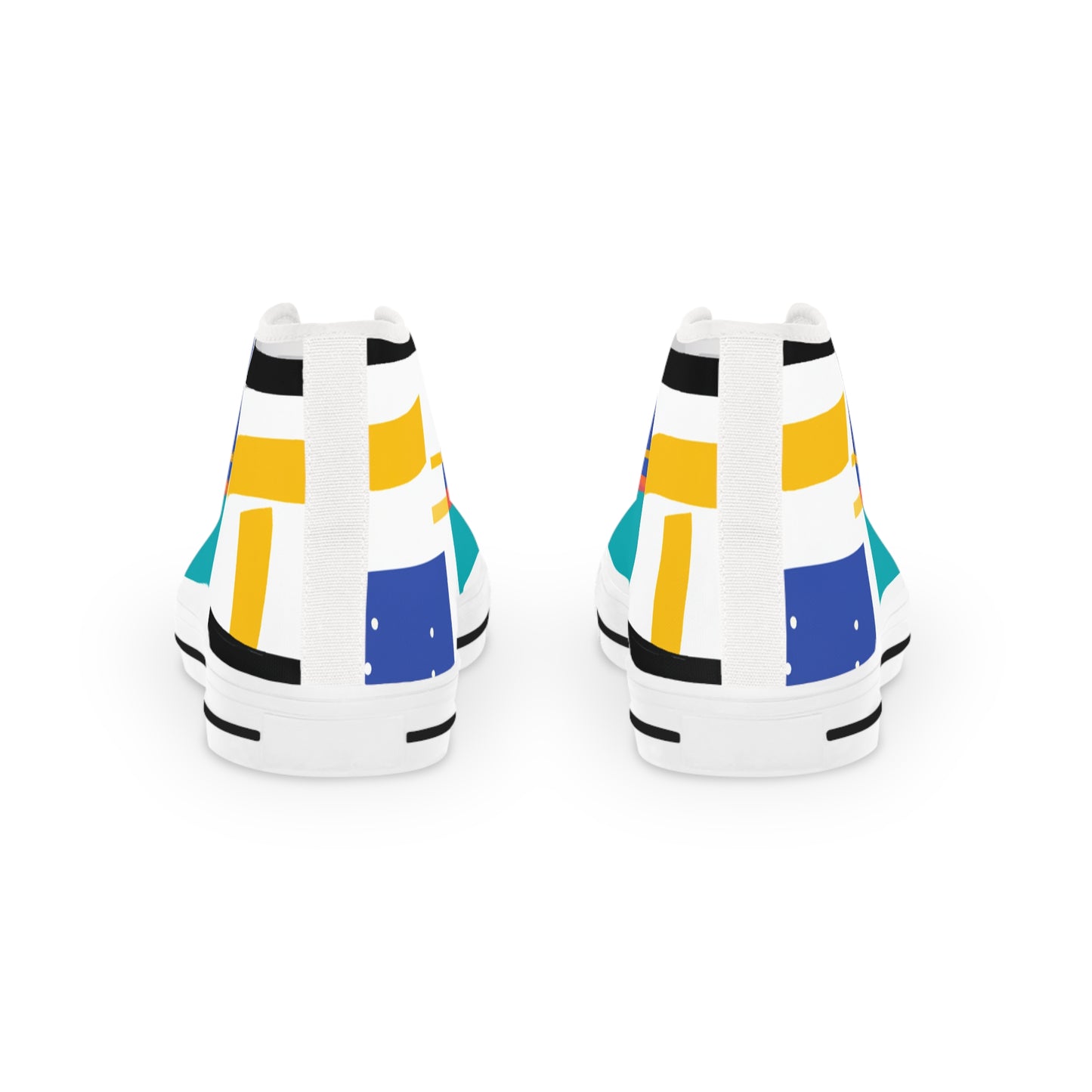 These vibrant high top shoes are truly a work of art! The geometric design with contrasting colors make a bold statement and will bring life to any outfit. The durable materials ensure long term wear-ability and the cushioned footbed makes them comfortable to wear. Step out in style and be the talk of the town! #geometricart #vibrantcolors #hightopshoes #fashionstatement #streetstyle #shoefashion #statementmaking #boldlooks #durablematerials #cushionedfootbed #longtermwearability