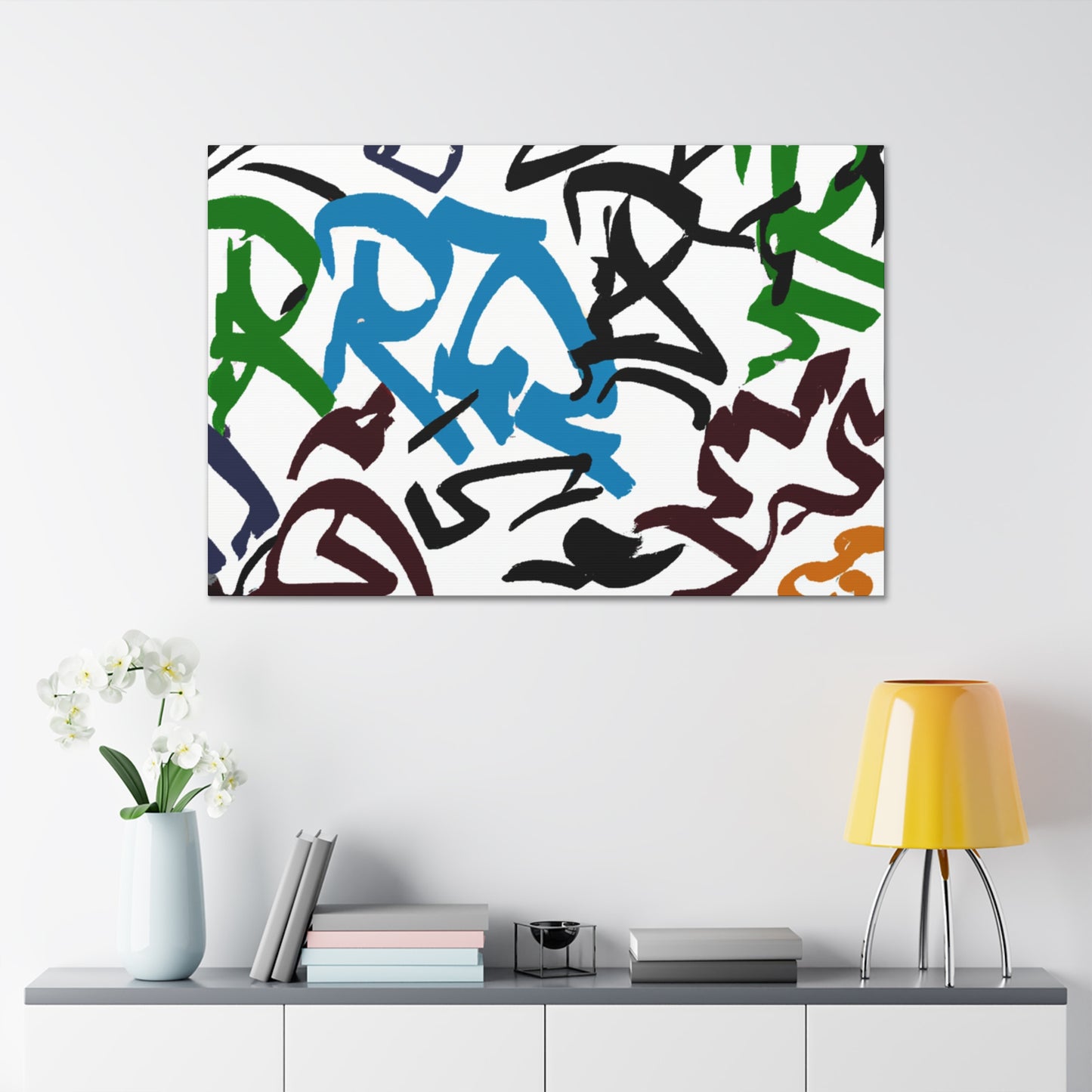 This canvas of Graffiti Art brings the vibrancy and creative energy of the street to your space. Painted on a high-quality, hand-stretched canvas, the vivid cool colors and contrasting textures offer an eye-catching piece of art. Whether on its own or paired with complementary pieces, this piece will surely provide an interesting visual element to any home. #art #canvas #graffiti #coolcolors #style #streetart #vibrant #interiordesign #avantgarde #creative #unique