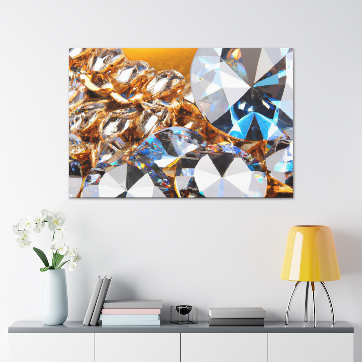 This handmade canvas of Gold and Diamonds is the ideal way to add a touch of glitz and glamor to your home. Whether it's a small accent piece or a center of attention, it will look great in any room of the house. The intricate detailing and high quality material used makes this canvas truly special. #homeaccessories #canvas #diamonds #gold #luxury #handmade #decor #interiordesign #sculpture #artwork #design