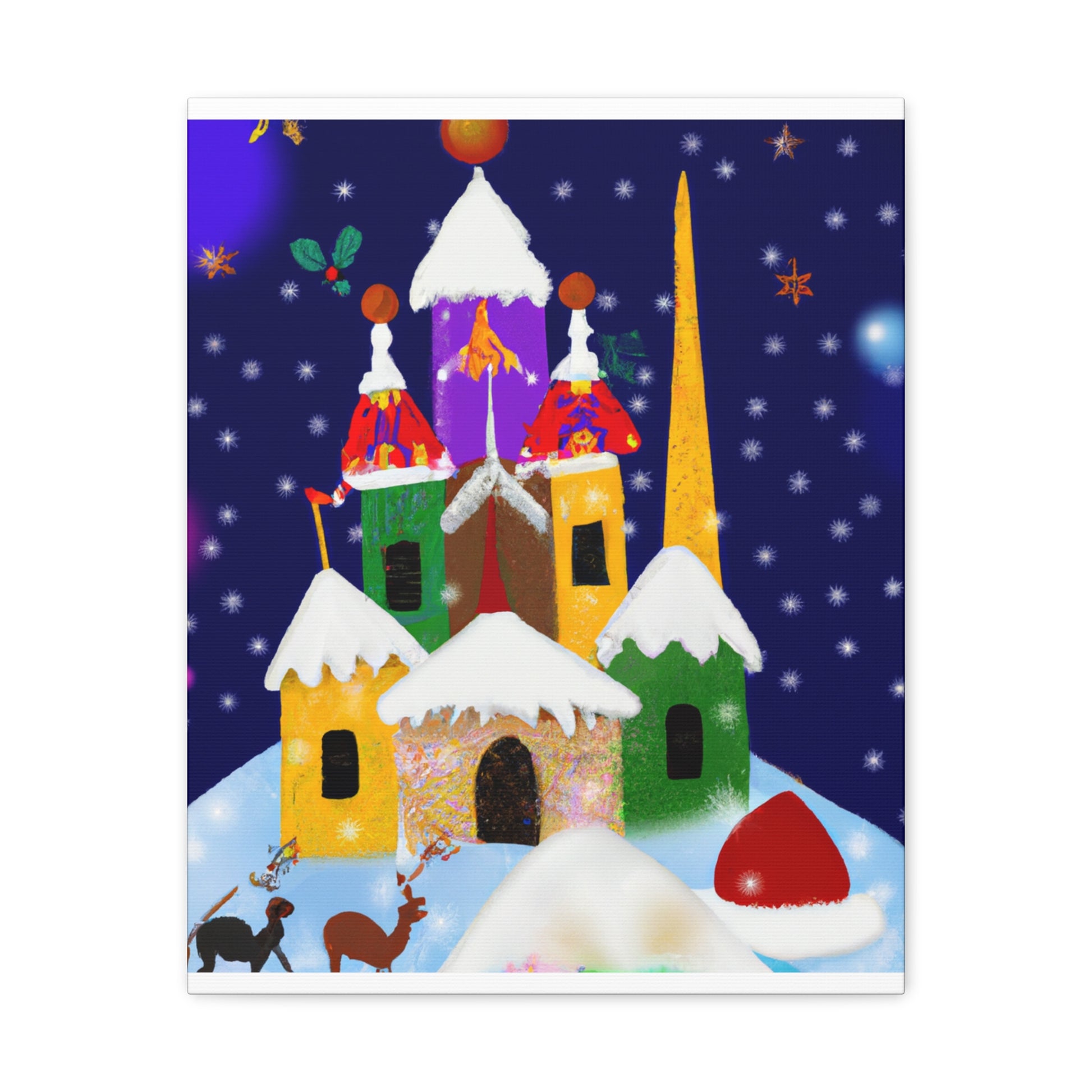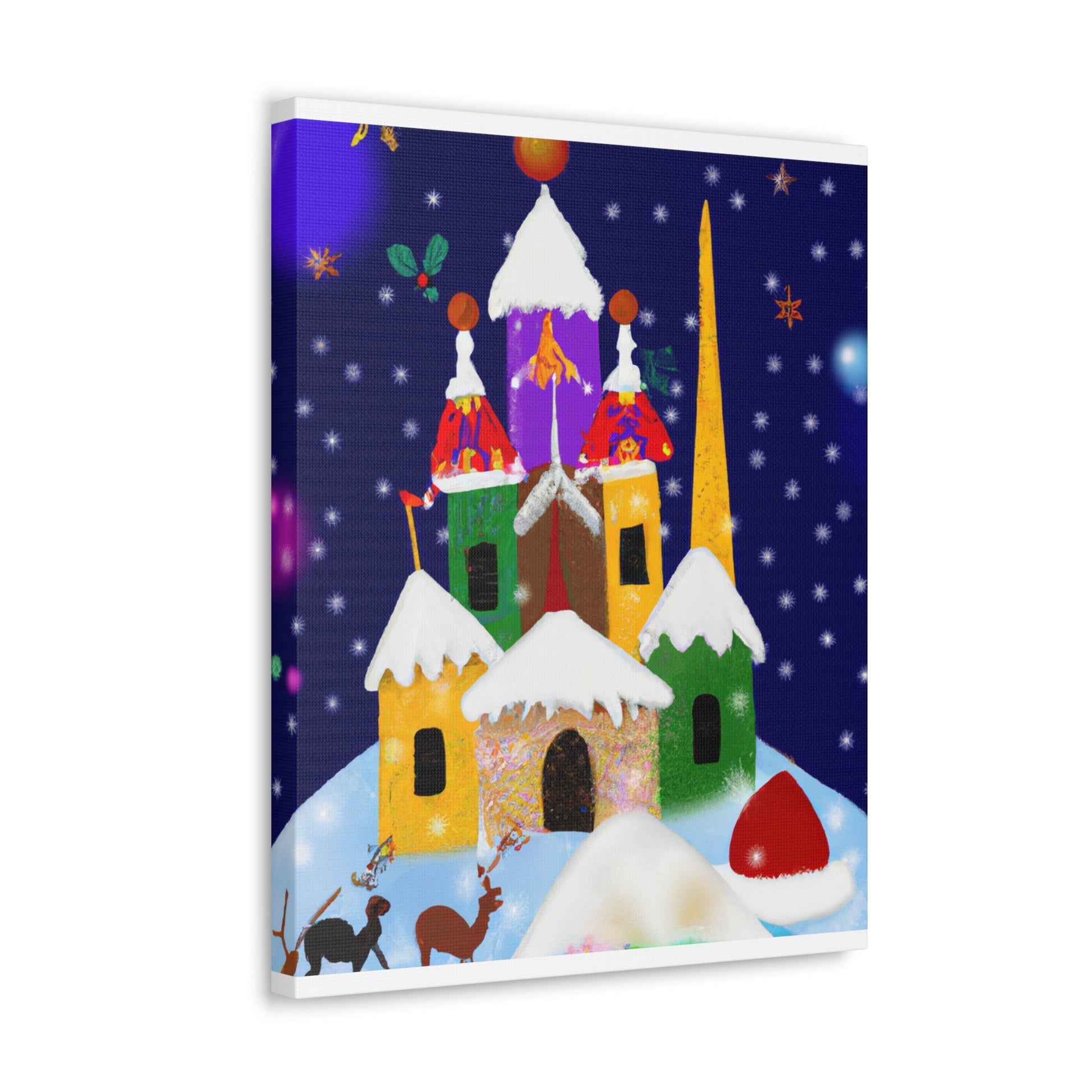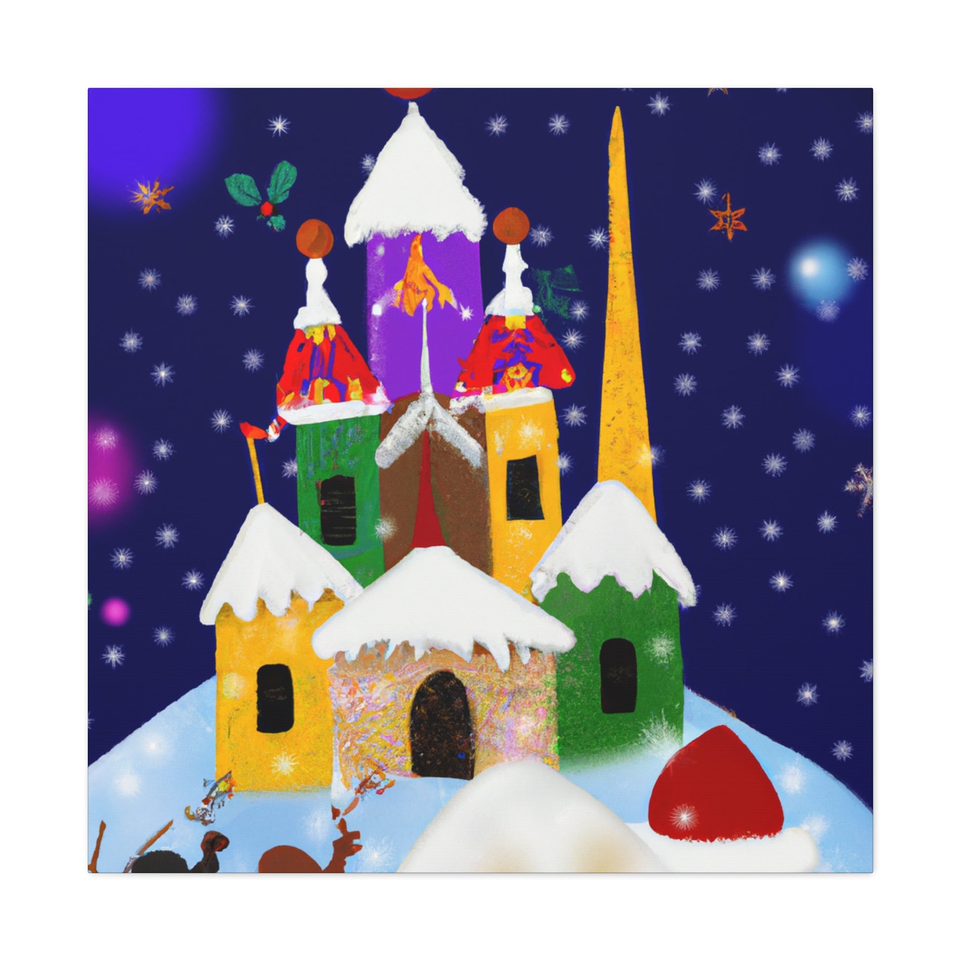 This Enchanting Christmas Scenes Digital Art canvas features bright colors and gorgeous detailed drawings to give your home a cozy feel this holiday season. Its high quality printing ensures excellent clarity and vibrancy, adding a cheerful touch to your living space. A great choice for those looking to add a festive atmosphere to their decor. Hang it in your home or gifting it to a special someone! #holidayspirit #homegoods #festivedecor #christmasart #xmasdecor #digitalart #canvasprint #enchantedchristmas #cozyhome #festivefeelings #holidayscenes