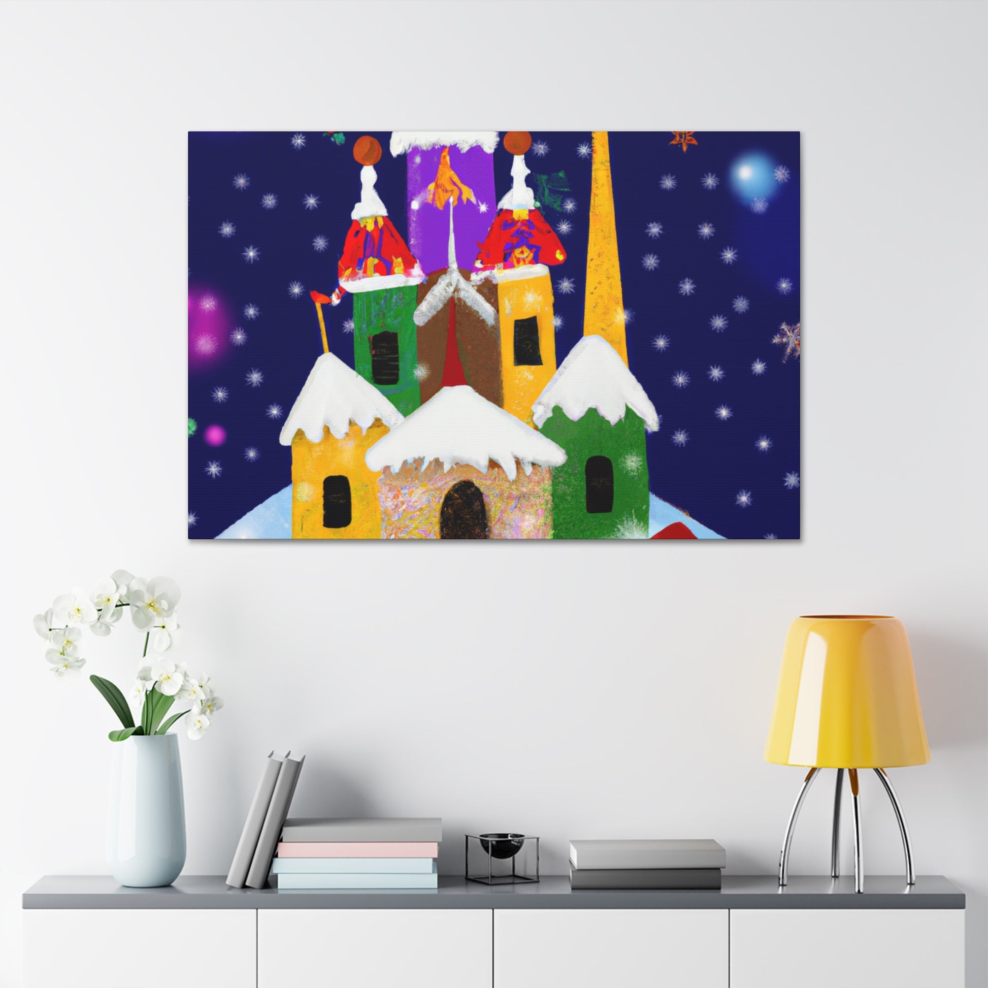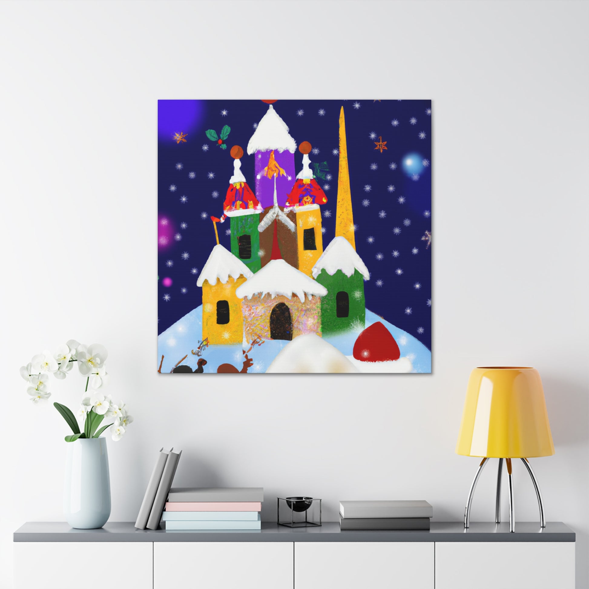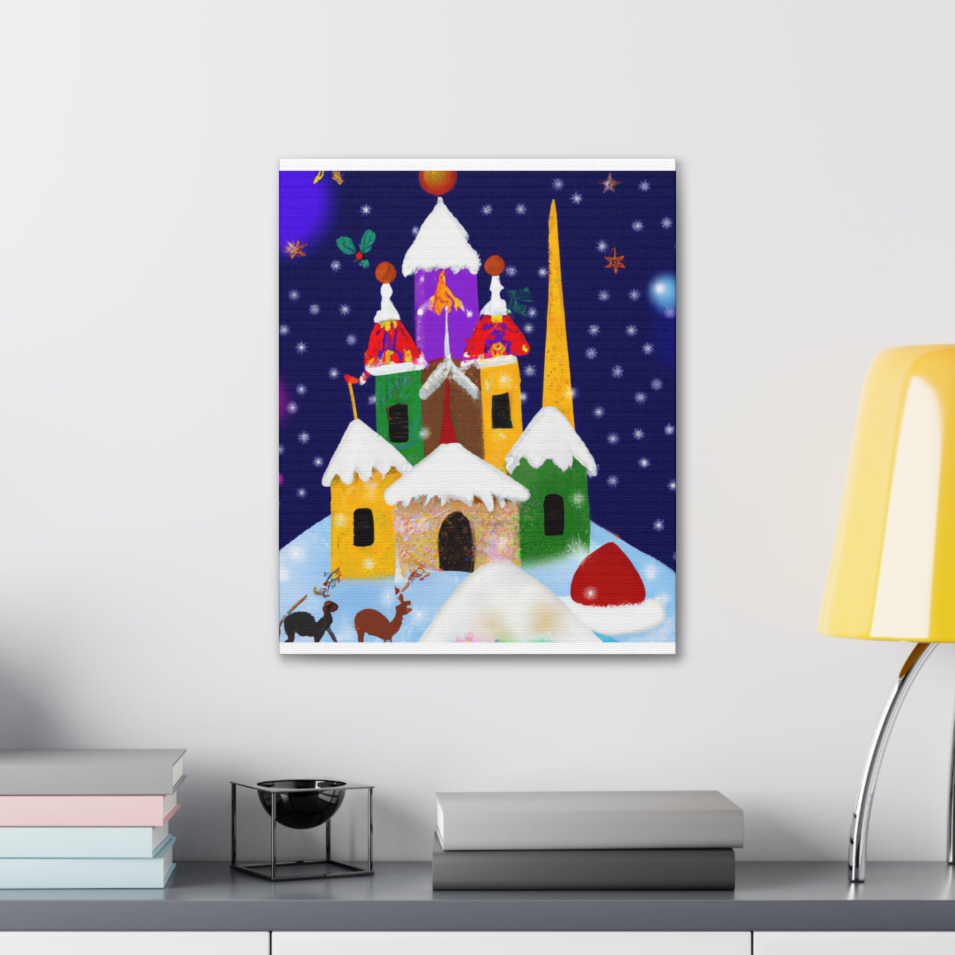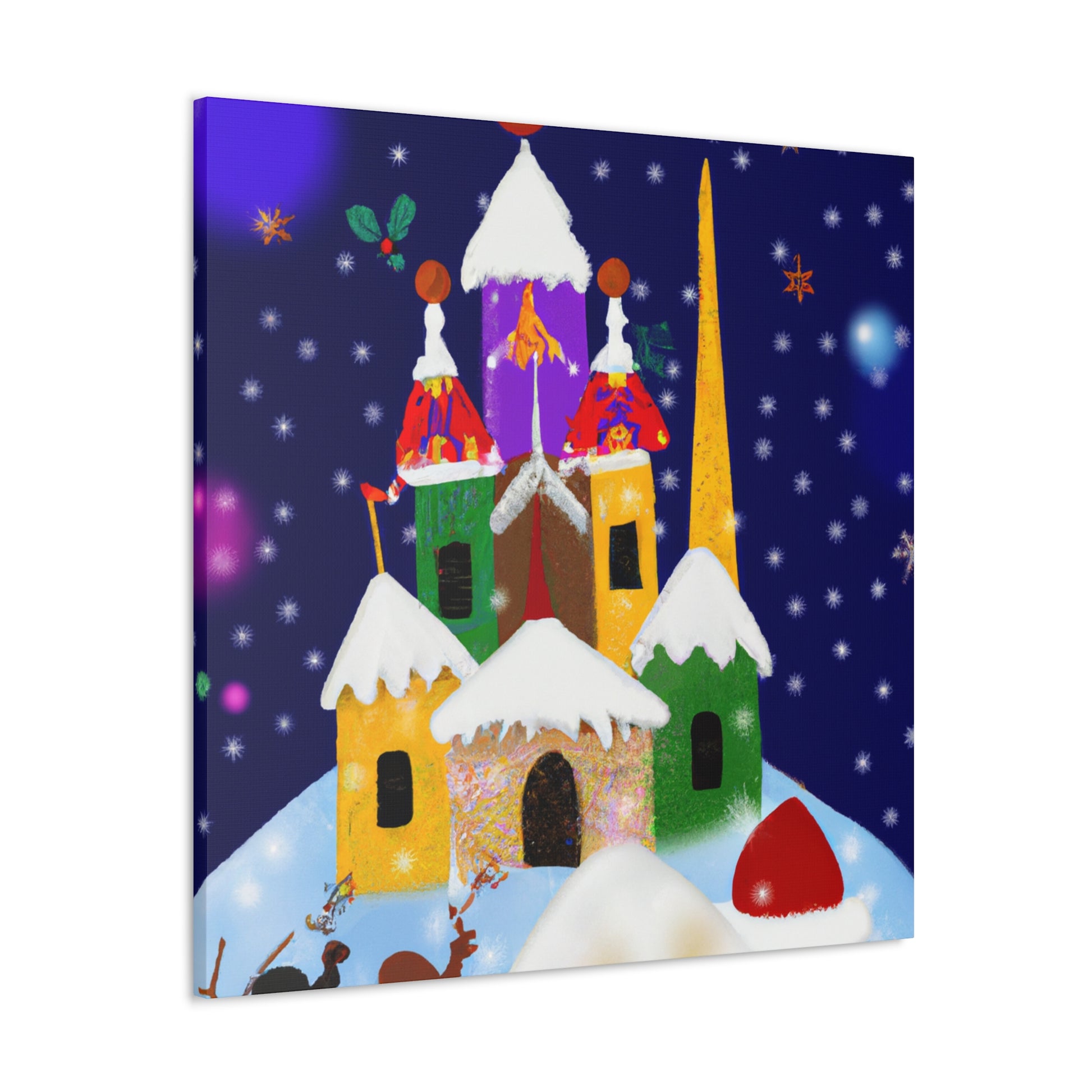 This Enchanting Christmas Scenes Digital Art canvas features bright colors and gorgeous detailed drawings to give your home a cozy feel this holiday season. Its high quality printing ensures excellent clarity and vibrancy, adding a cheerful touch to your living space. A great choice for those looking to add a festive atmosphere to their decor. Hang it in your home or gifting it to a special someone! #holidayspirit #homegoods #festivedecor #christmasart #xmasdecor #digitalart #canvasprint #enchantedchristmas #cozyhome #festivefeelings #holidayscenes