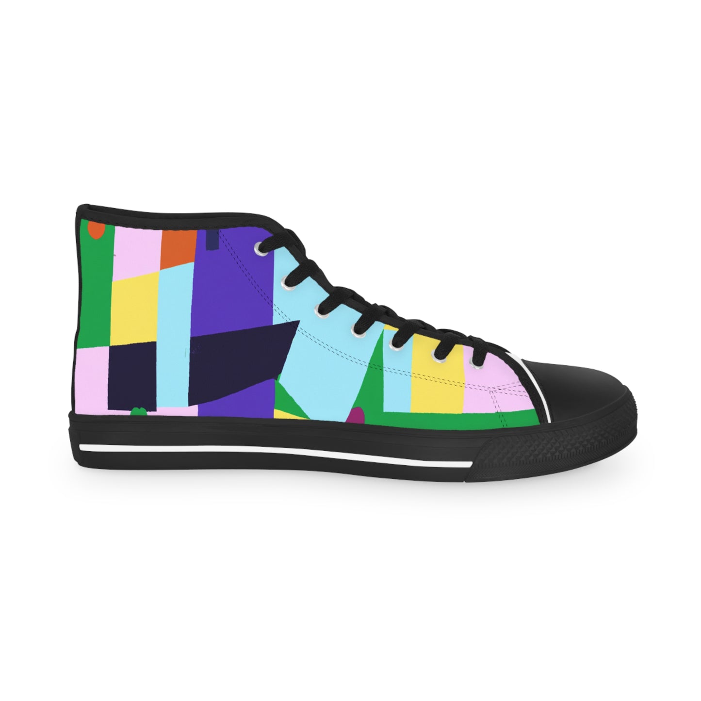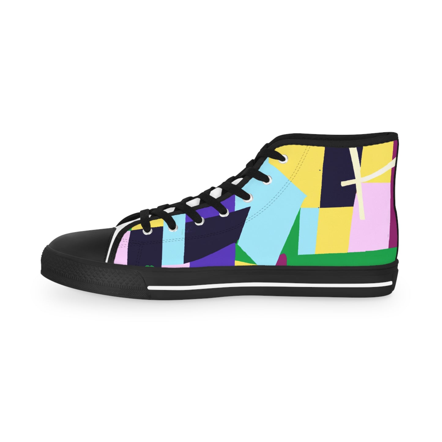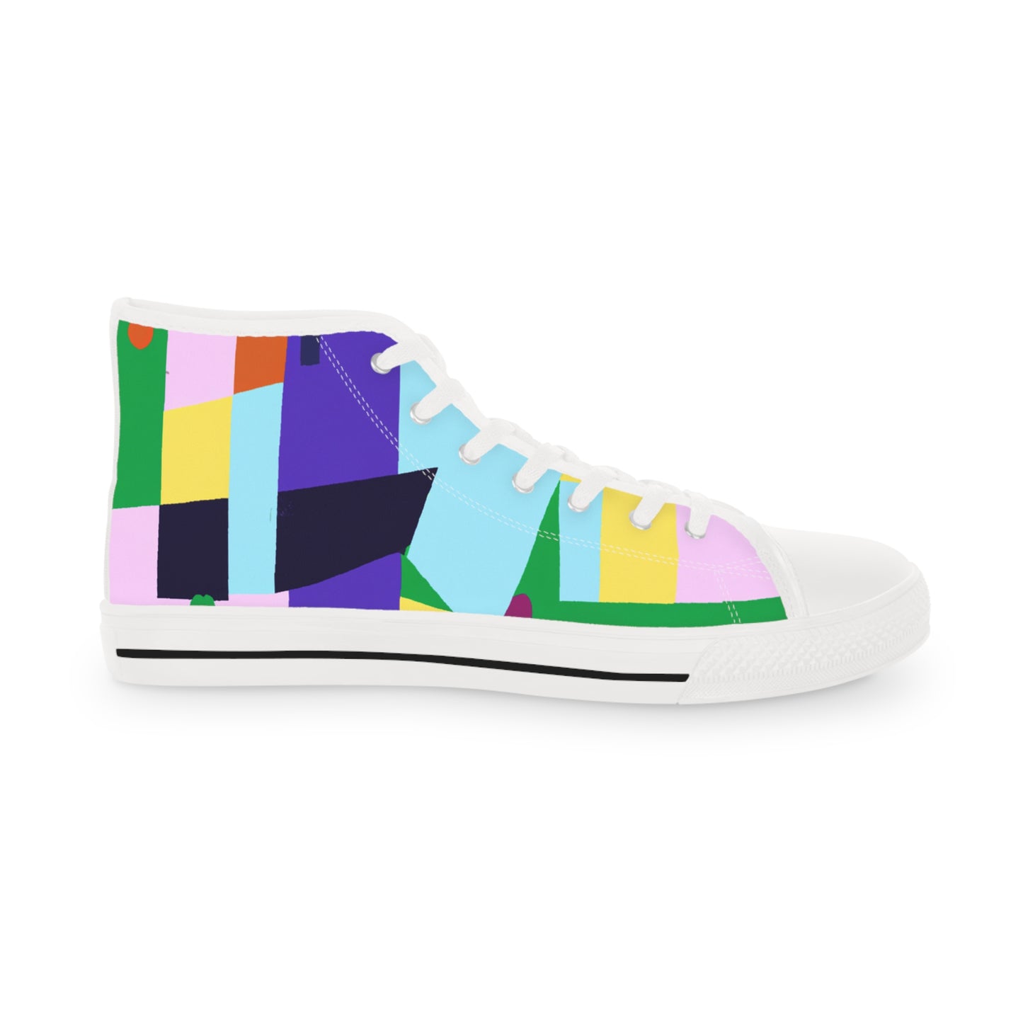 Tactile and vibrant, these geometric-art high top shoes are unlike any other. Combining eye-catching artistic elements with sleek comfort features, they're sure to keep you agile and in-style for hours. The bright hues will make a statement—and the sturdy rubber sole ensures that each step is secure. Bold, beautiful and comfortable - you won't want to take them off! #HighTops #Shoes #GeometricArt #Scheme #ColourPop #Vibrant #Aesthetic #StreetStyle #Comfort #BrightColors #SoleSecurity