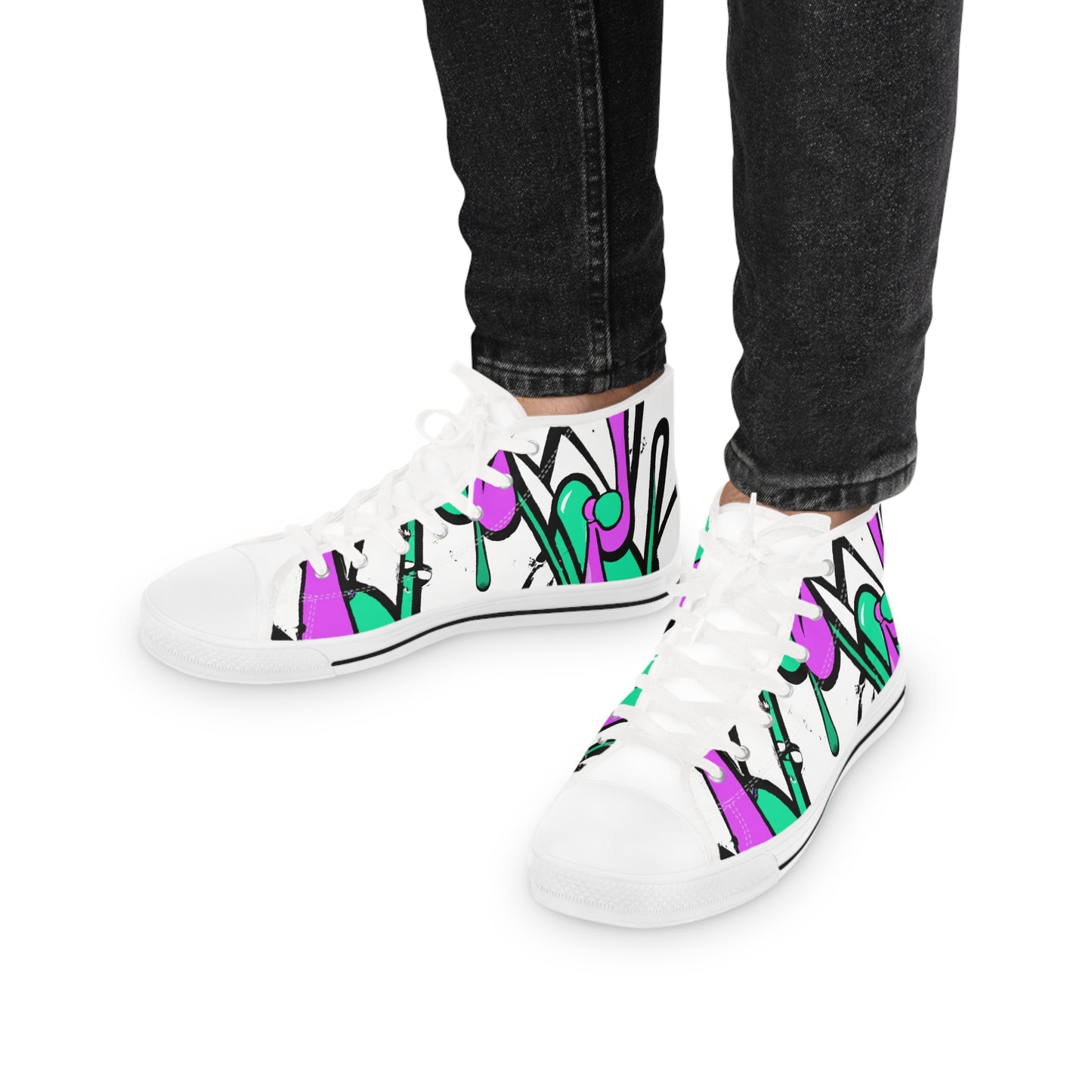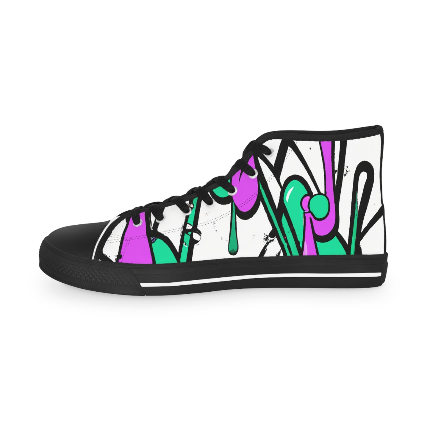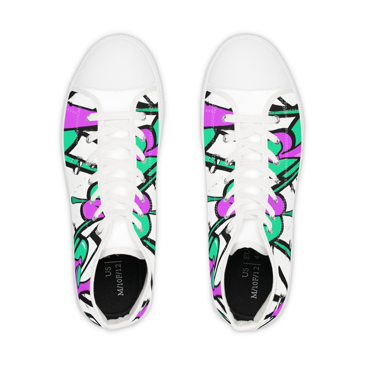 These urban graffiti-style, high-top shoes definitely stand out in the crowd! The bold colors will brighten up any outfit. With a combination of durable canvas and synthetic materials, these shoes are lightweight and comfortable, perfect for all-day wear. The full ankle support ensures long-lasting comfort, and the top buckles add a unique and stylish flair. Shine your way through the day with these special shoes! #urbanstyle #hiphopfashion #hightops #streetstyle #graffitiart #uniquefashion #urbanwear #trendyclothes #fashionstatement #onestopshop #streetlovers