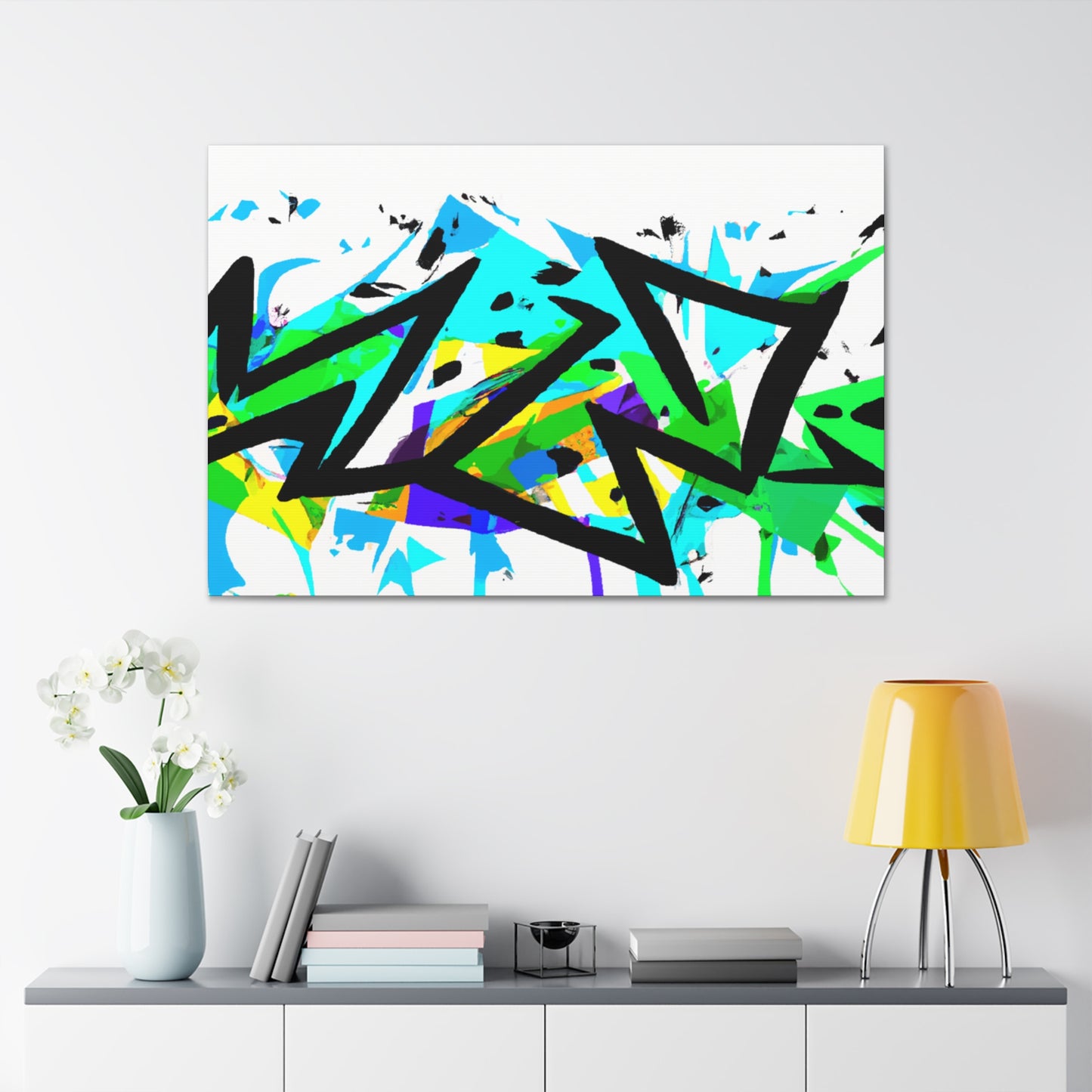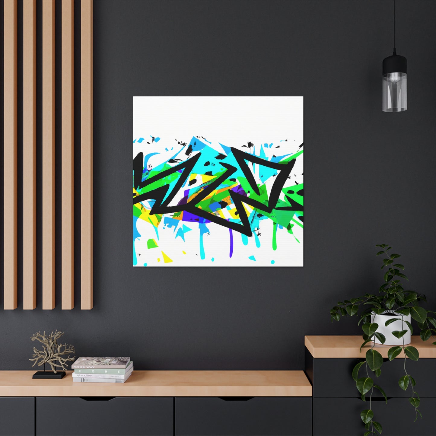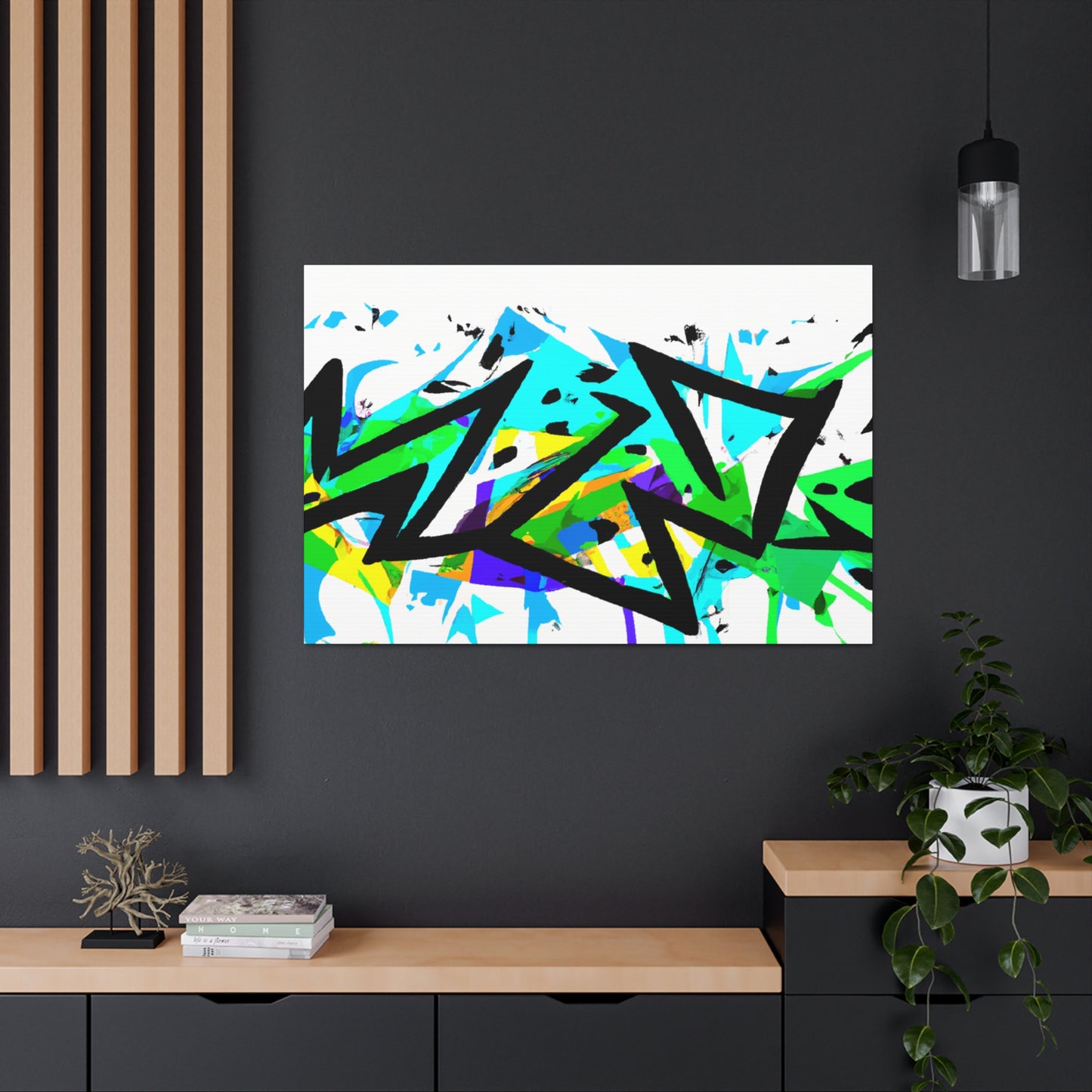 This stunning graffiti art canvas will fit in any modern décor style. Unique and creative, the wall art is painted with cool colors and will brighten up your home's atmosphere. The canvas is hand-painted on high quality materials and will last for years. Add vibrancy and color to your space with this eye-catching art piece! #graffiti #art #canvas #coolcolors #vibrant #handpainted #painting #home #wallart #décor #modernart