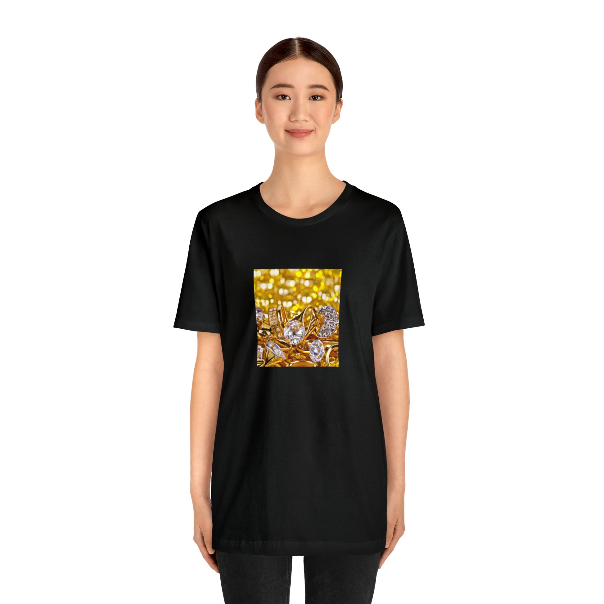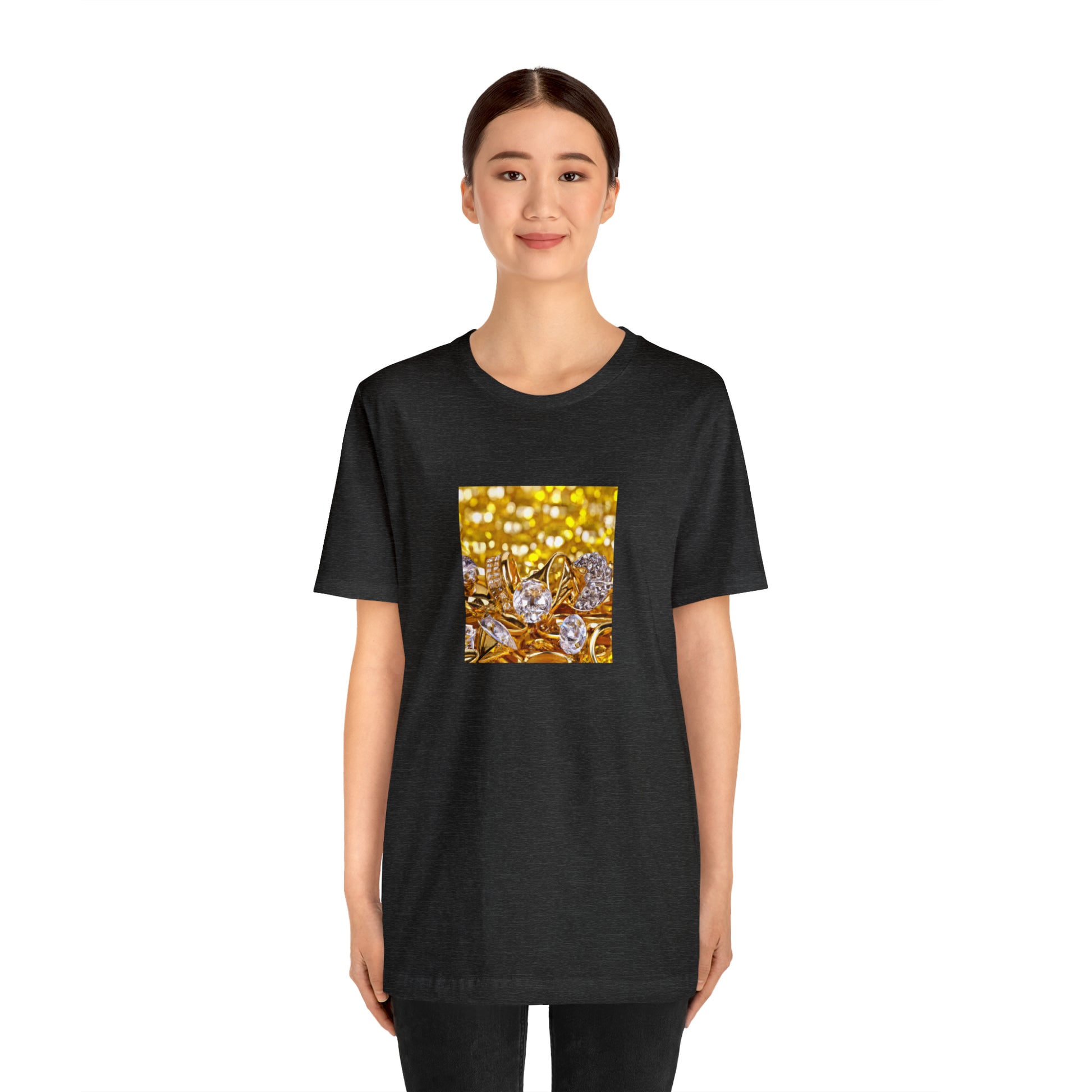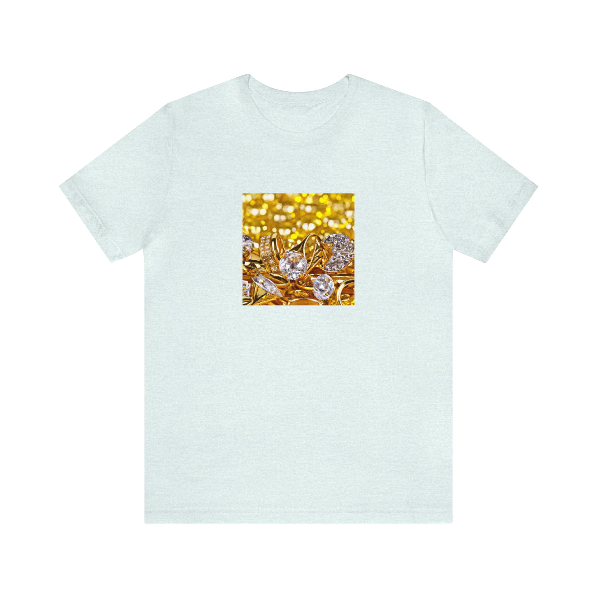 This ultra chic streetwear tee featuring gold and diamond designs is sure to make a statement. Crafted from luxurious and lightweight fabric, this fitted tee will keep you stylish and comfortable all day long. The beautiful abstract diamond and gold pattern pays homage to the classic streetwear design. Perfect for any everyday modern look. #streetwear #tshirt #tee #gold #diamond #fashion #style #luxury #outfit #clothing #comfort #streetstyle