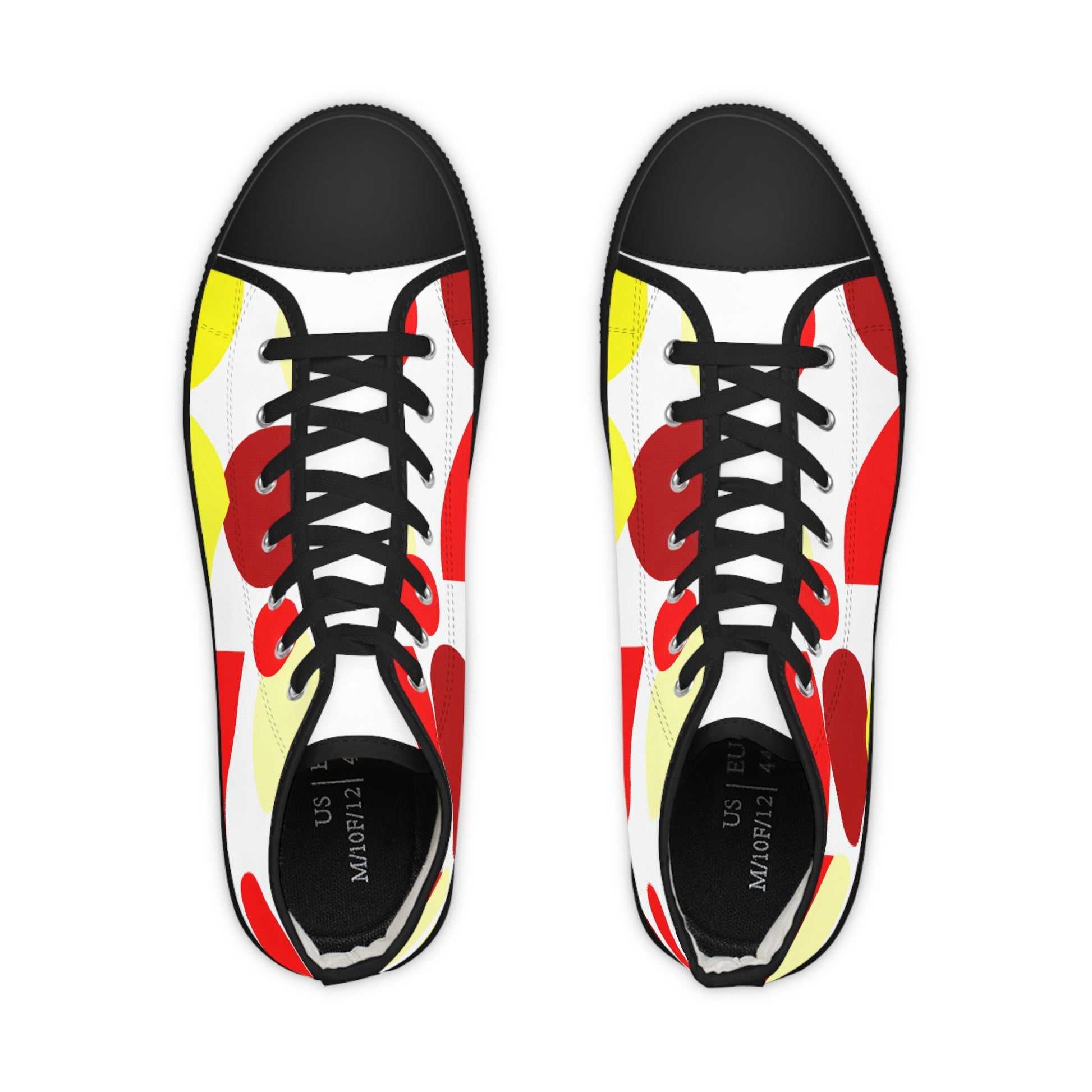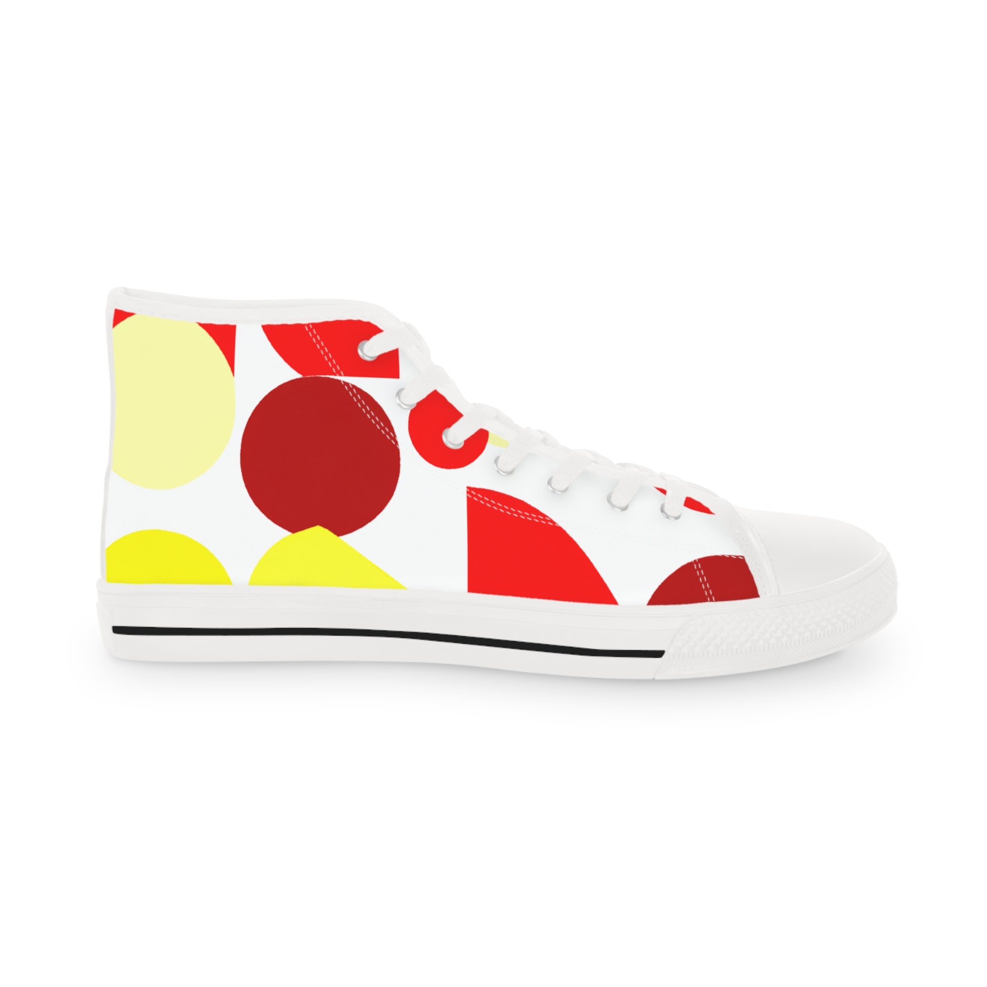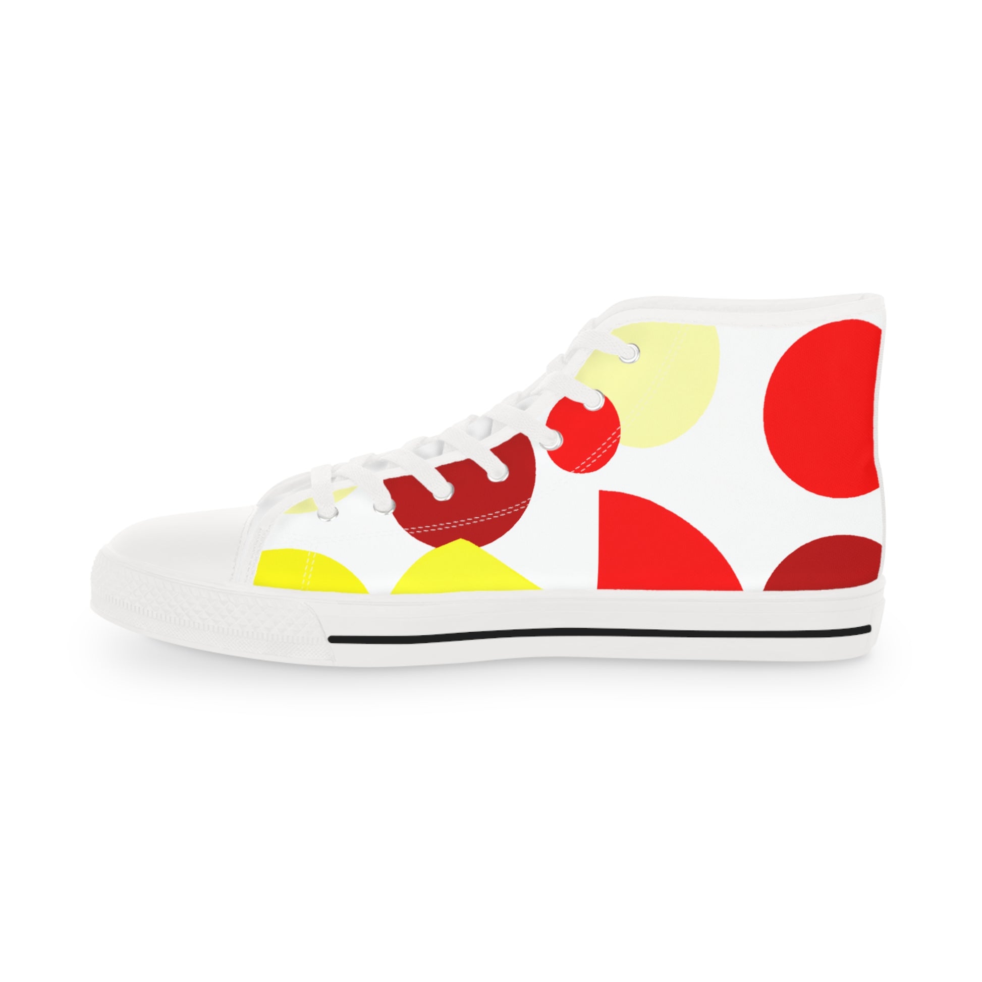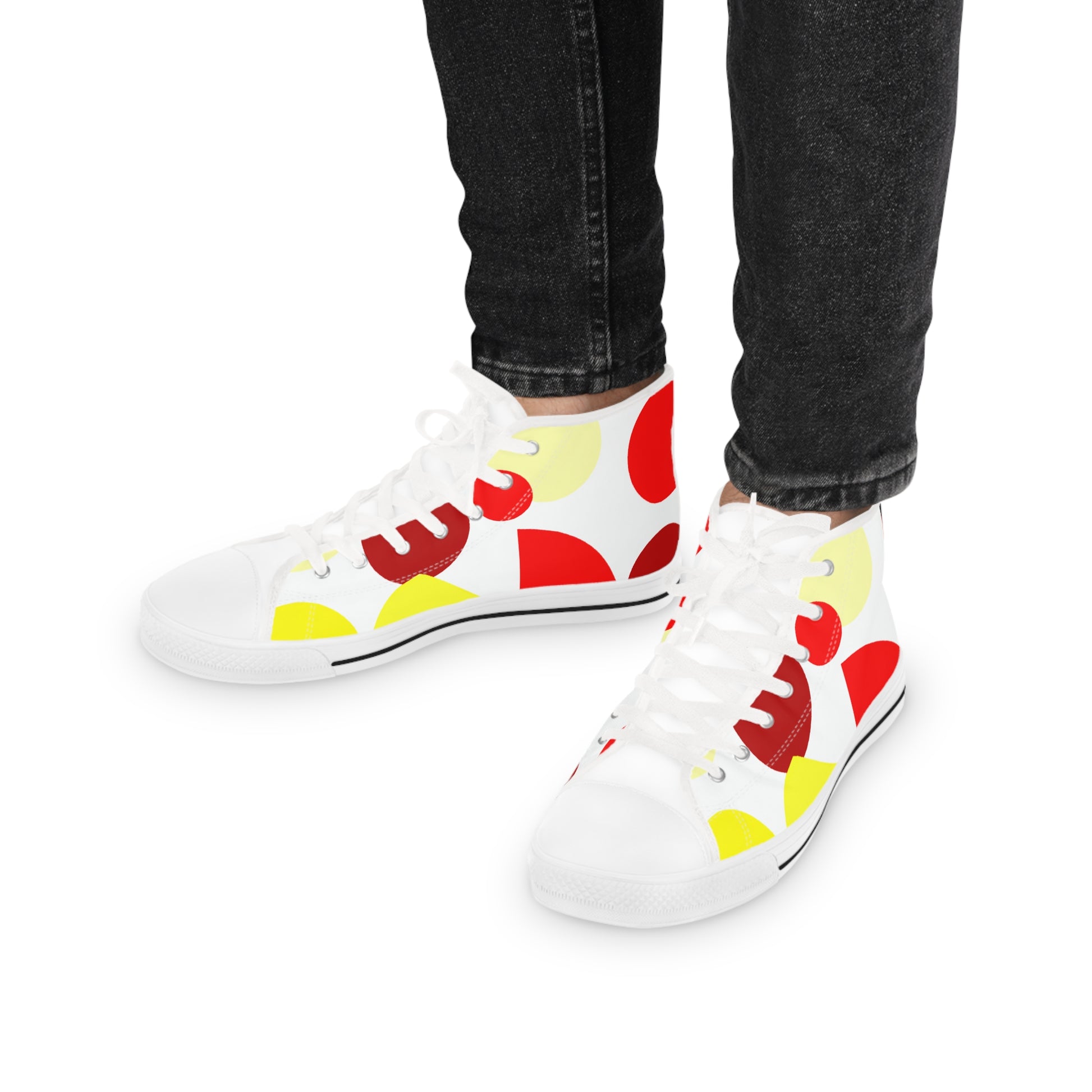 These high-top Geometric Art shoes will make a bold statement! With vibrant, playful colors and unique geometric shapes, these shoes offer a fun twist on the high-top sneaker. The top of the shoe features adjustable laces for the perfect fit, and the rubber outsoles provide a stable, comfortable ride. Get ready to draw stares and compliments with these stylish, head-turning shoes. #style #vibrant #geometric #fun #art #unique #colors #shoes #top #highTops #comfort
