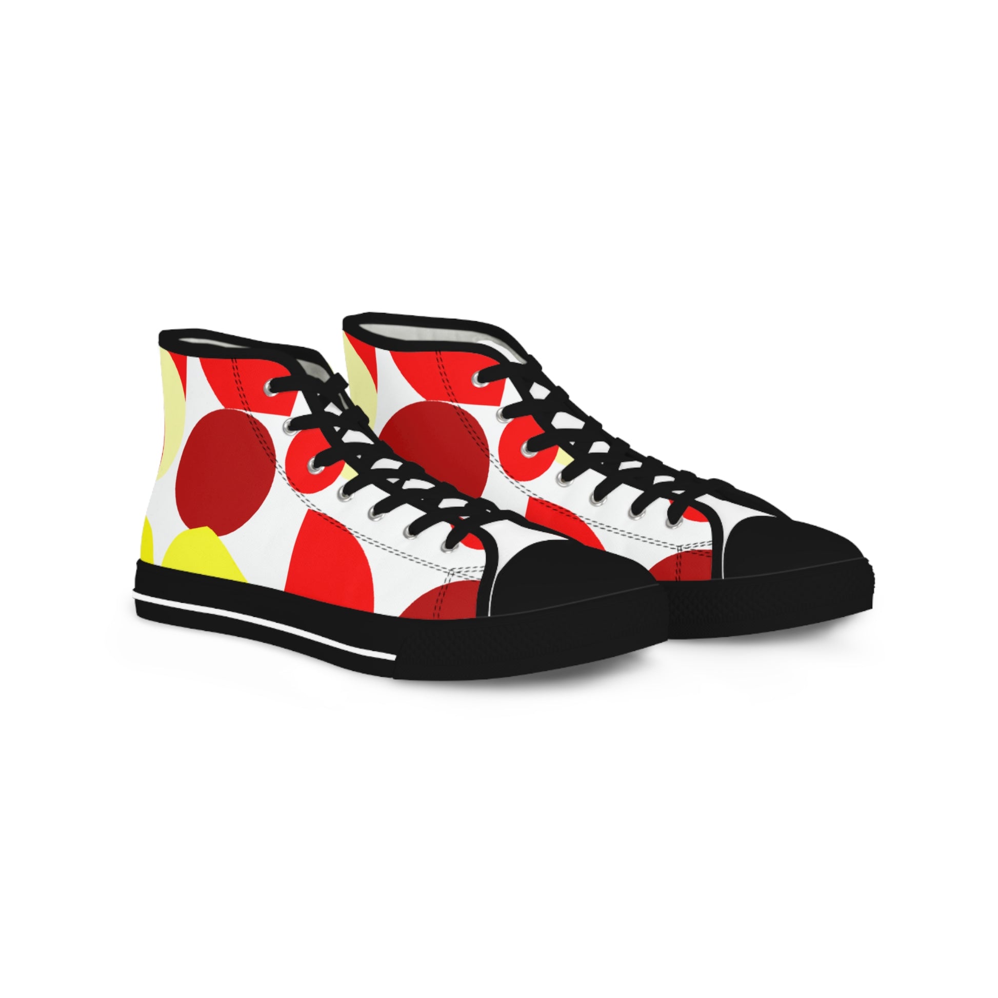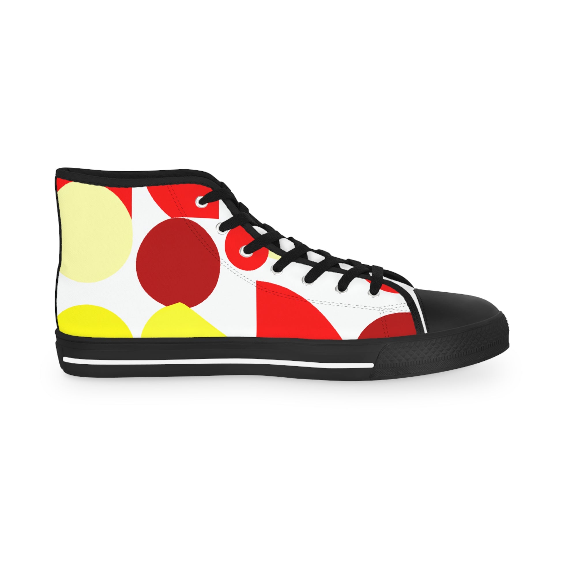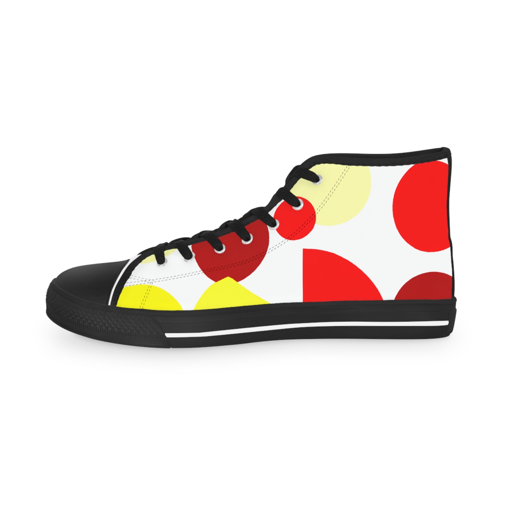 These high-top Geometric Art shoes will make a bold statement! With vibrant, playful colors and unique geometric shapes, these shoes offer a fun twist on the high-top sneaker. The top of the shoe features adjustable laces for the perfect fit, and the rubber outsoles provide a stable, comfortable ride. Get ready to draw stares and compliments with these stylish, head-turning shoes. #style #vibrant #geometric #fun #art #unique #colors #shoes #top #highTops #comfort