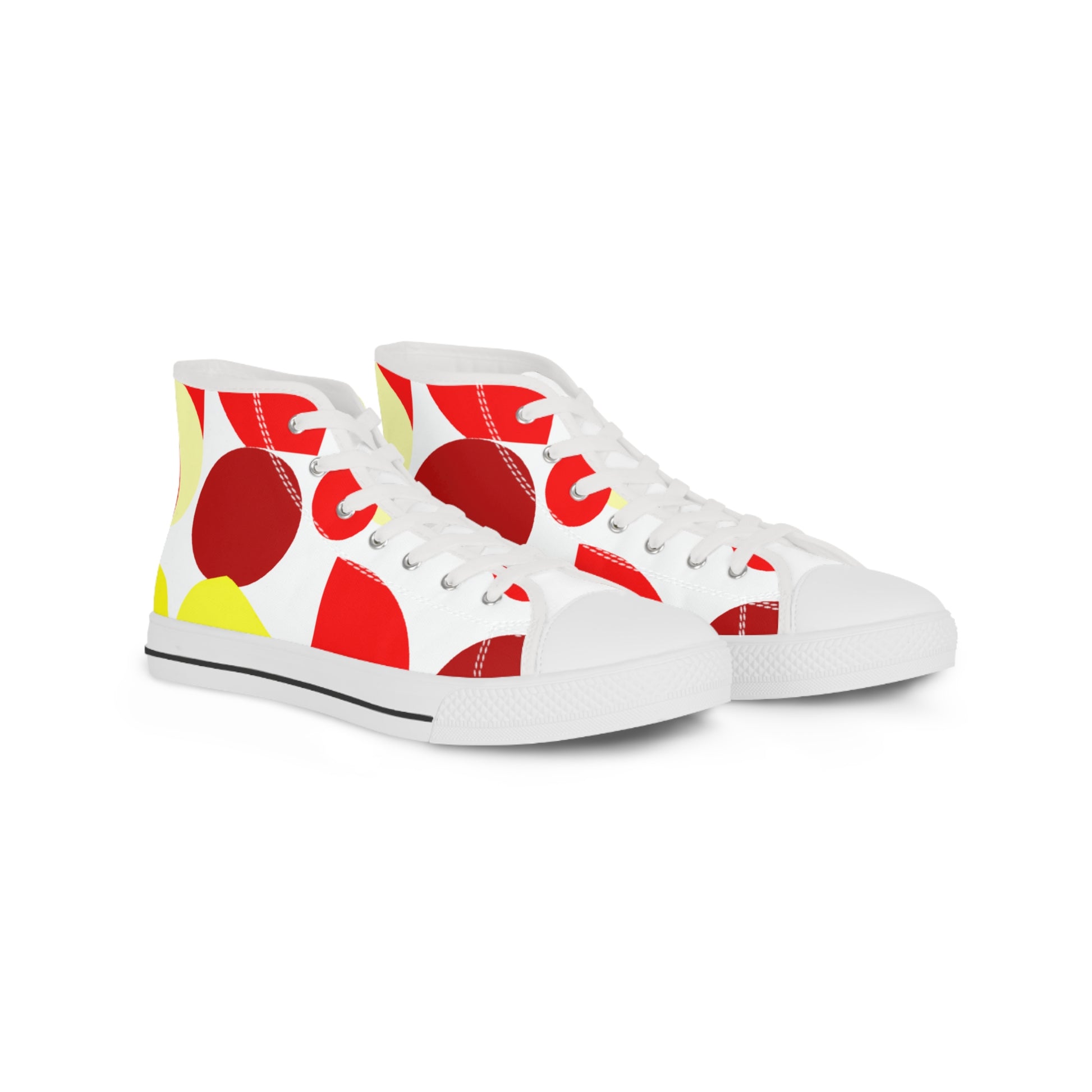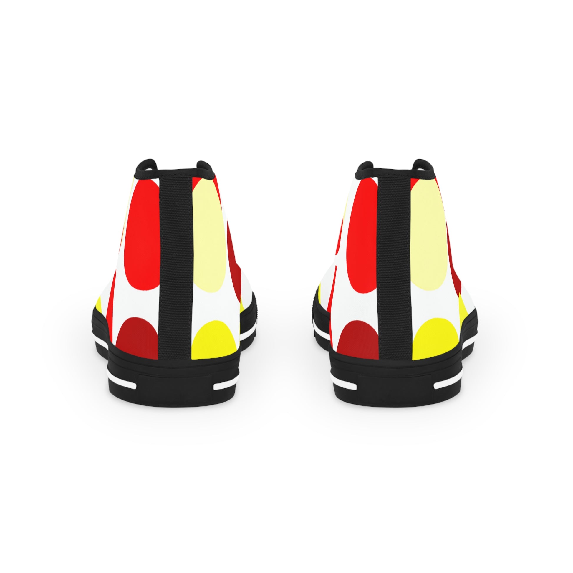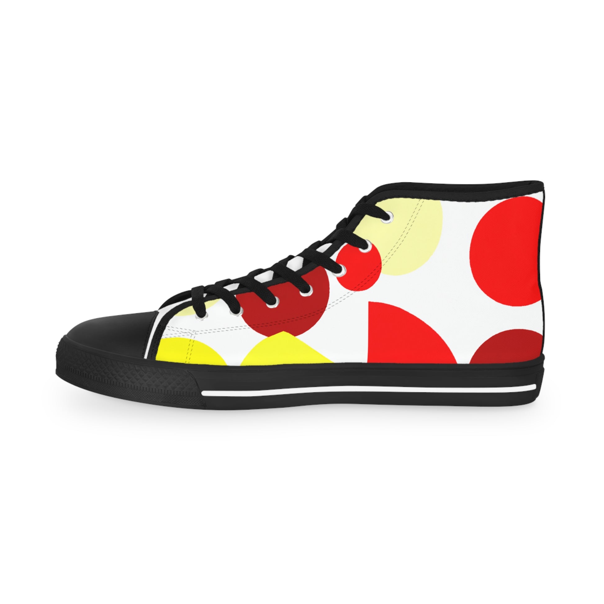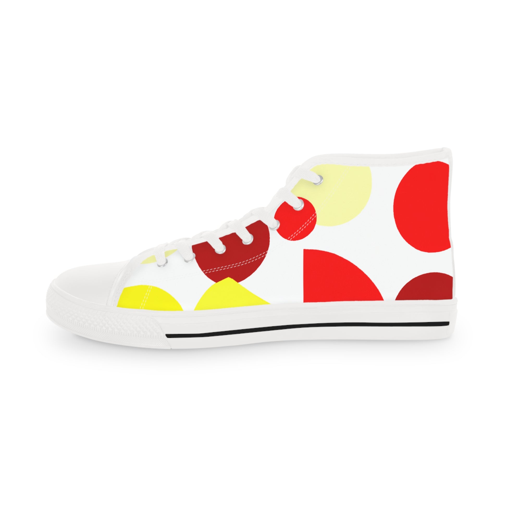 These high-top Geometric Art shoes will make a bold statement! With vibrant, playful colors and unique geometric shapes, these shoes offer a fun twist on the high-top sneaker. The top of the shoe features adjustable laces for the perfect fit, and the rubber outsoles provide a stable, comfortable ride. Get ready to draw stares and compliments with these stylish, head-turning shoes. #style #vibrant #geometric #fun #art #unique #colors #shoes #top #highTops #comfort
