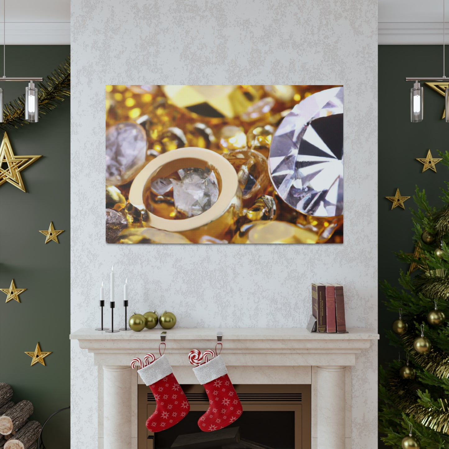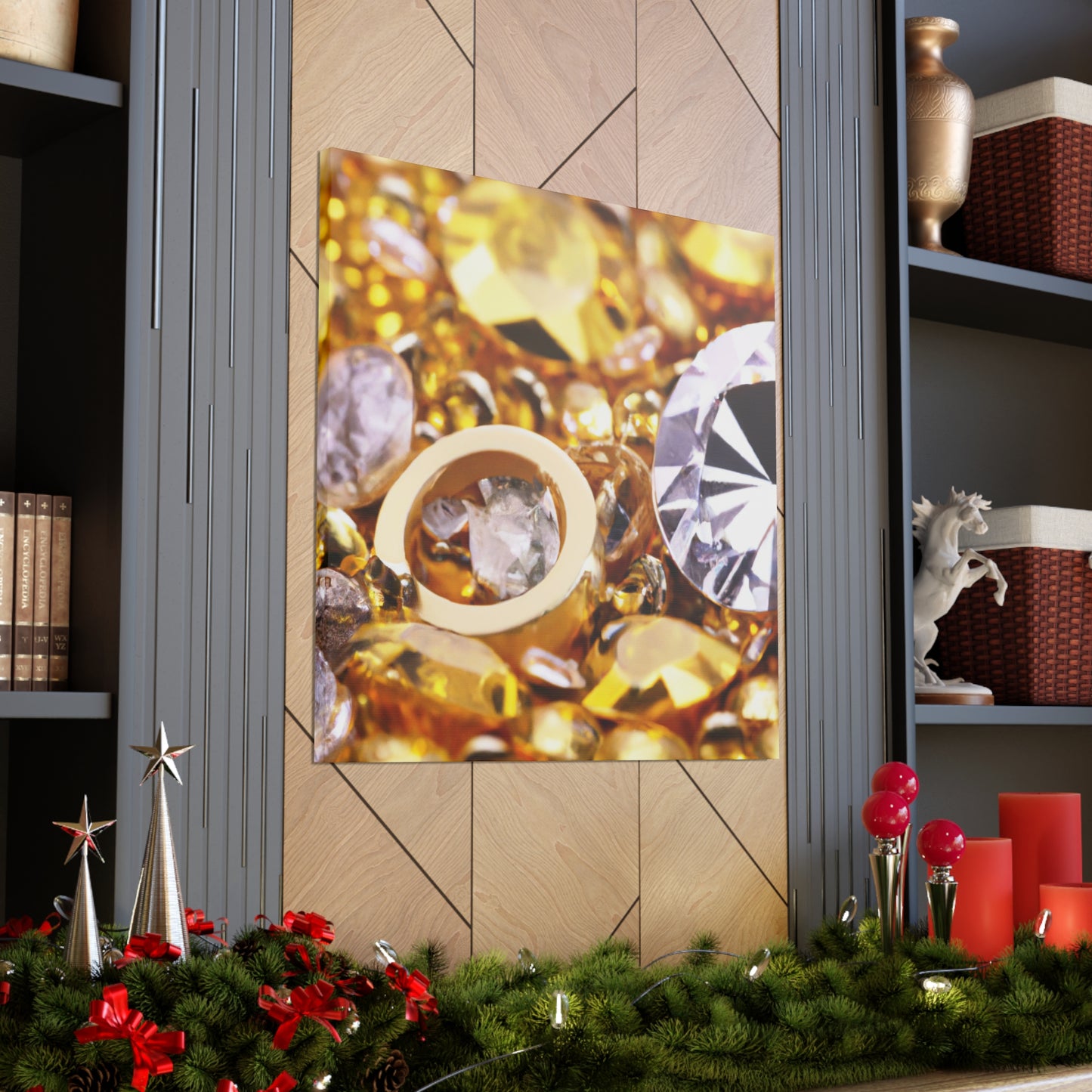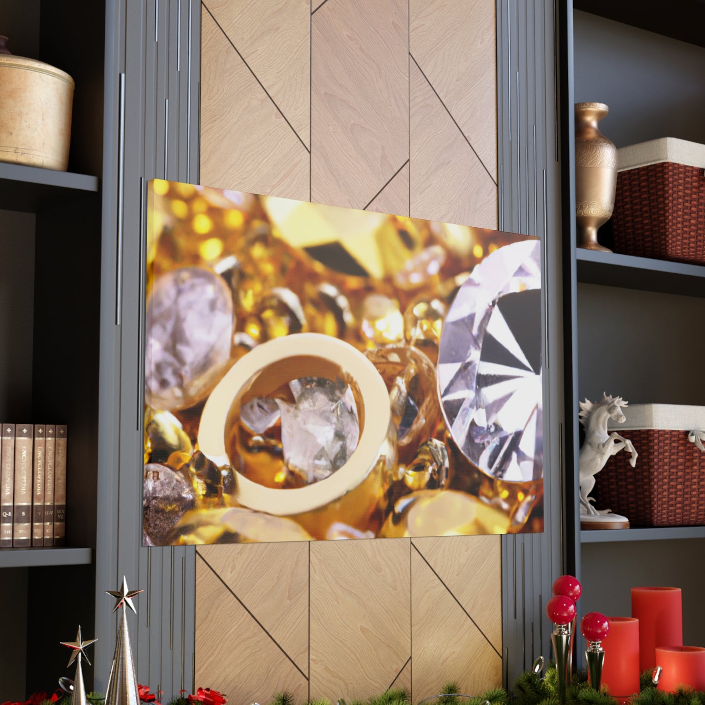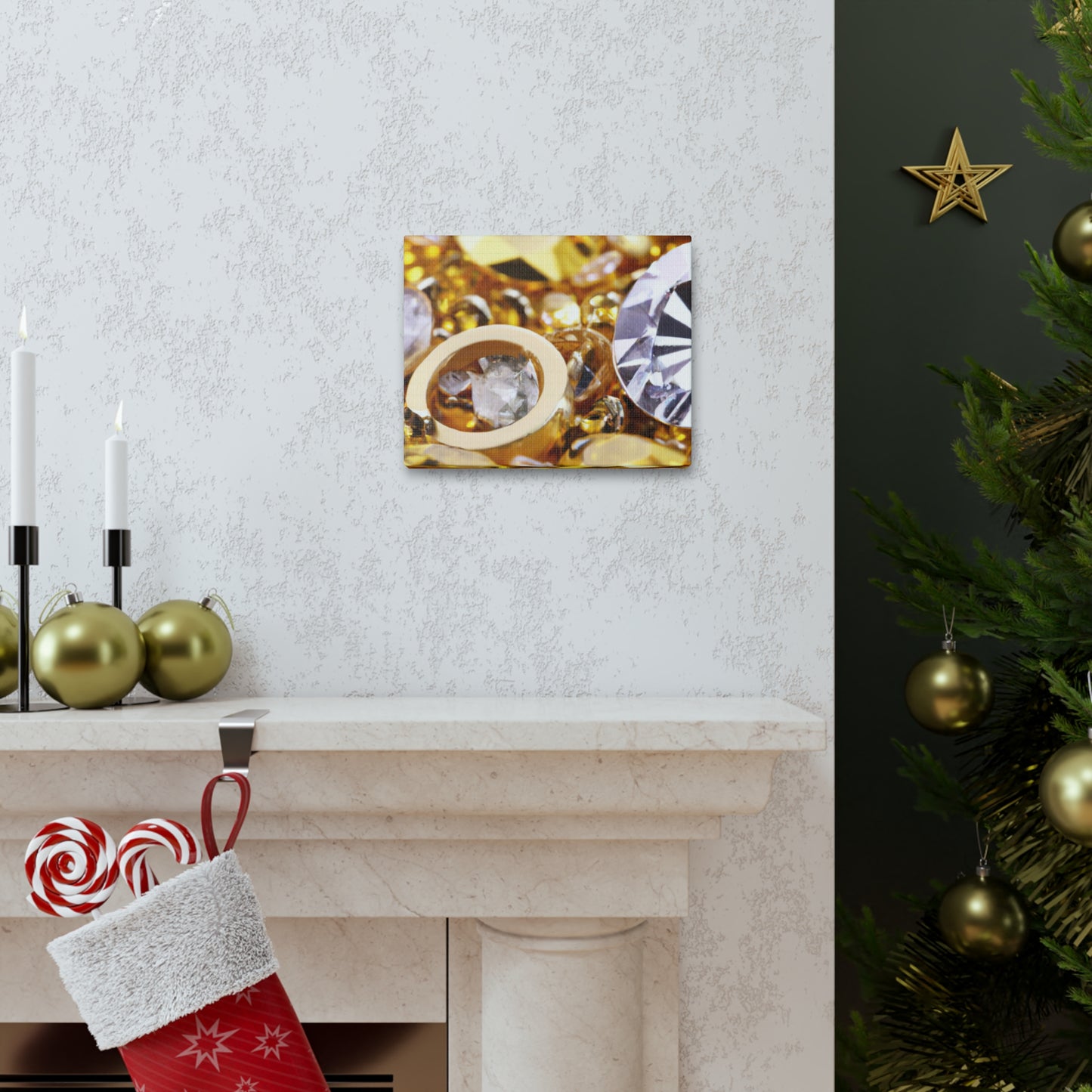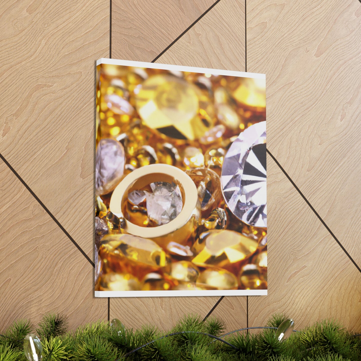 This unique canvas is the perfect statement piece. Gleaming gold and glittering diamond accents create an eye-catching design. Whether displayed solo or paired with other pieces, this canvas will instantly elevate the decor of any room! #artdecor #interiordesign #statementpiece #golddecor #Canvas #diamonds #luxuryart #statementart #interiordecor #homeredecor #classyinteriors