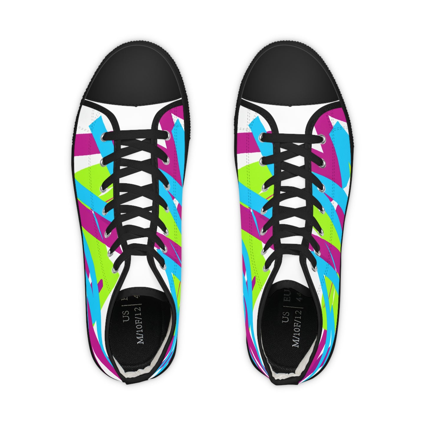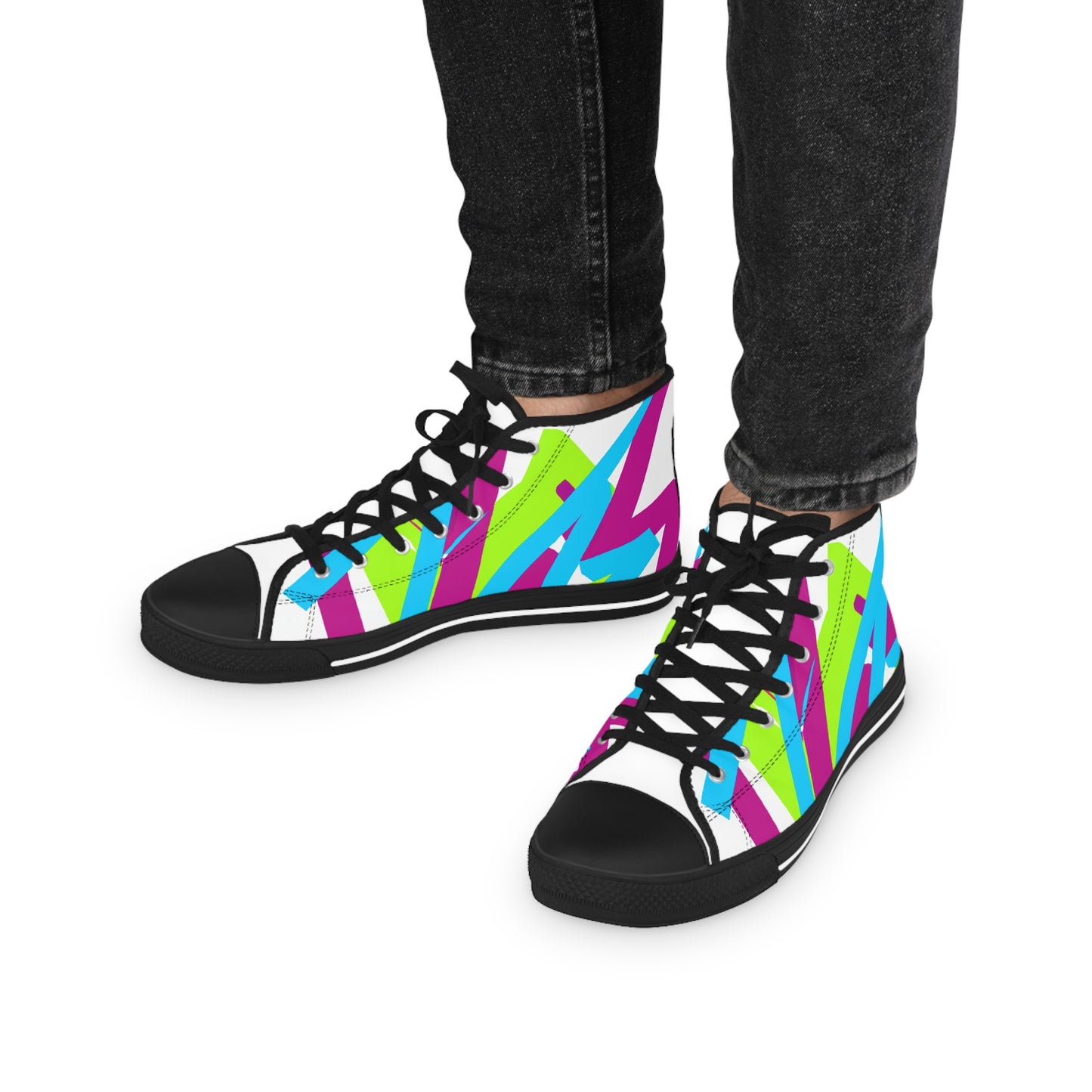These High Tops are perfect for the Graffiti Artist in the streets! With their sleek black and white design, as well as the awesome, multi-colored swooshes and stripes, these shoes will have you looking cool and graffiti-ific. The best part is, you can customize the sides with your own artwork. Show your style and make a statement on the streets! #shoes #graffiti #hightops #sneakers #skatepark #streetstyle #trendy#urbanstyle #multi-coloured #design #expression