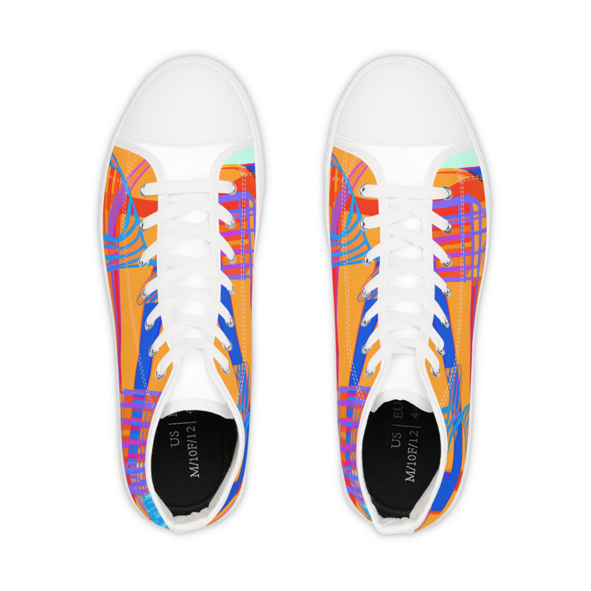 These high top shoes, with their unique geometric art designs mixed with their vibrant colors, are sure to turn heads wherever you go! Crafted with high-grade leather and careful attention to detail, these shoes are both fashionable and comfortable. These bold shoes show off your individual style and make sure you stand out in any crowd. Let your wardrobe speak for itself with these one of a kind shoes! #hightops #geometricart #vibrantcolors #style #trends #fashionista #highgradeleather #wardrobe #formalwear #statementstyle #outfitinspo