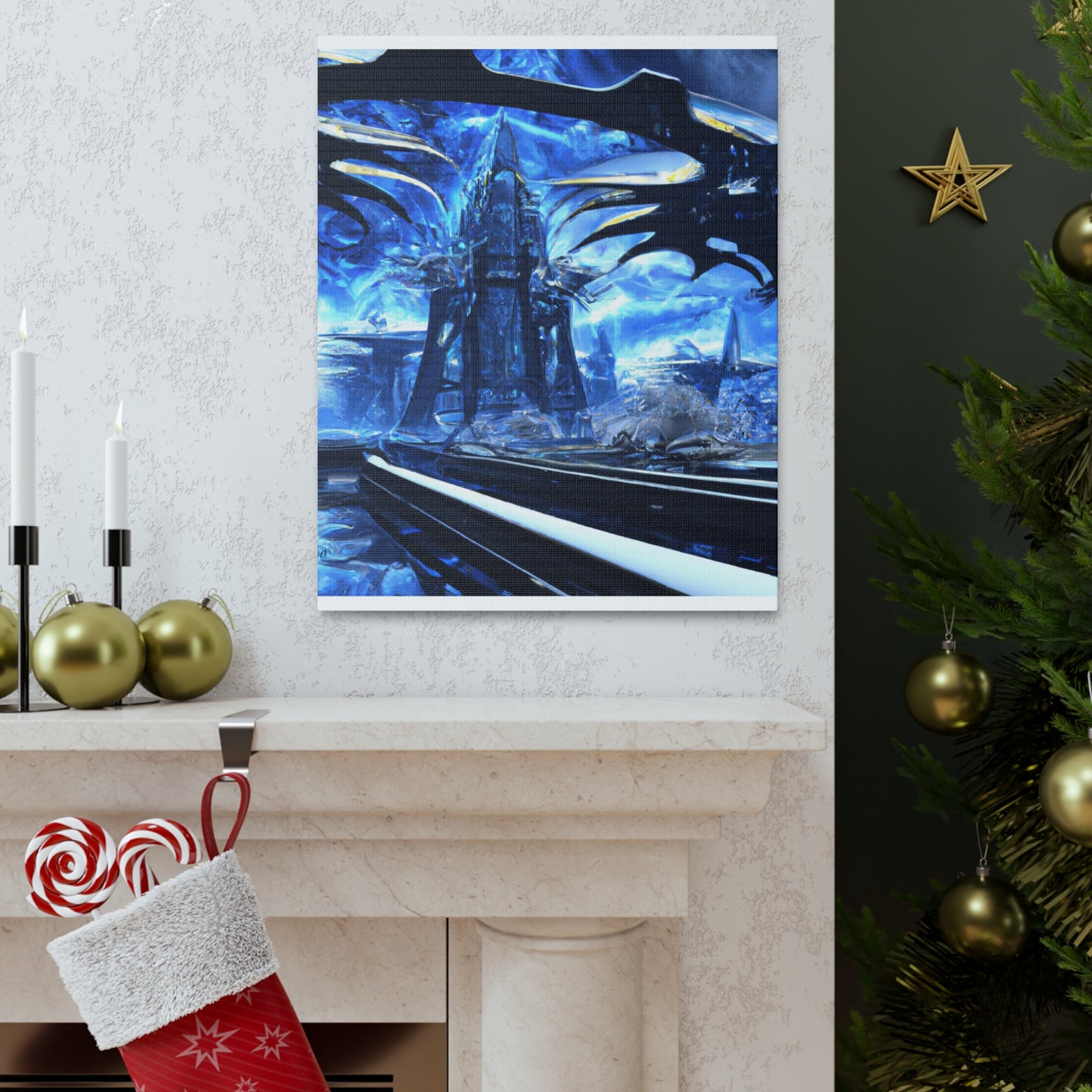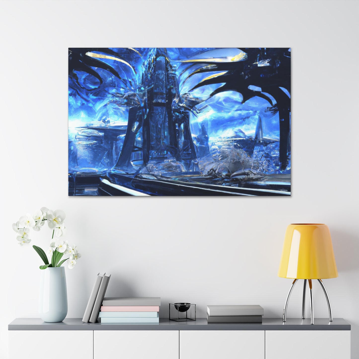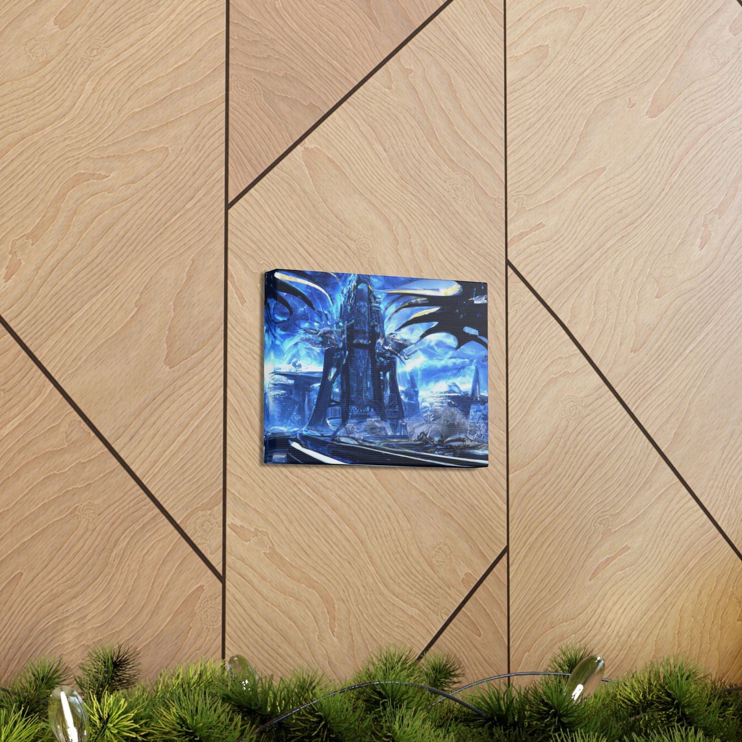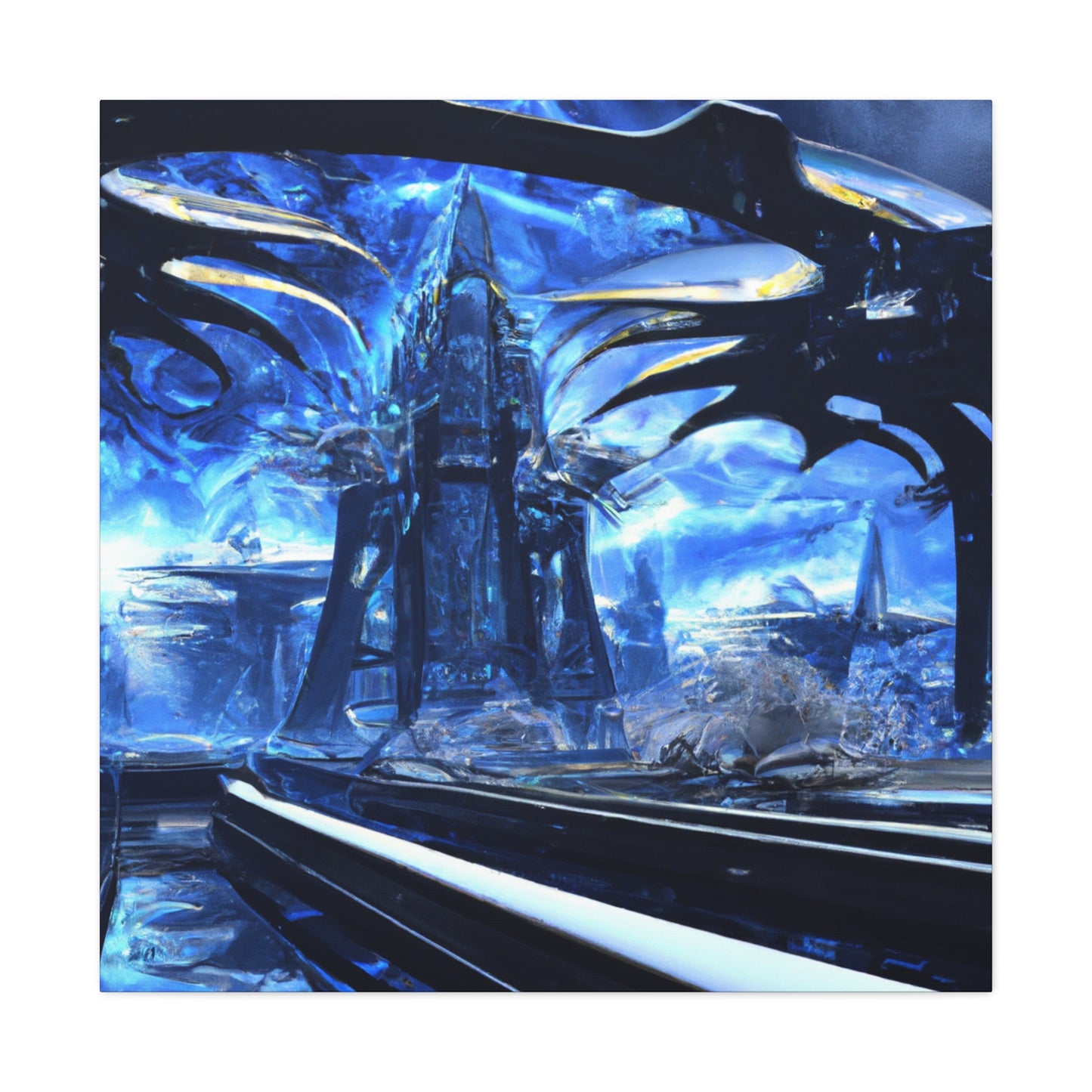 This canvass of Futuristic City Photorealism will bring your walls to life. With incredible detail, the scene features soaring and impressive city buildings and towering spires that hold their own against the night sky. Marvel at the awe-inspiring beauty of the sprawling metropolis and let your imagination soar with the possibilities of the futuristic world. #futuristiccity #photorealism #canvas #homedecor #urbanart #modernart #citywallart #modernhomedecor #interiorart #stylizedart #photoart