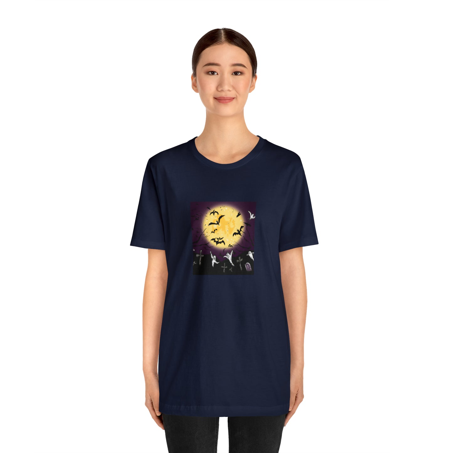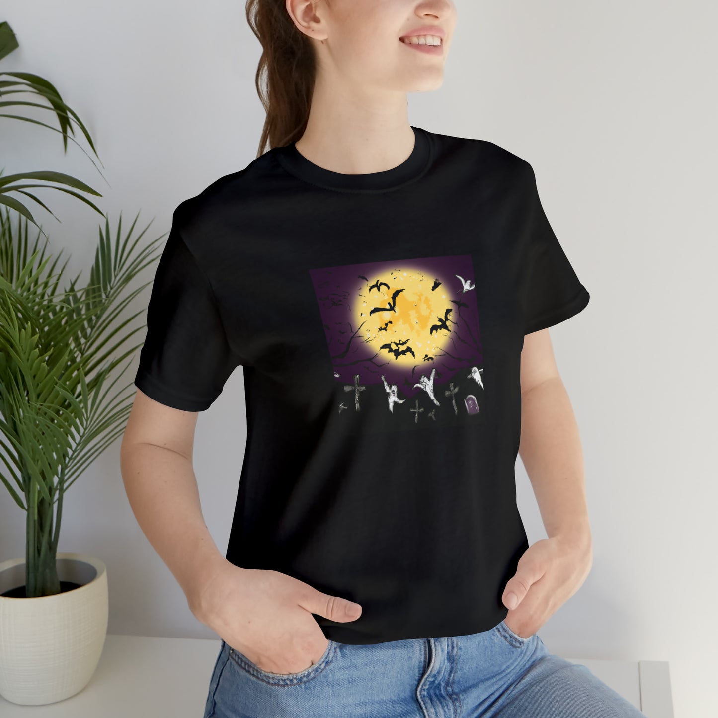 This Streetwear T-Shirt featuring spooky Halloween digital art designs is perfect for making a statement this season. The perfect blend of classic style and edge your look will definitely step up a notch with this one. Made with pure cotton fabric and long lasting prints, this piece can endure any party! #streetweardesigns #halloweentee #halloweendesigns #spookytee #spookyart #digitallstyle #streetwearfashion #classicstyle #statementtee #pumppkinpattern #ghostart and #spookyhalloween