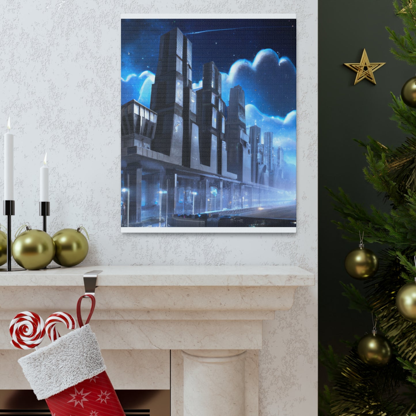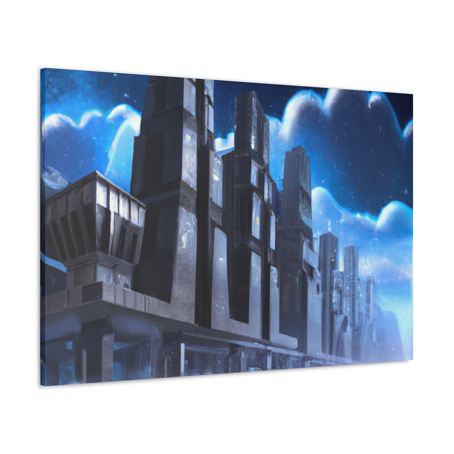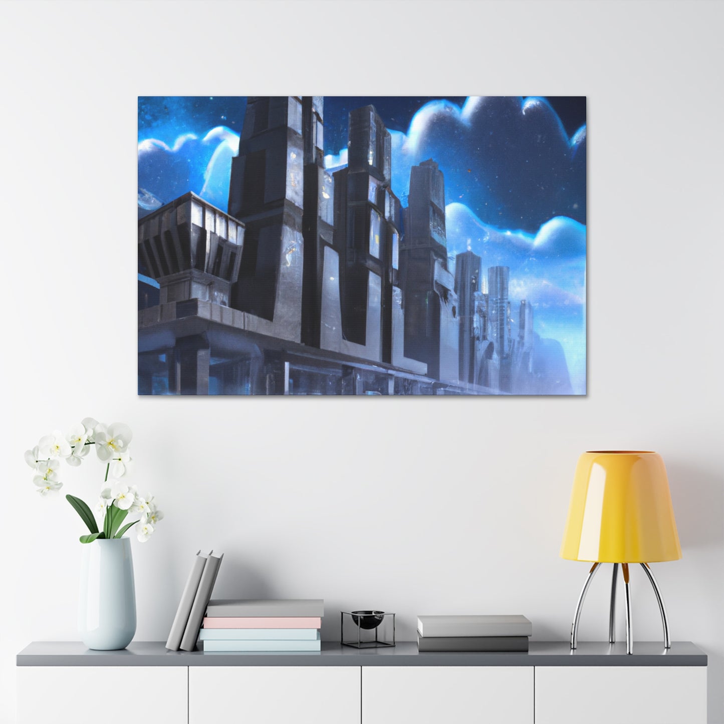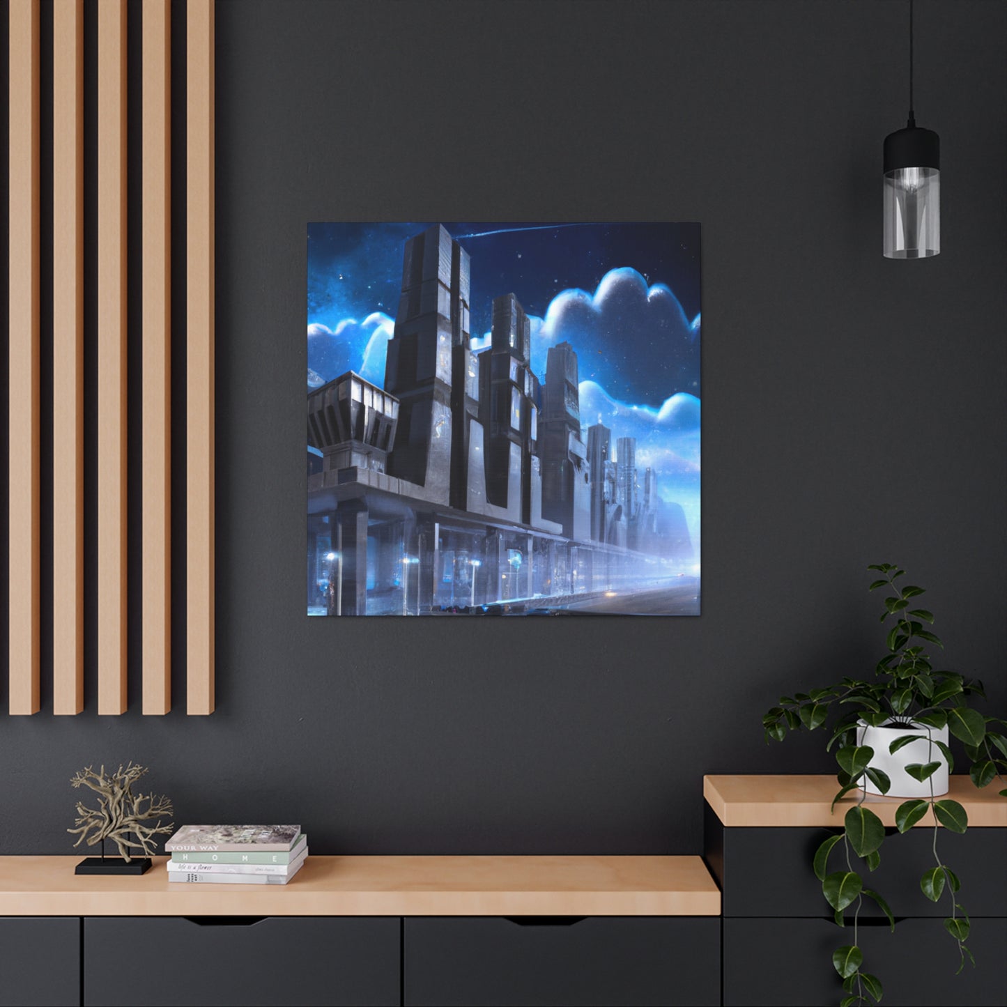 This vibrant canvas print of a futuristic cityscape will bring a refreshing, modern look to any home or office space. It features sharp lines, realistic depth, and bright colors that will bring a unique and inspiring energy to the room. Its precise details and photorealistic style will easily transport viewers to another world and make them think of a future of possibility! #photorealism #cityscape #futuristic #canvas #print #modern #vibrant #inspiring #unique #energy #optimistic