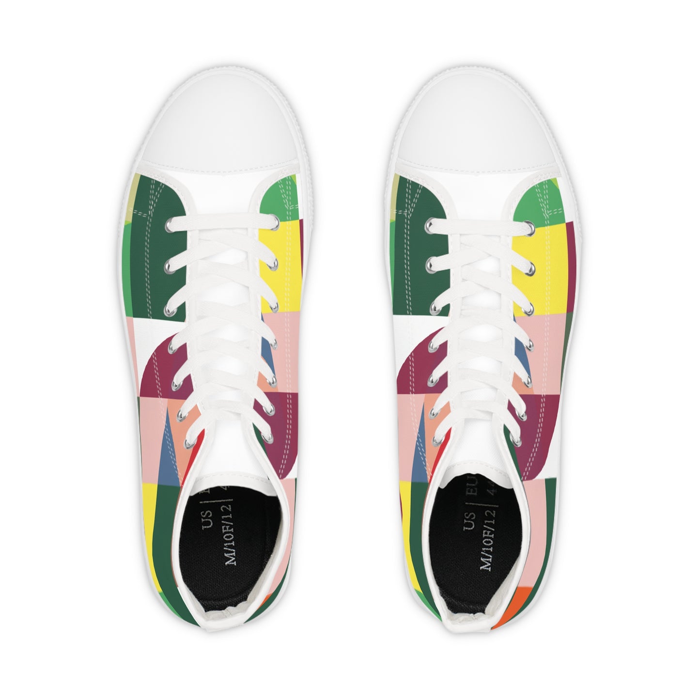 These statement-making Geometric Art High Top Shoes embody a vibrant energy perfect for any style-leftist. Their geometric motif enhances the lively colors contrasted against comfortable paddings and adjustable straps. Punctuate your look with these stylish shoes and look good and show off your style. #high-tops #vibrancy #geometricart #boldstyle #standout #trendy #addtotheoutfit #statementmaking #excitingaesthetic #personalizedlook #essentialaccessory