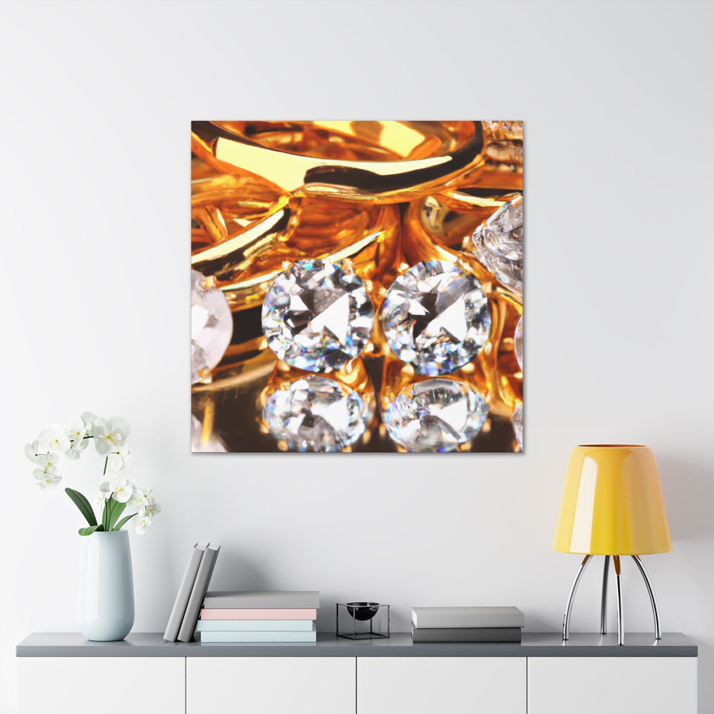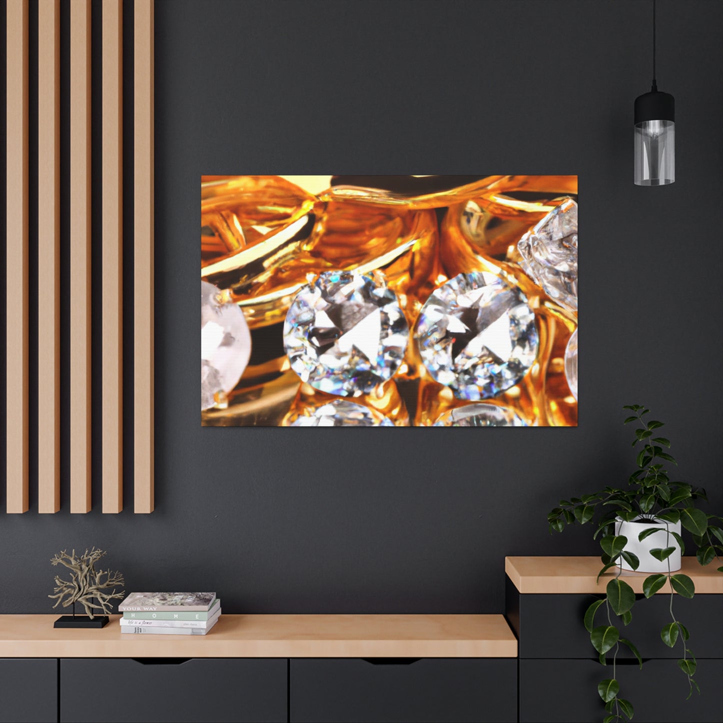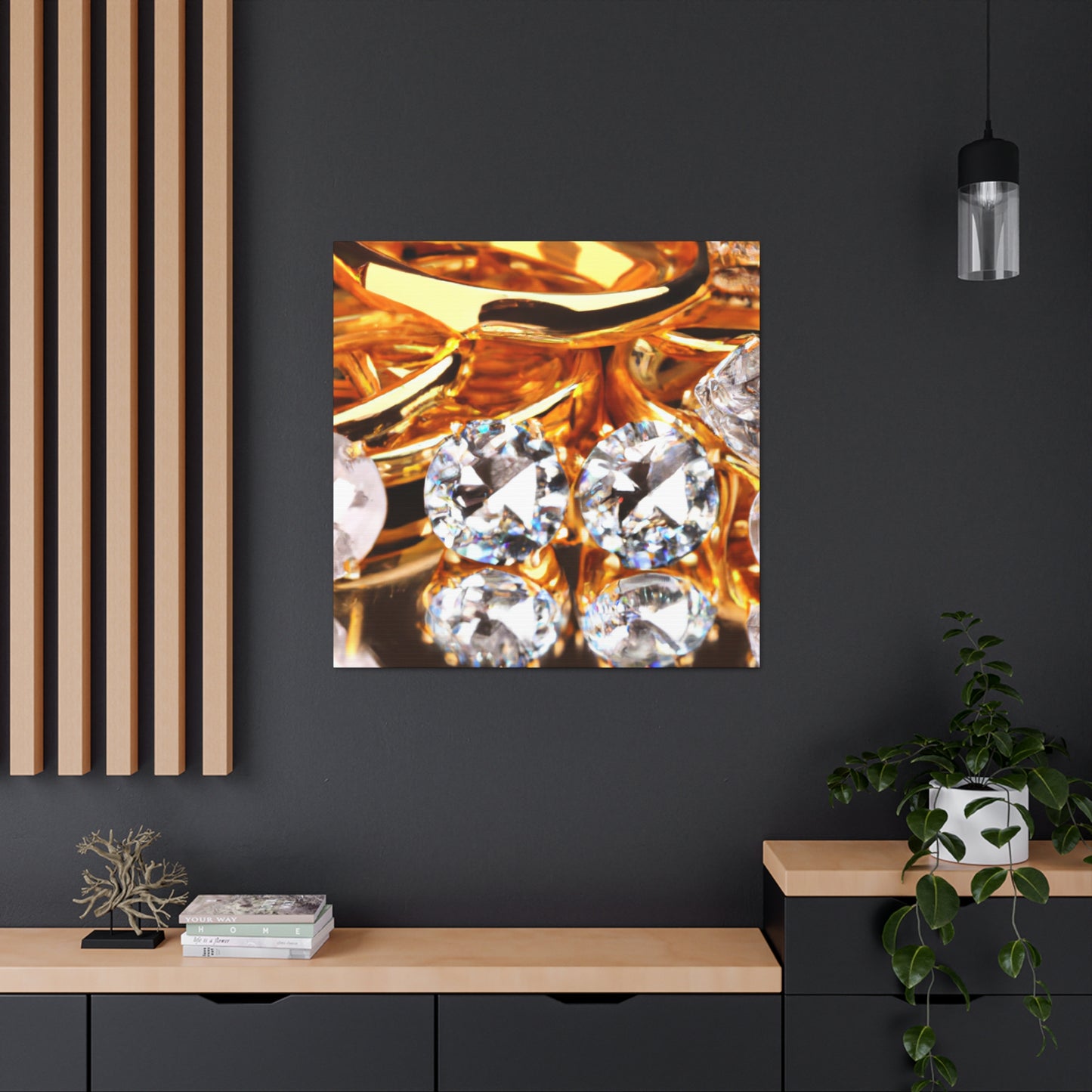 This luxurious canvas features a stunning arrangement of pure gold and diamonds, accentuating a timeless and sophisticated look. This piece is of the utmost quality and perfect for adding a statement to any space. Make sure you hang it prominently to attract the admiration of your guests. #gold #diamonds #luxury #canvas #art #interior #decor #shine #glam #statement #quality