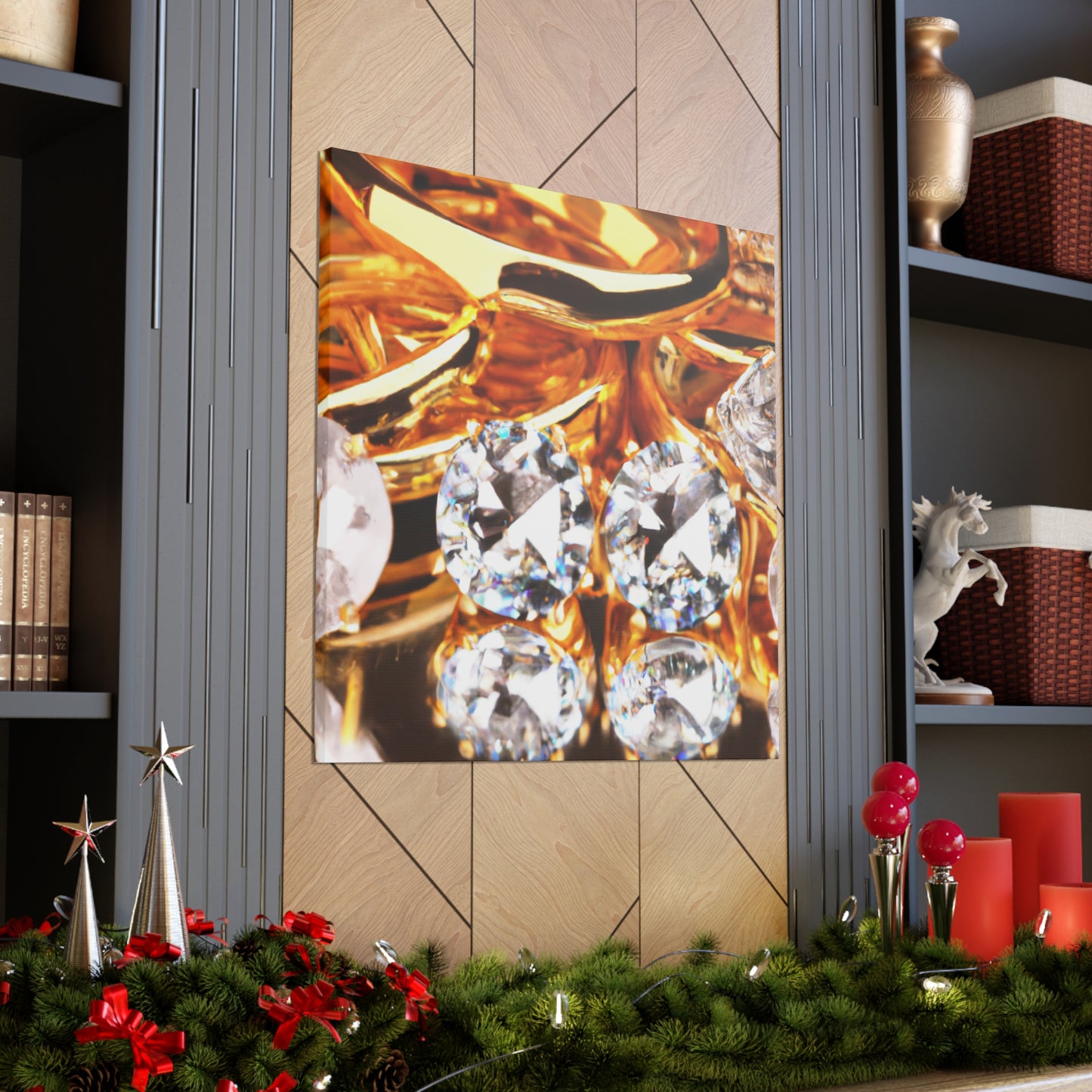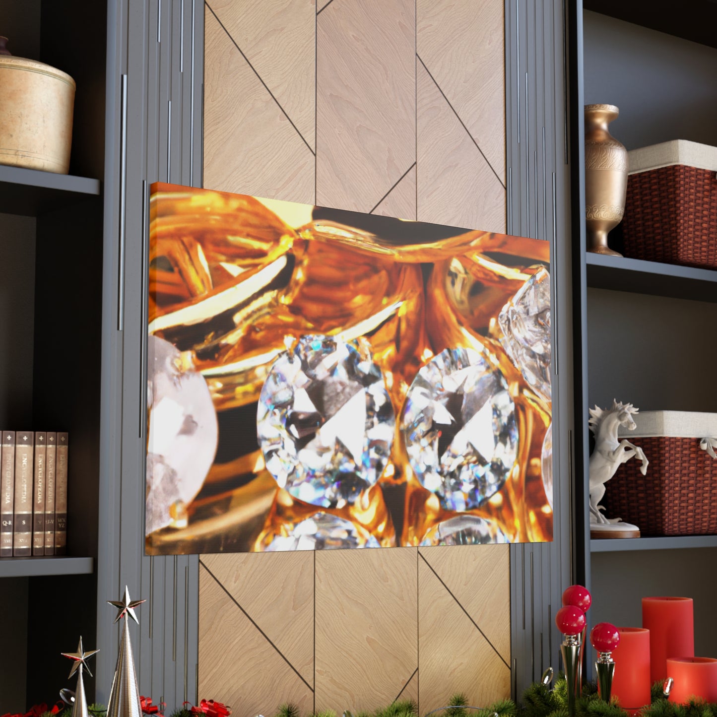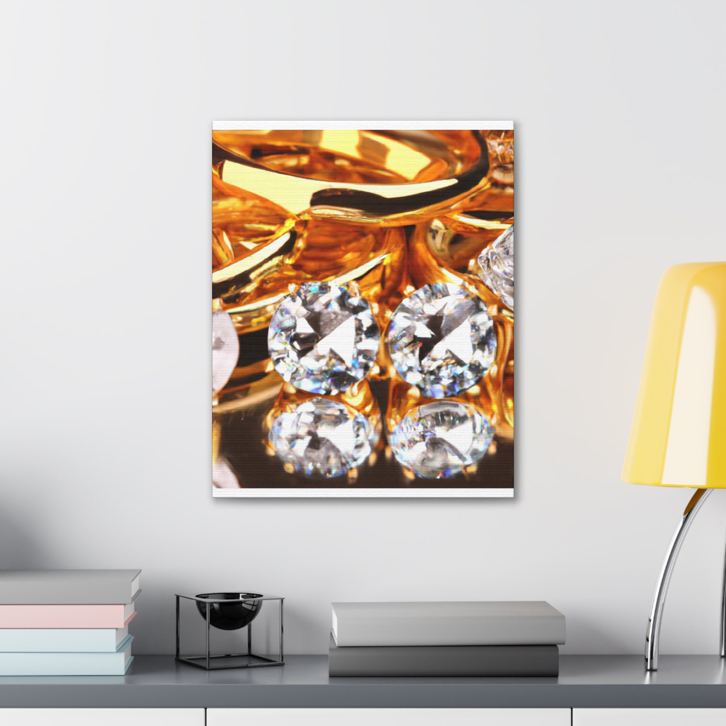 This luxurious canvas features a stunning arrangement of pure gold and diamonds, accentuating a timeless and sophisticated look. This piece is of the utmost quality and perfect for adding a statement to any space. Make sure you hang it prominently to attract the admiration of your guests. #gold #diamonds #luxury #canvas #art #interior #decor #shine #glam #statement #quality