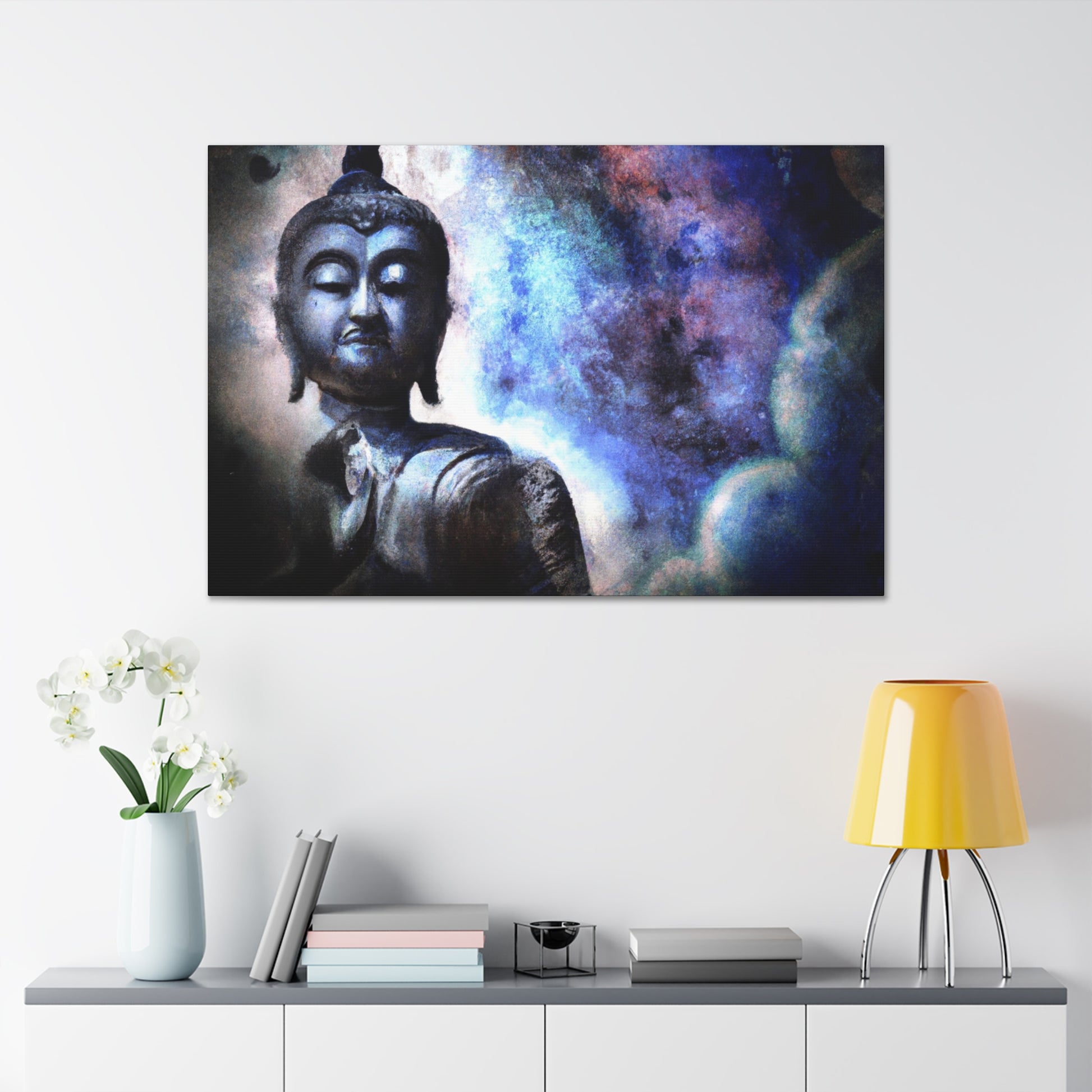 This calming digital art of Buddha from is canvas printed to the highest quality with fade resistant ink. It demonstrates shades of blue and lavender in subtle brush strokes, conveying a sense of tranquility and peace. Hang this piece of art on any wall to create a serene atmosphere in your home. #buddha #digitalart #canvasart #faderesistance #inkprint #calmness #tranquility #smudges #lavender #blueshades #peaceful #atmosphere