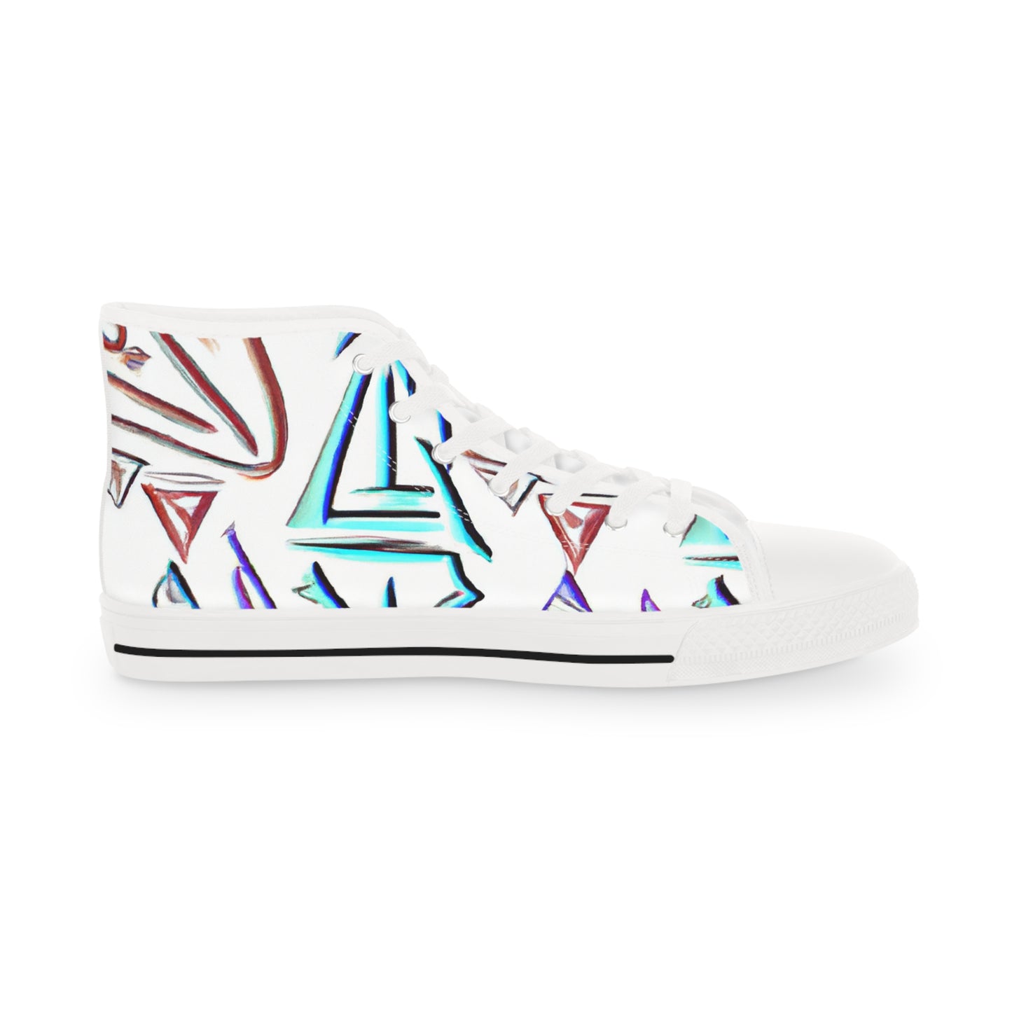 These limited edition Geometric Art high tops feature vibrant colors and a modern design. The perfect combination of fashion and function, they are great for everyday wear! Crafted with breathable canvas and a rubber sole, these shoes are made for long-lasting comfort. With bright colors and bold geometric shapes, this look stands out from the rest. #geoartshoes #trendyfootwear #styleisyou #vibrantcolors #vibrantstyle #smoothlook #retroshcool #lightweightshoes #geometriclover #modernstyle #forevertrends