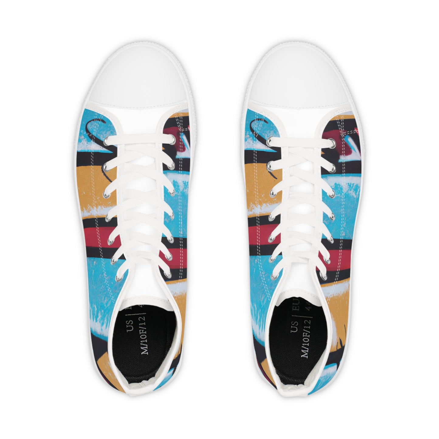 These stylish high tops are perfect for anyone who loves to make a statement with their wardrobe! The graffiti art print combines bold colors to form a unique and eye-catching aesthetic. The comfortable inner sole will make sure you're ready for long days of walking in style. Show off your individual flair in these sneakers and express yourself with graffiti style every step of the way! #HighTops #Graffiti #GraffitiArt #StatementShoes #ArtStyle #FashionStyle #Colorful #Aesthetic #Comfortable #IndividualFlair #WalkInStyle
